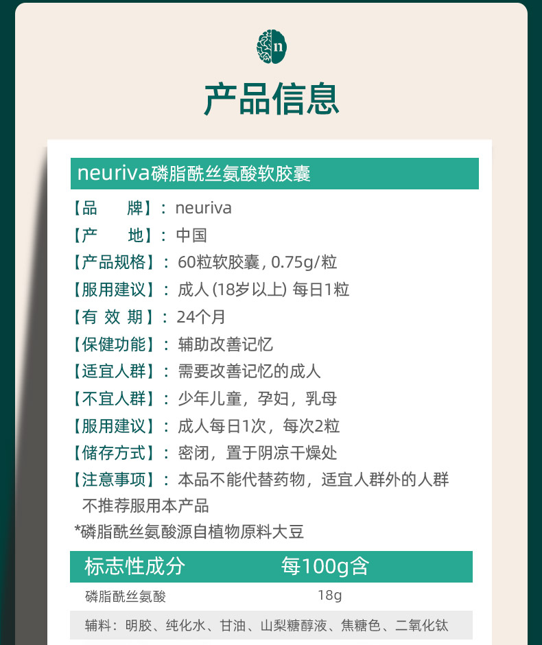 Schiff旭福neuriva辅助改善记忆力 磷脂酰丝氨软胶囊60粒