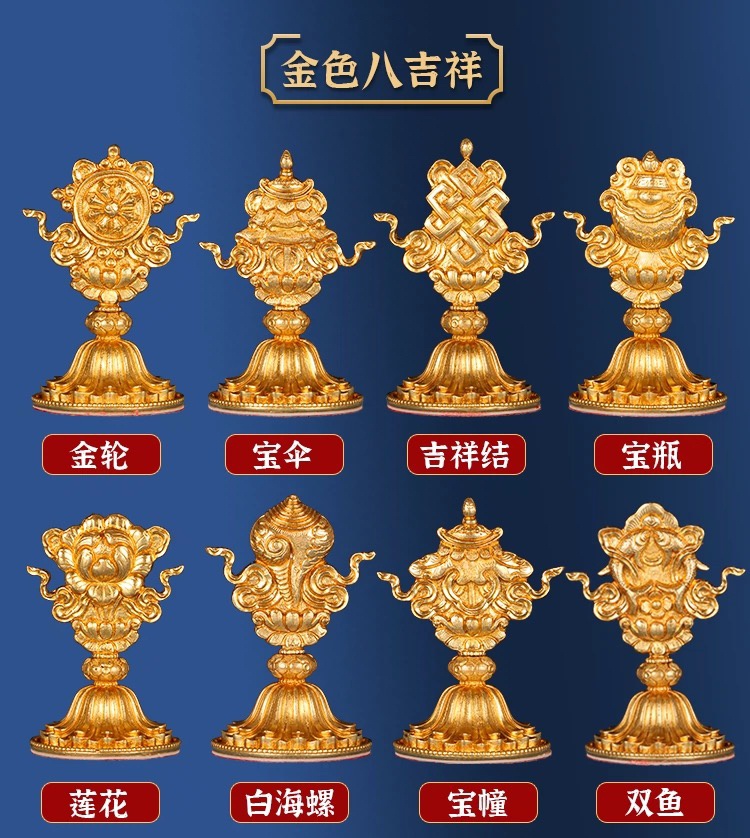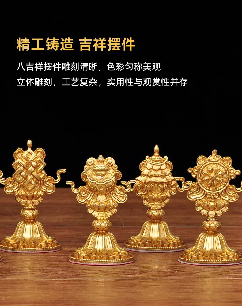 天语龙吟迷你款黄铜八吉祥摆件藏式吉祥八宝