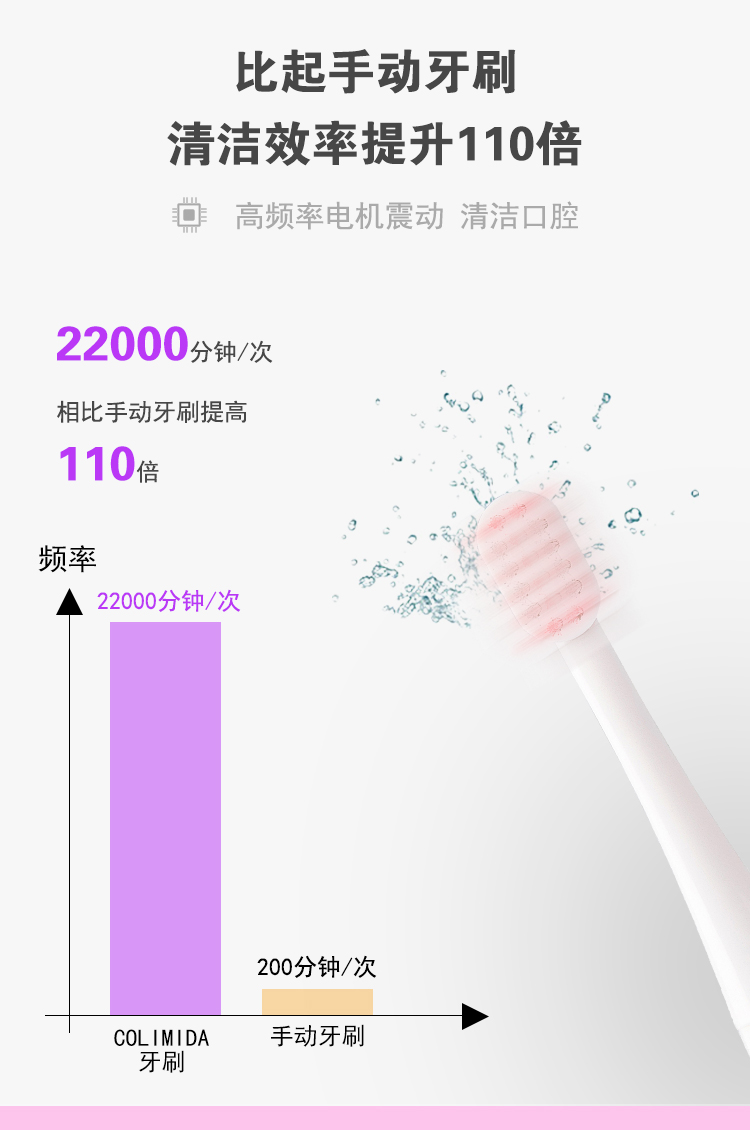 【香港直邮】出差旅行必备!抖音同款日本猫咪Acs电动牙刷 成人款自动牙刷(粉色)