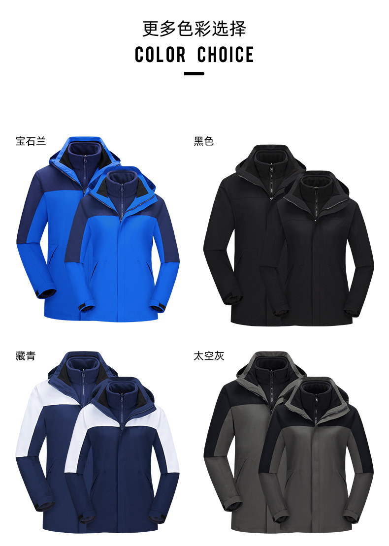 户外三合一冲锋衣 防泼水秋冬两件套防风登山服 男女同款国庆出游