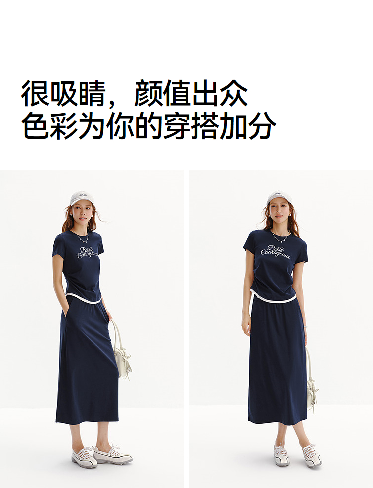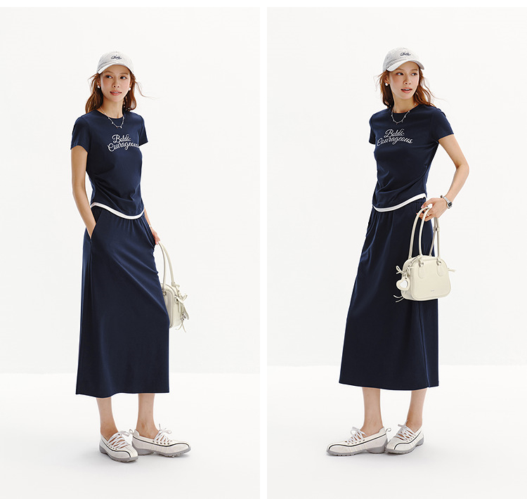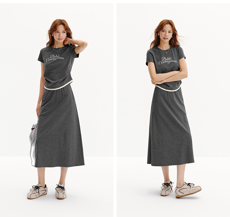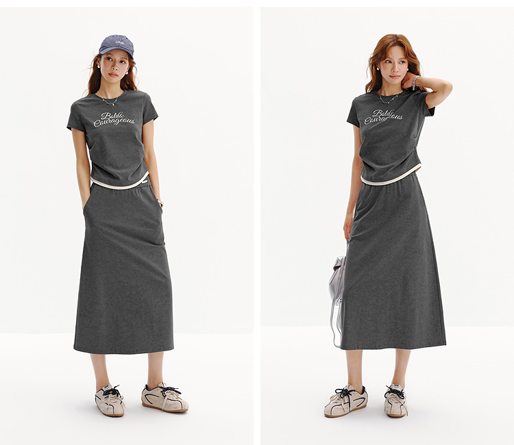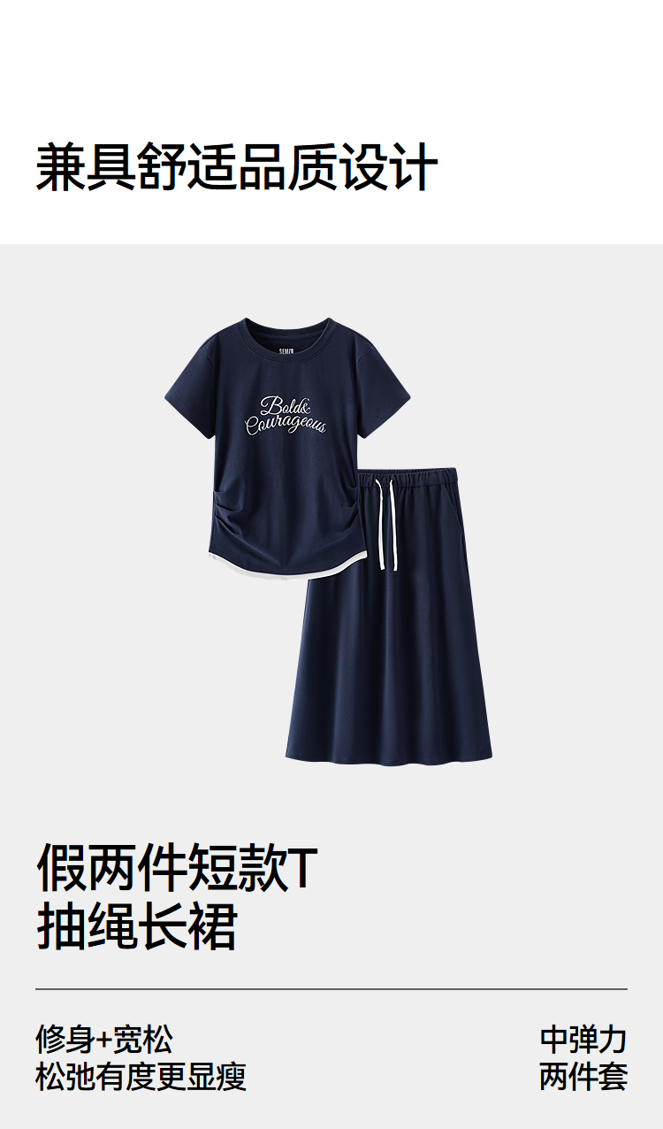 商场同款|森马套装女夏字母短款T恤长裙2026新款小心机休闲两件套