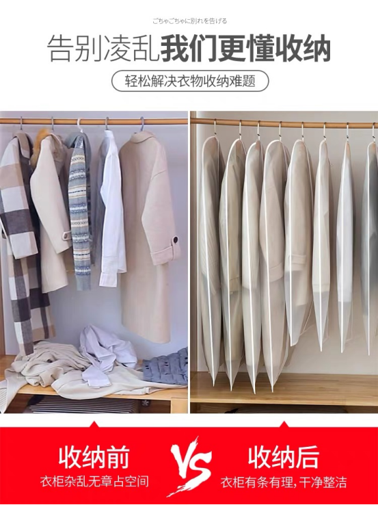 🔥换季刚需 衣物潮湿发霉❓囤个衣物防尘罩完美解决!👍【极就+衣物防尘罩】可水洗循环使用十年 ✅加厚6丝,防尘防皱,耐用可水洗 ✅ 磨砂材质,360度包裹衣服,✨不沾染一丝尘埃