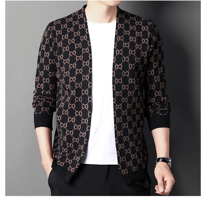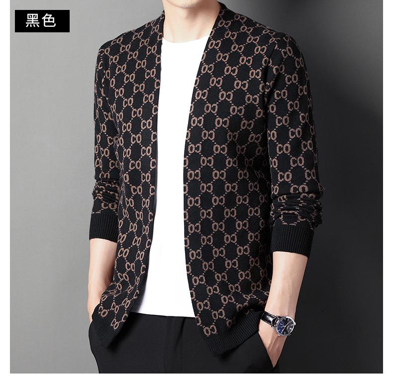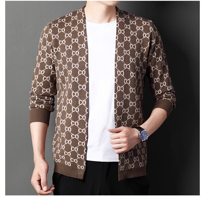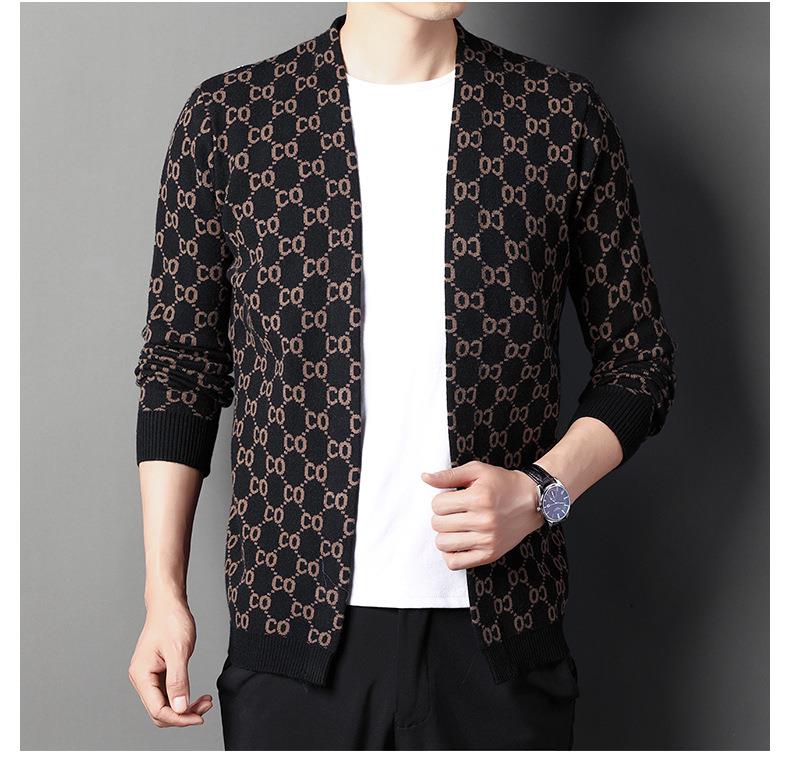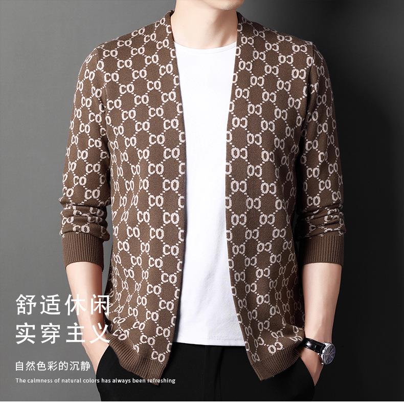 春秋季男士长袖针织衫青年潮流字母提花男装外套上衣服潮
