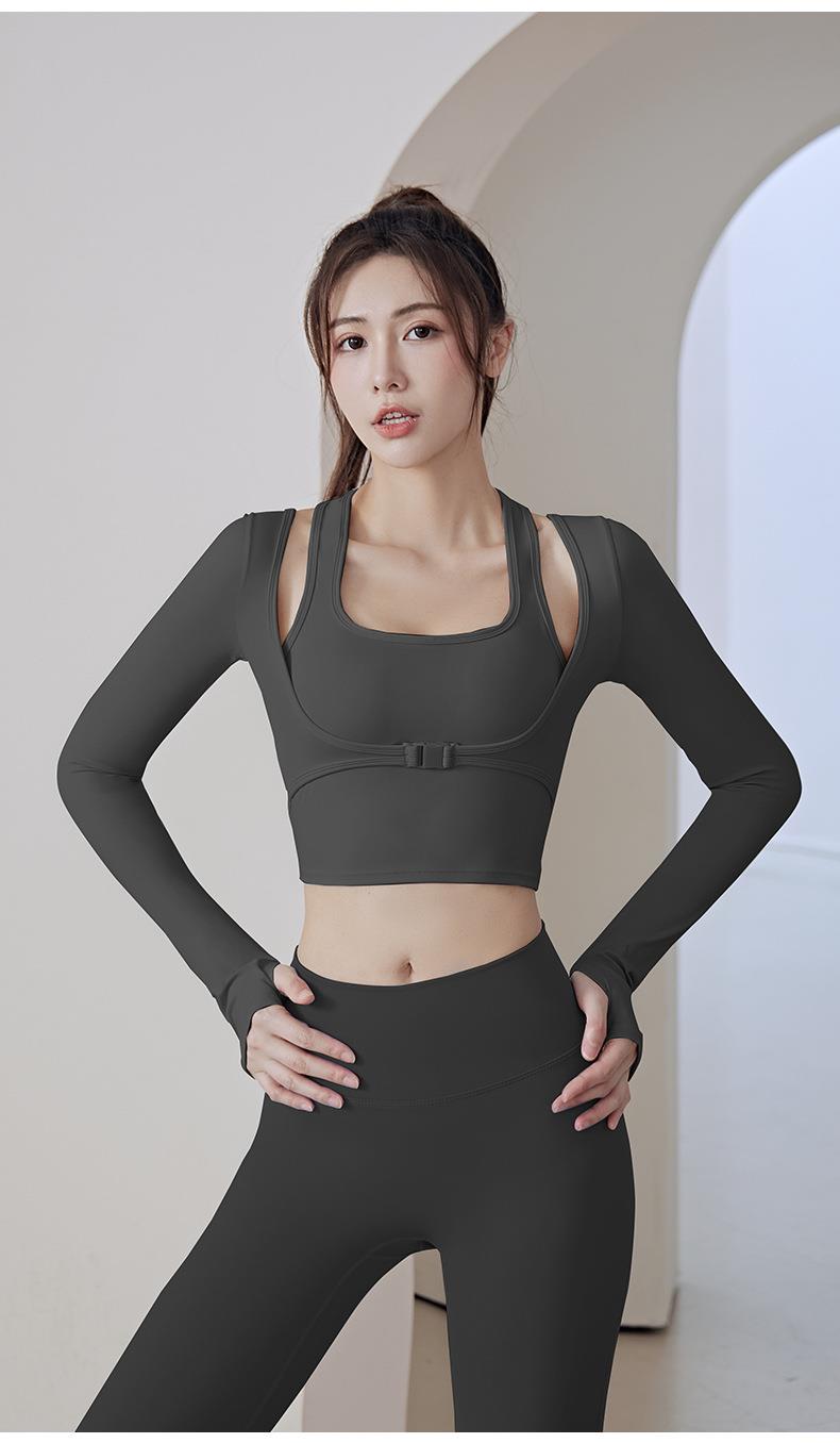 聚衣堂运动健身跑步训练套头挂脖显瘦可拆卸胸垫防震长袖瑜伽服