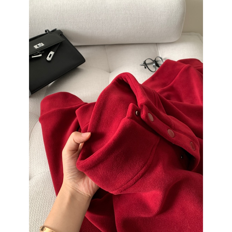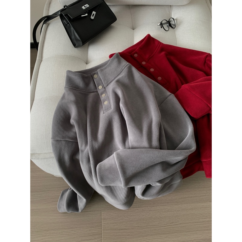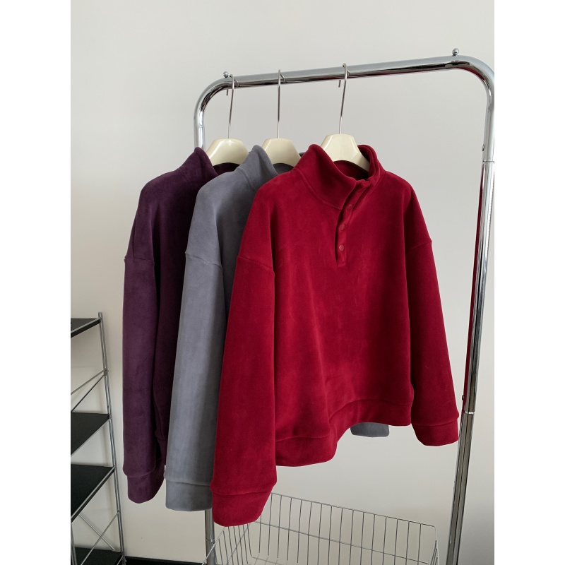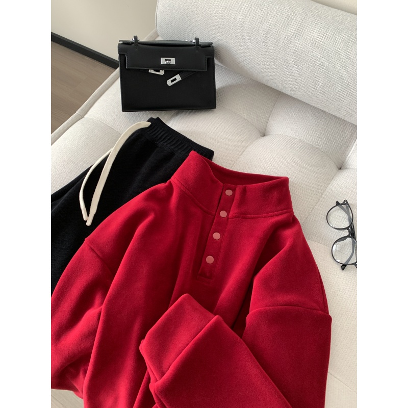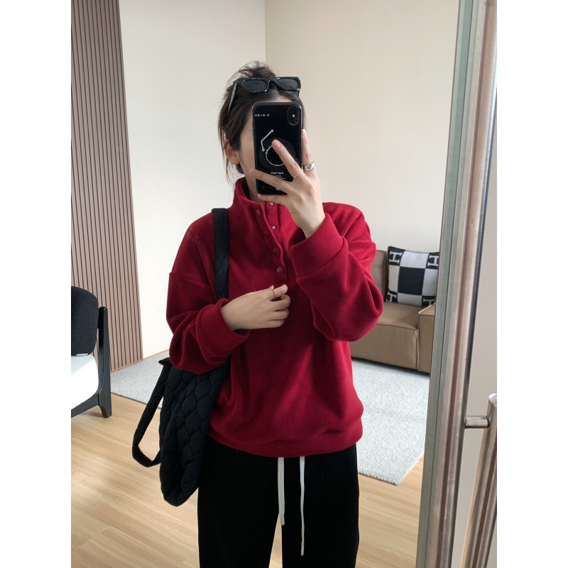 520g加绒加厚双面澳粒绒套头卫衣 冬季新年红立领保暖休闲上衣