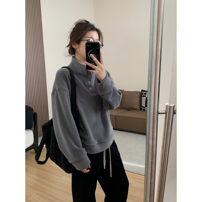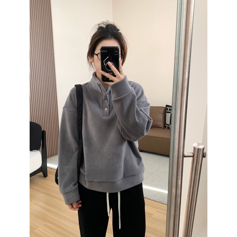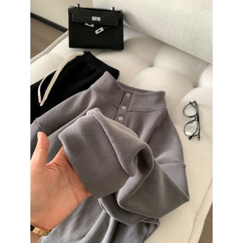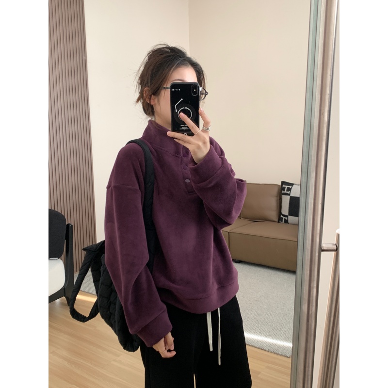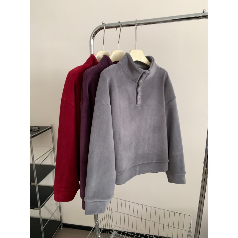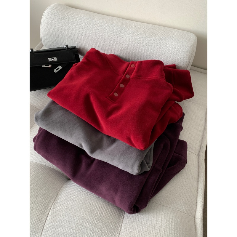 520g加绒加厚双面澳粒绒套头卫衣 冬季新年红立领保暖休闲上衣