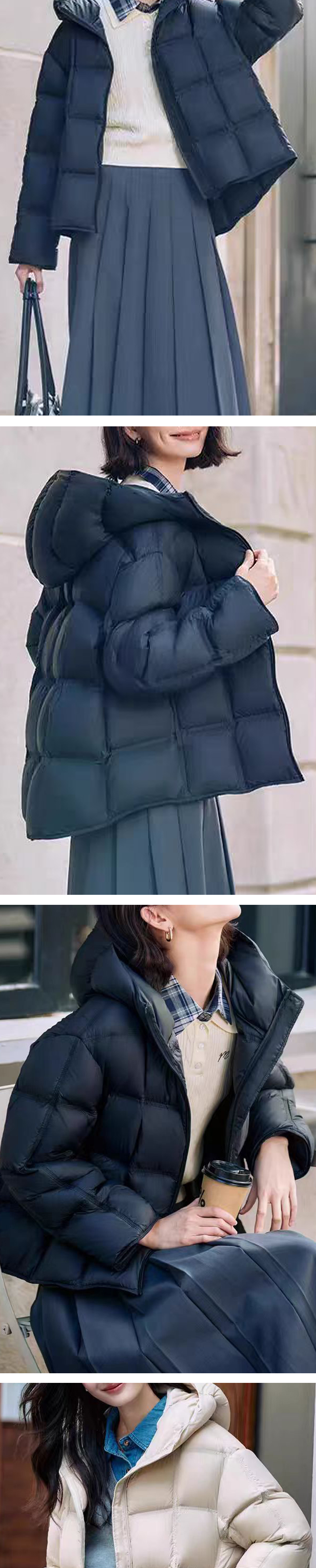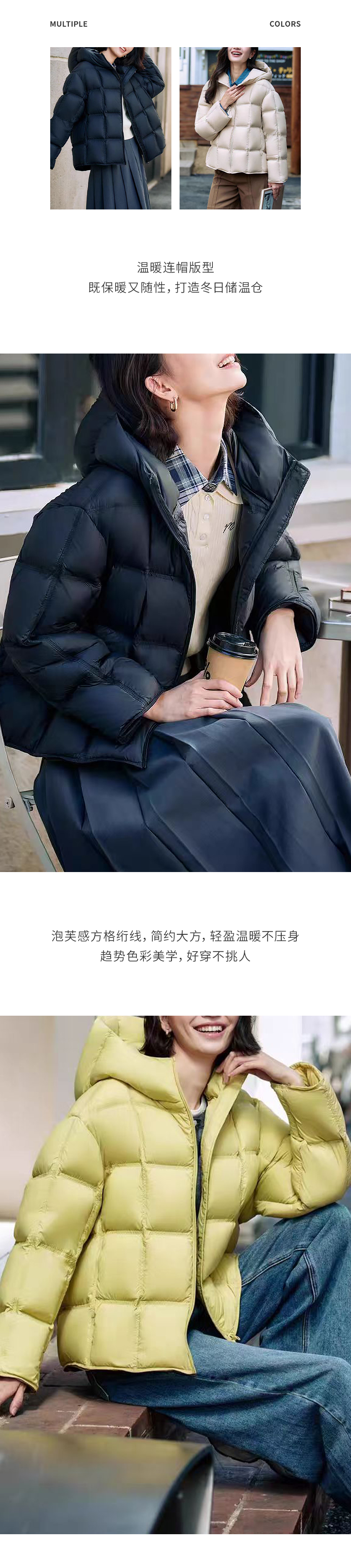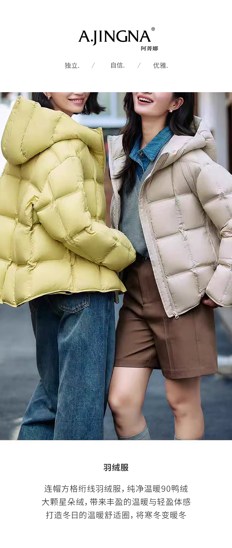 【 方格绗线】阿菁娜冬冬季新款方格绗线羽绒服星朵绒轻盈保暖连帽休闲F30D216023
