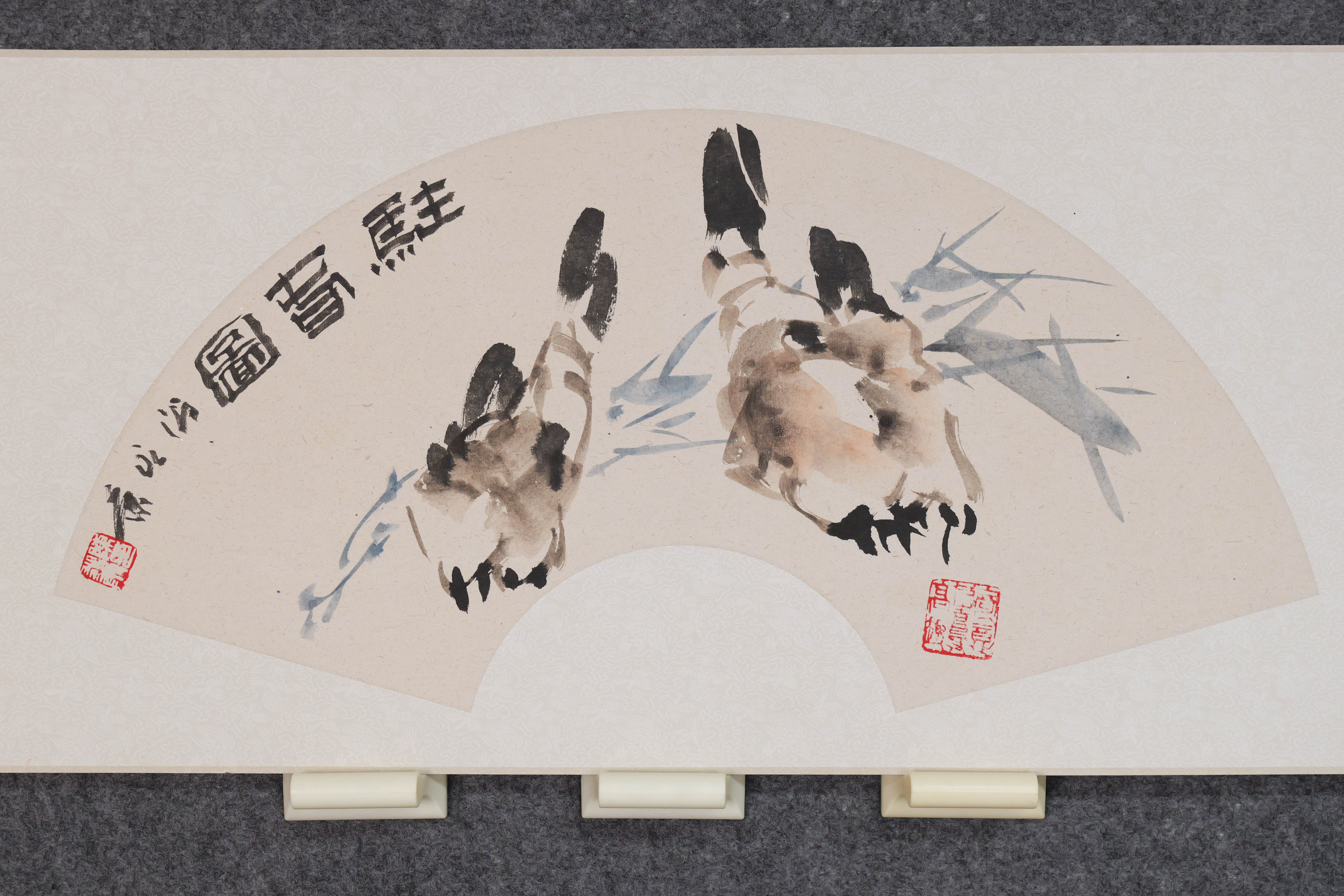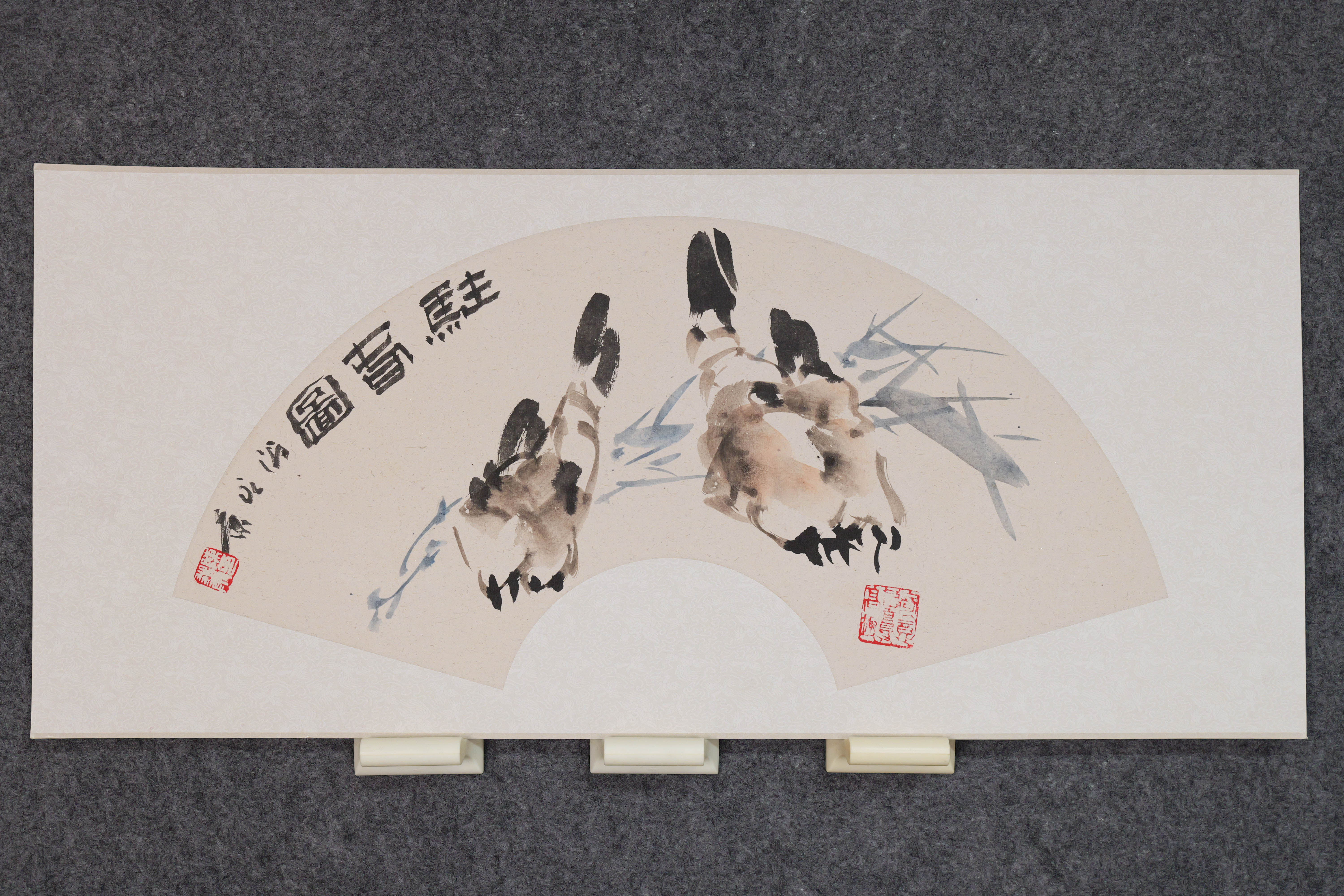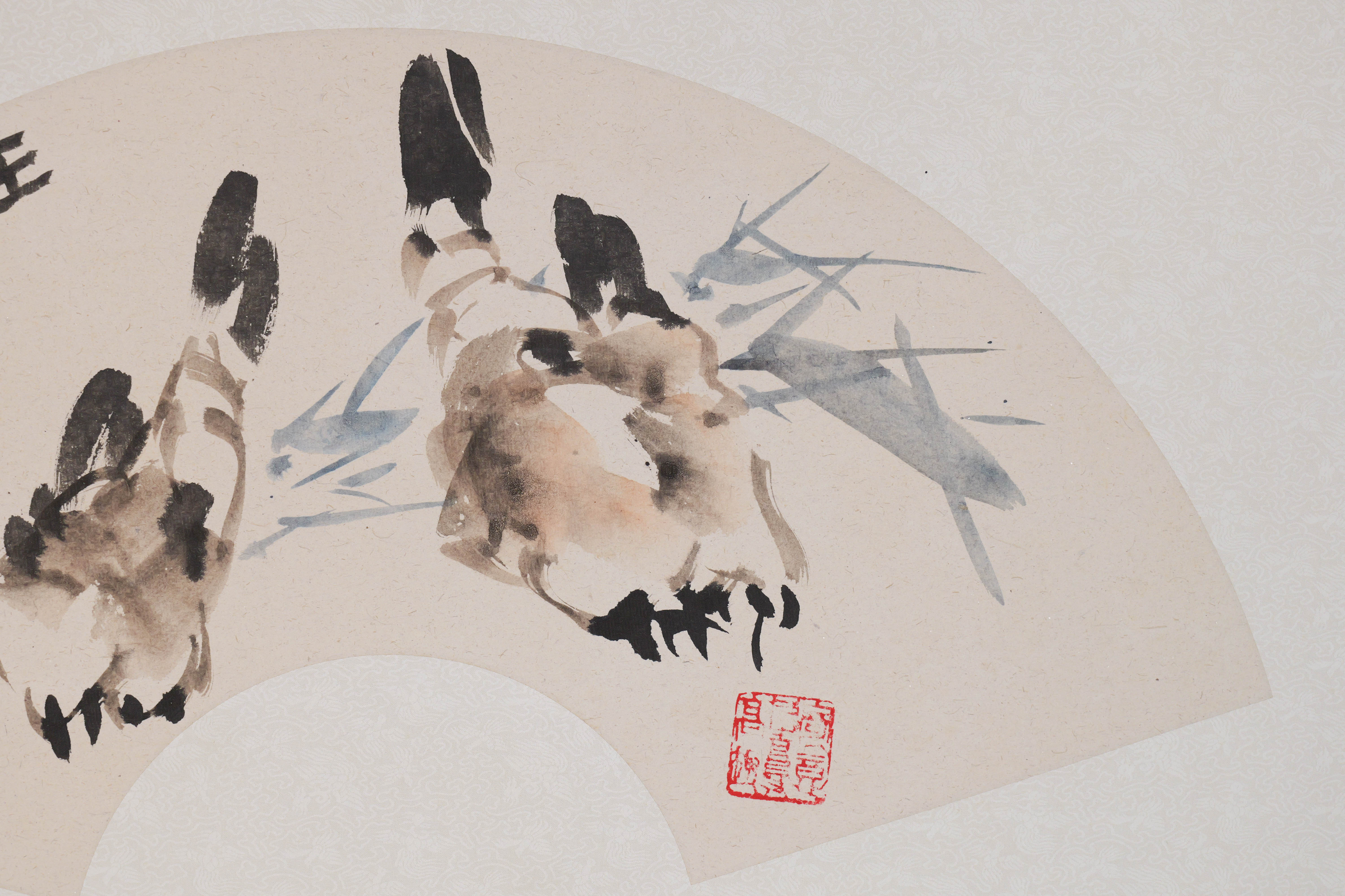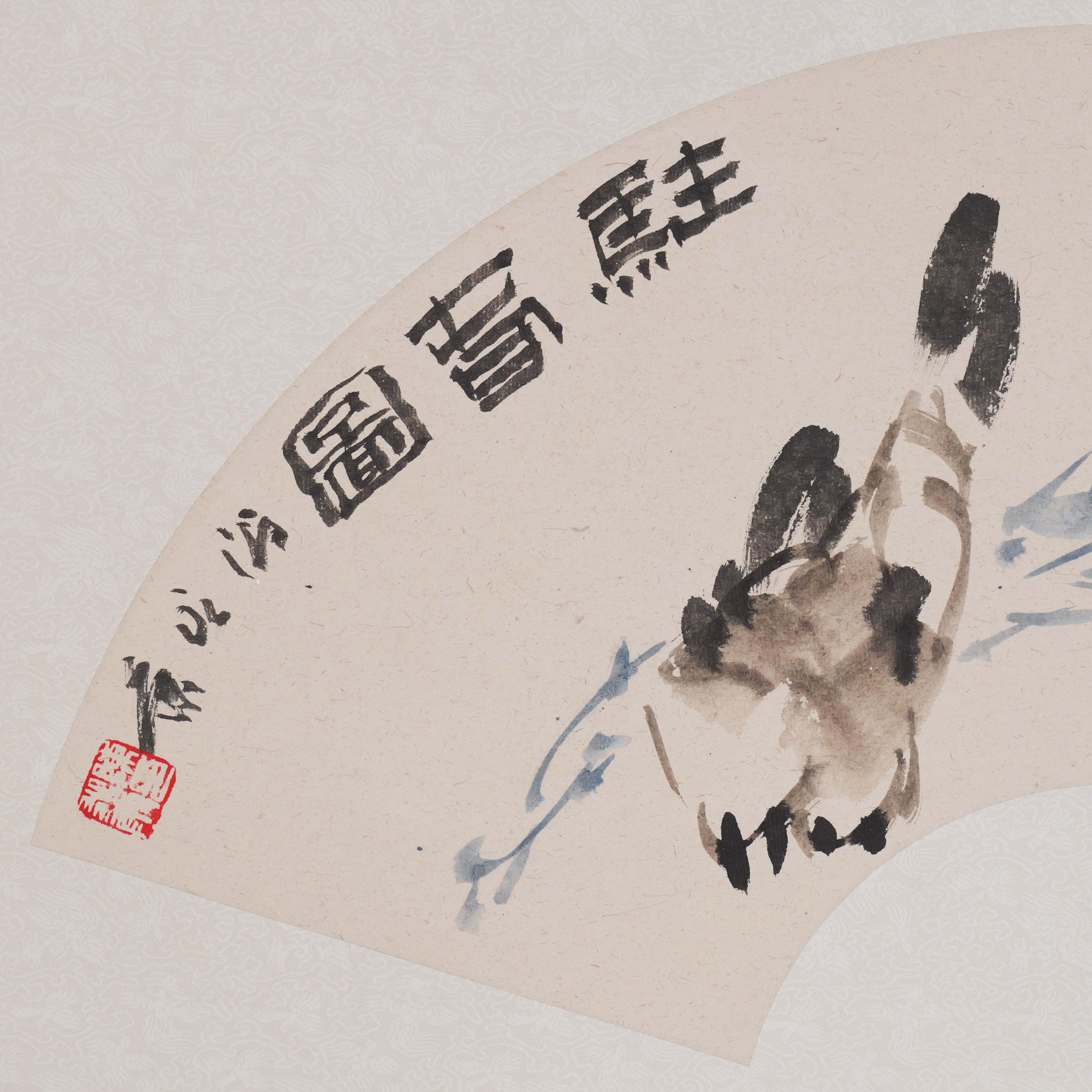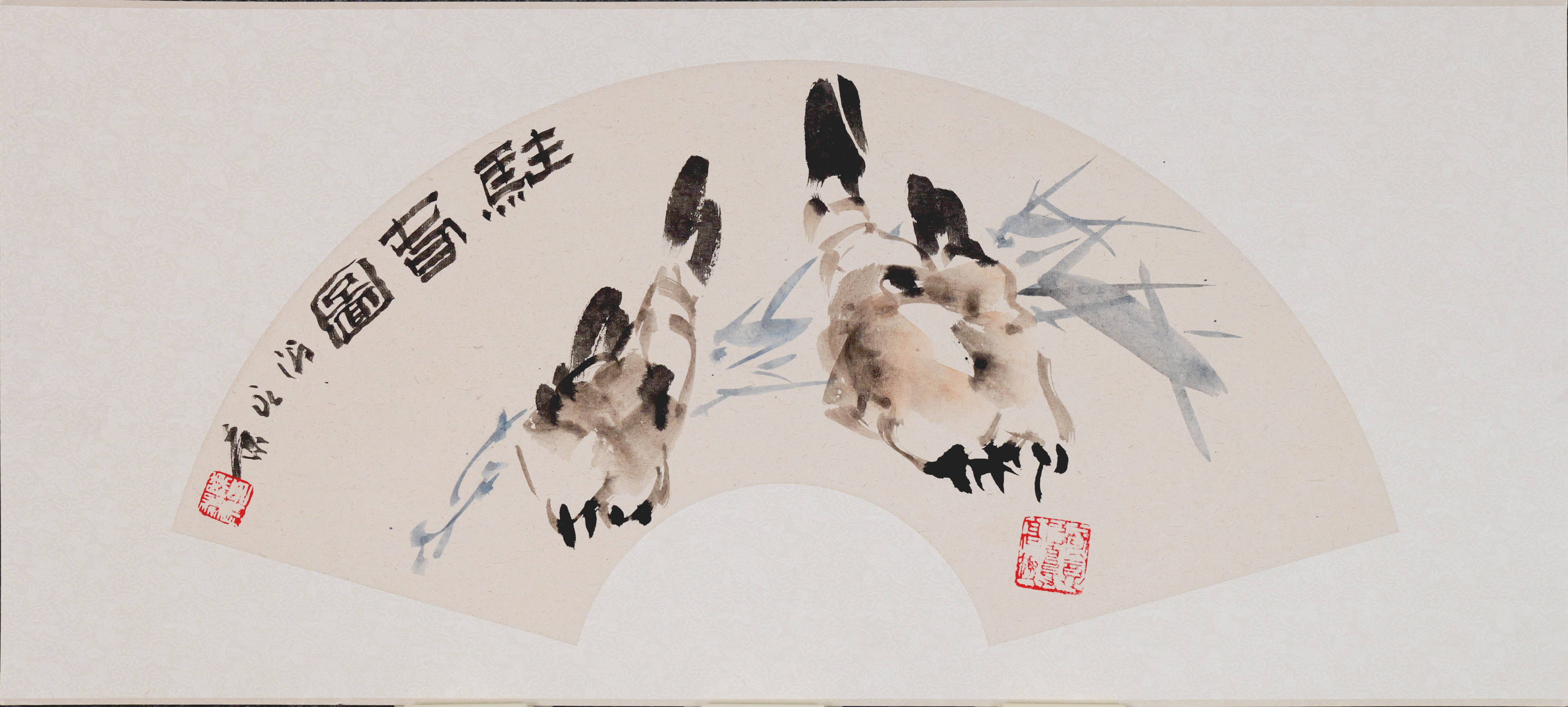 陈永康《驻春图》国画原作30CM*60CM 手绘卡纸扇面花鸟作品
