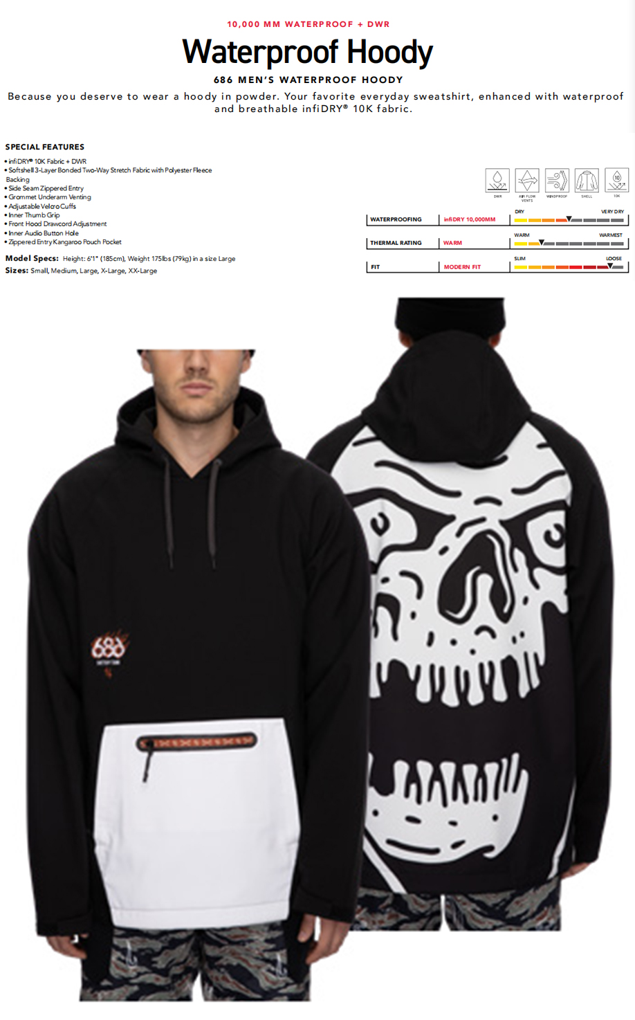 686 21-22 新款 Waterproof Hoody男款套头雪服 骷髅款