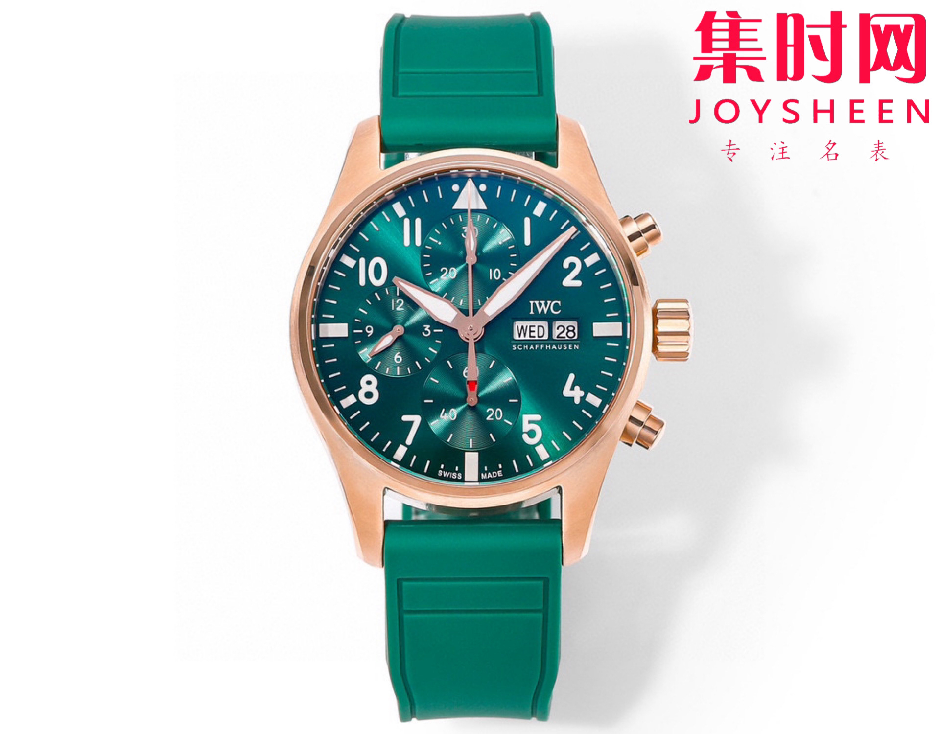 新品 红金绿盘绝美配色 IWC万国 TW飞行员计时系列 新款IW388110 男士腕表
