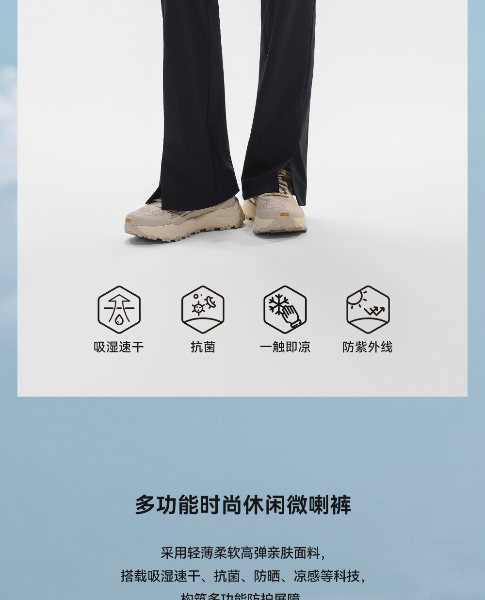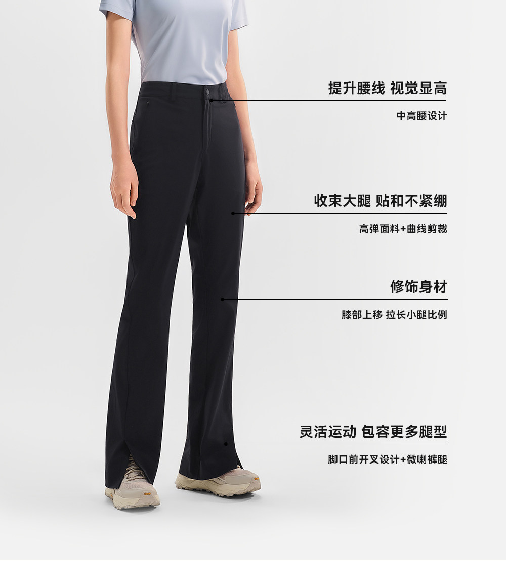伯希和户外速干裤26新款女士微喇显瘦抑菌凉感长裤高弹徒步登山裤
