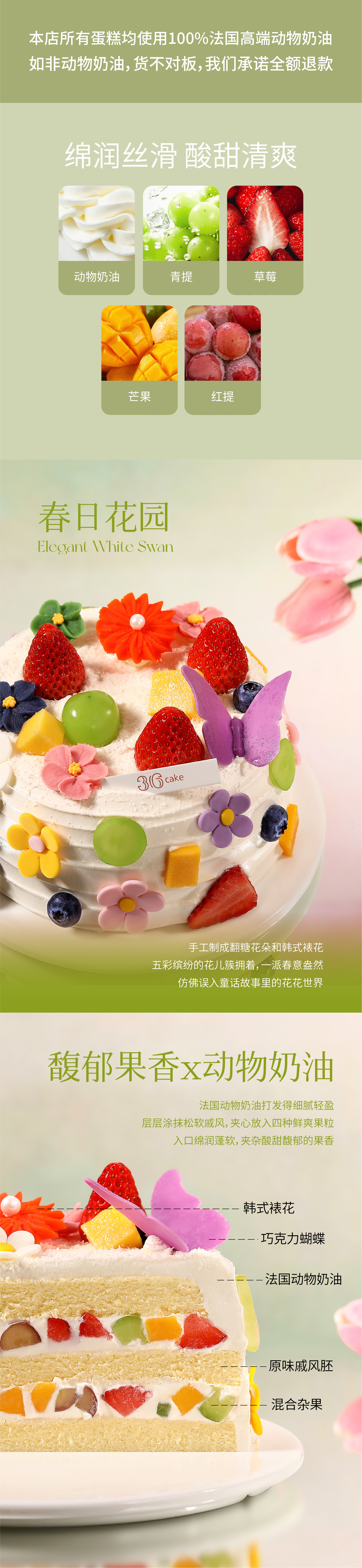 油画玫珑-蜜瓜芭乐树莓蛋糕,可选1/1.5/2.5/3.5/6磅 | 36CAKE