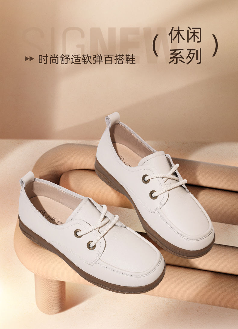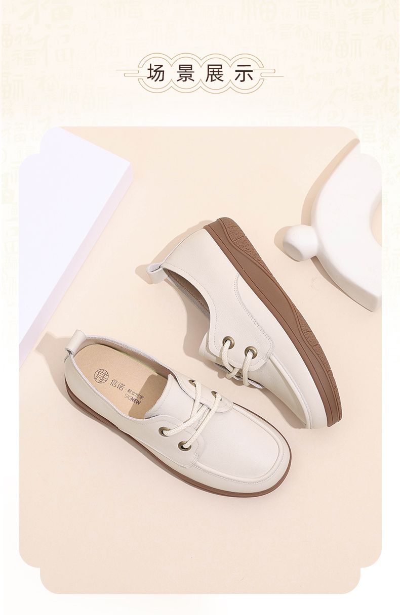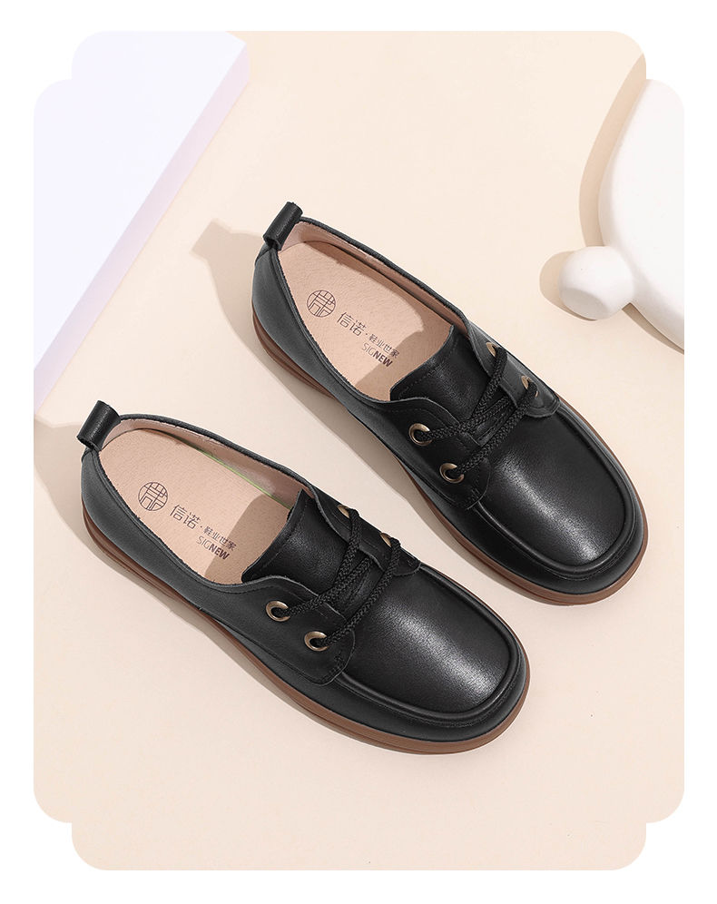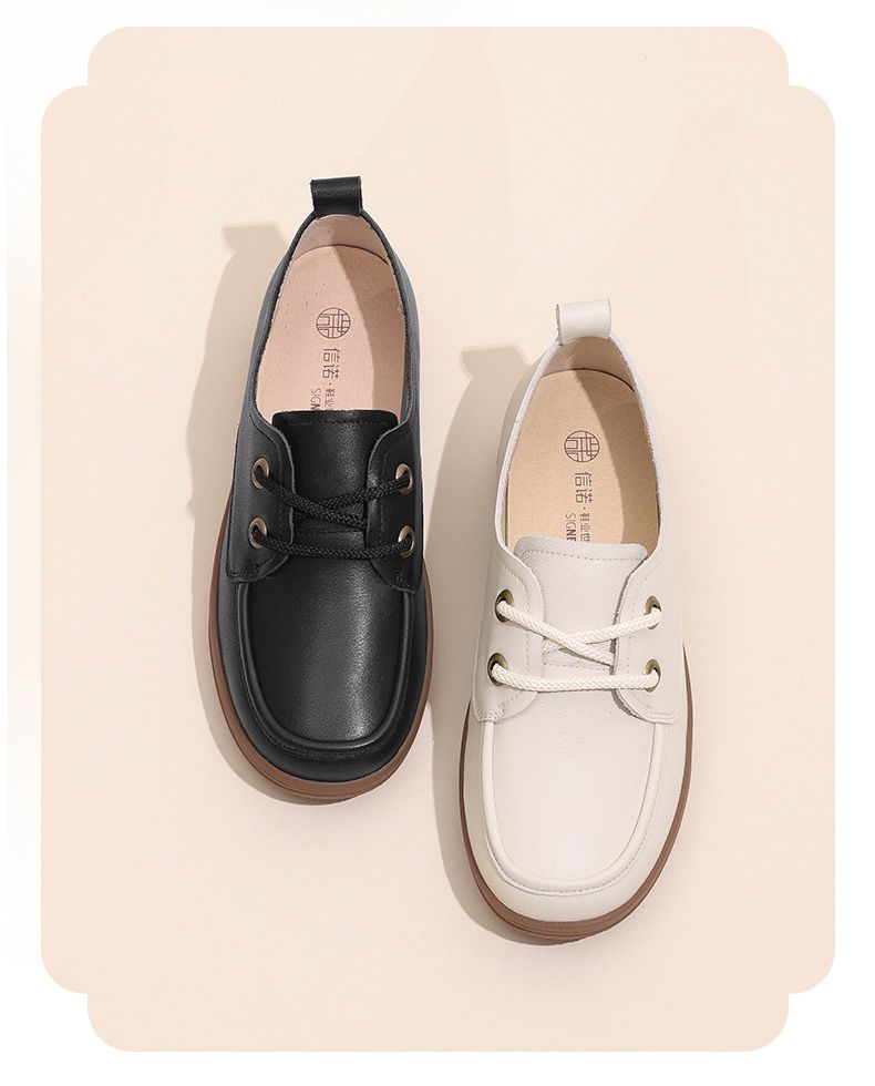信诺真皮舒适女鞋2024新款秋季绑带小皮鞋厚底舒适通勤休闲软单鞋Q3066-N16