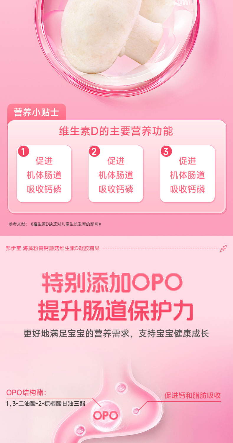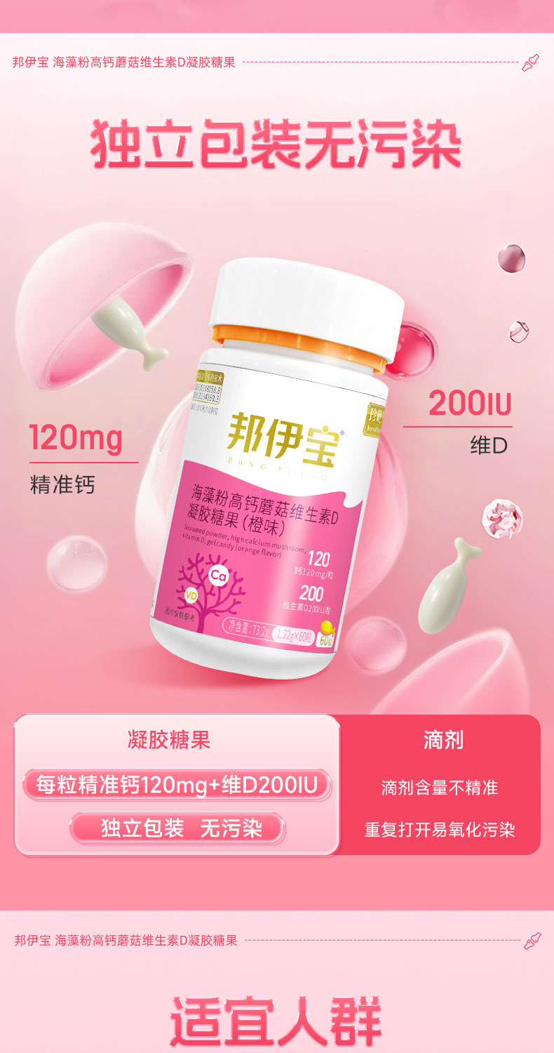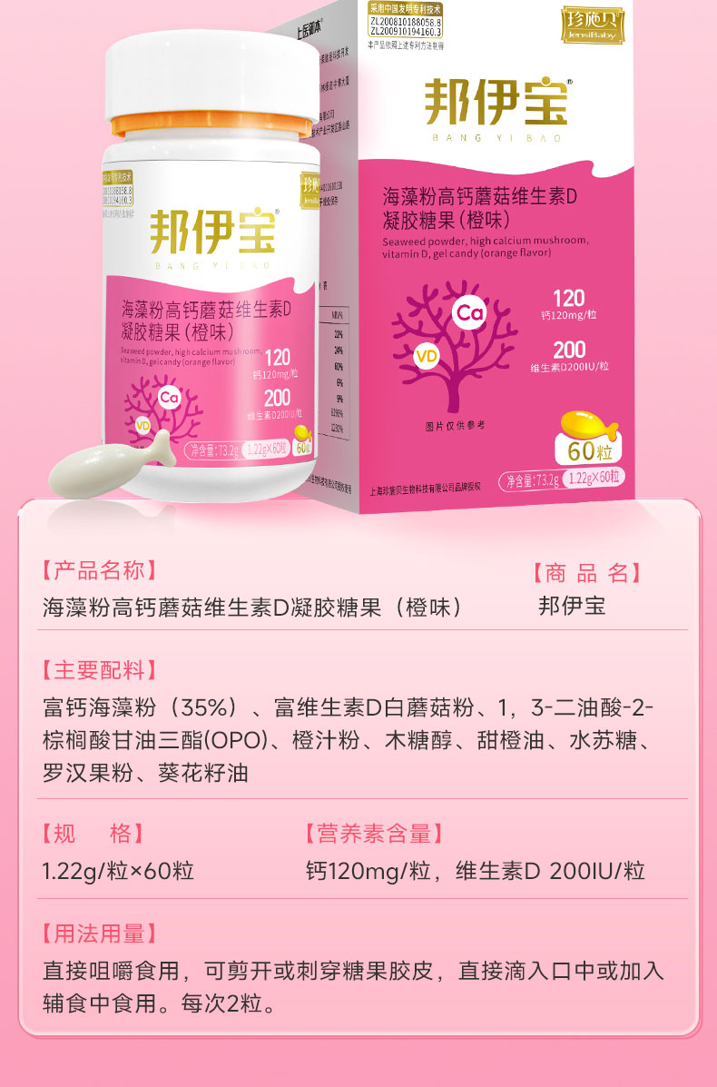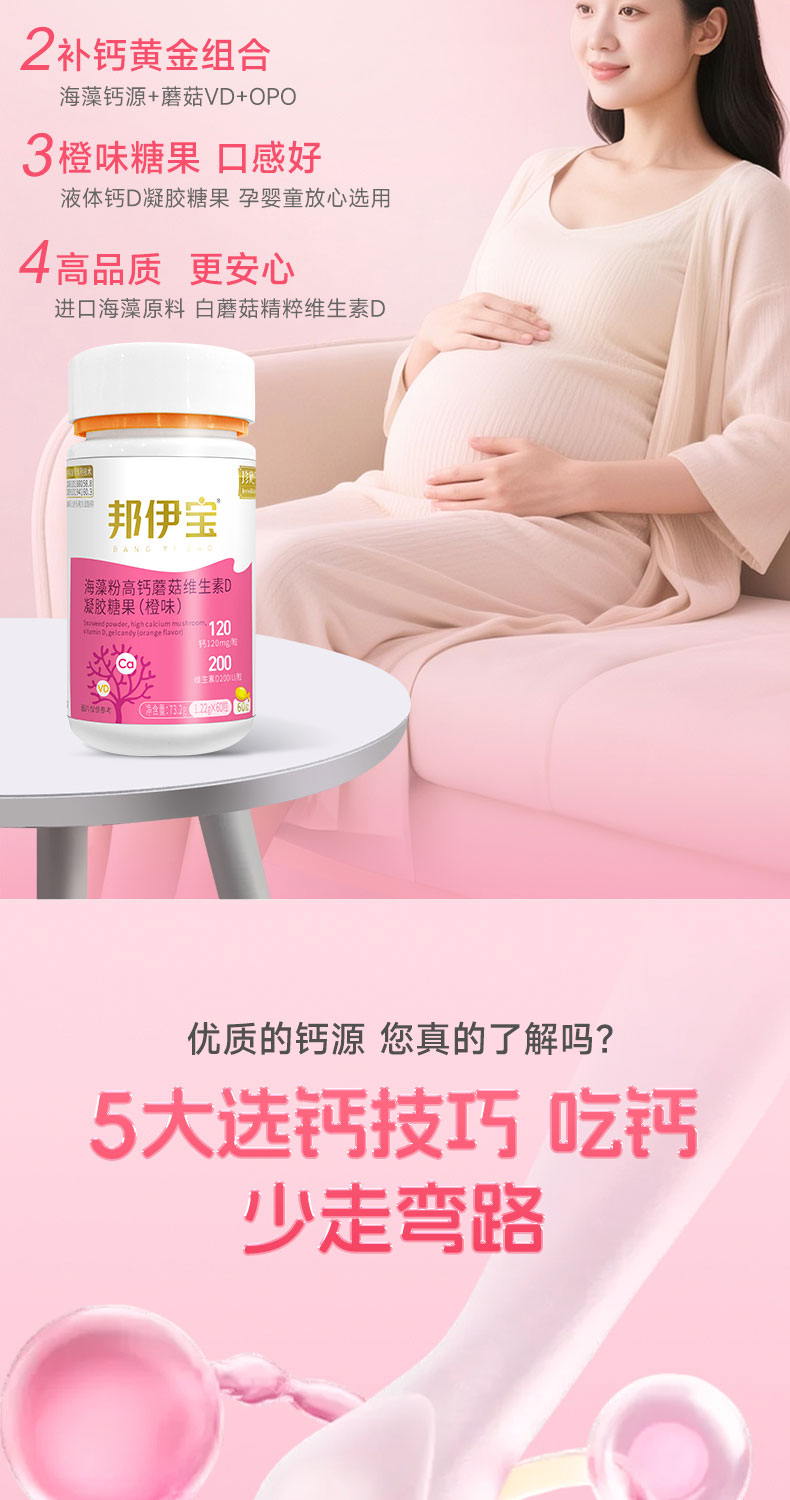 邦伊宝升级款海藻有机钙OPO蘑菇维生素D孕妇乳母婴童高吸收不伤胃