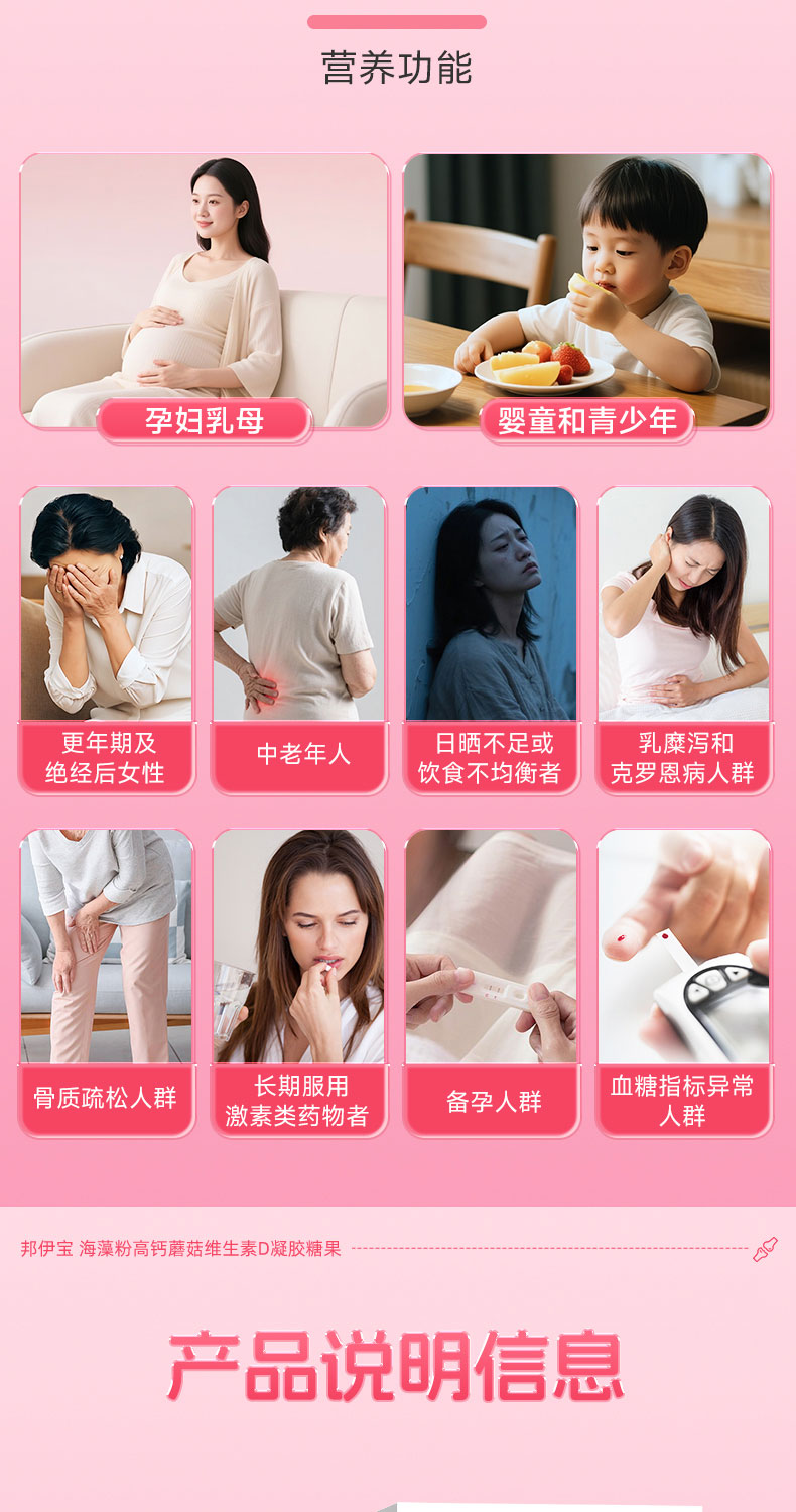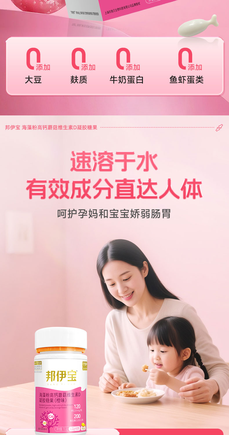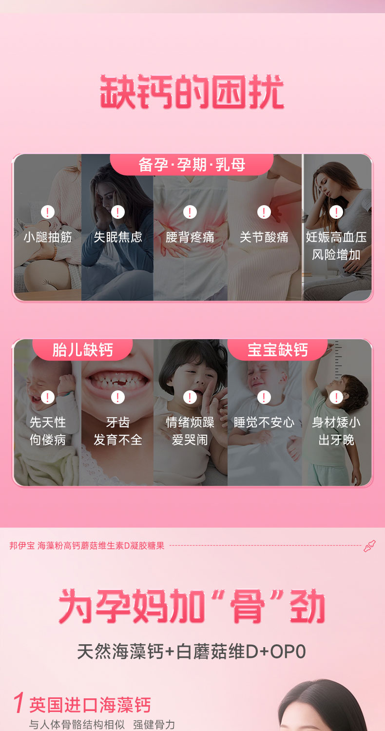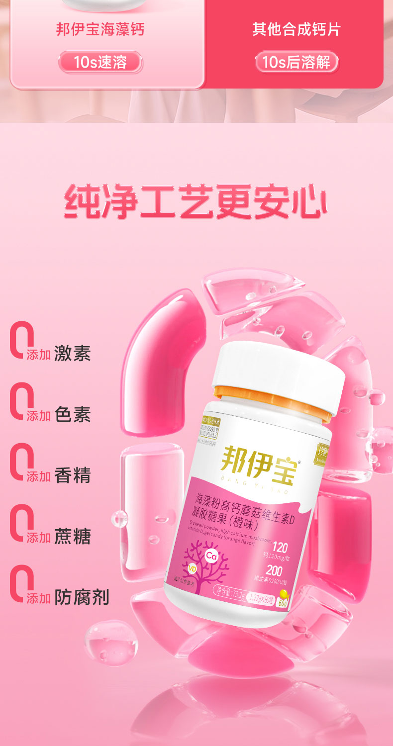 邦伊宝升级款海藻有机钙OPO蘑菇维生素D孕妇乳母婴童高吸收不伤胃