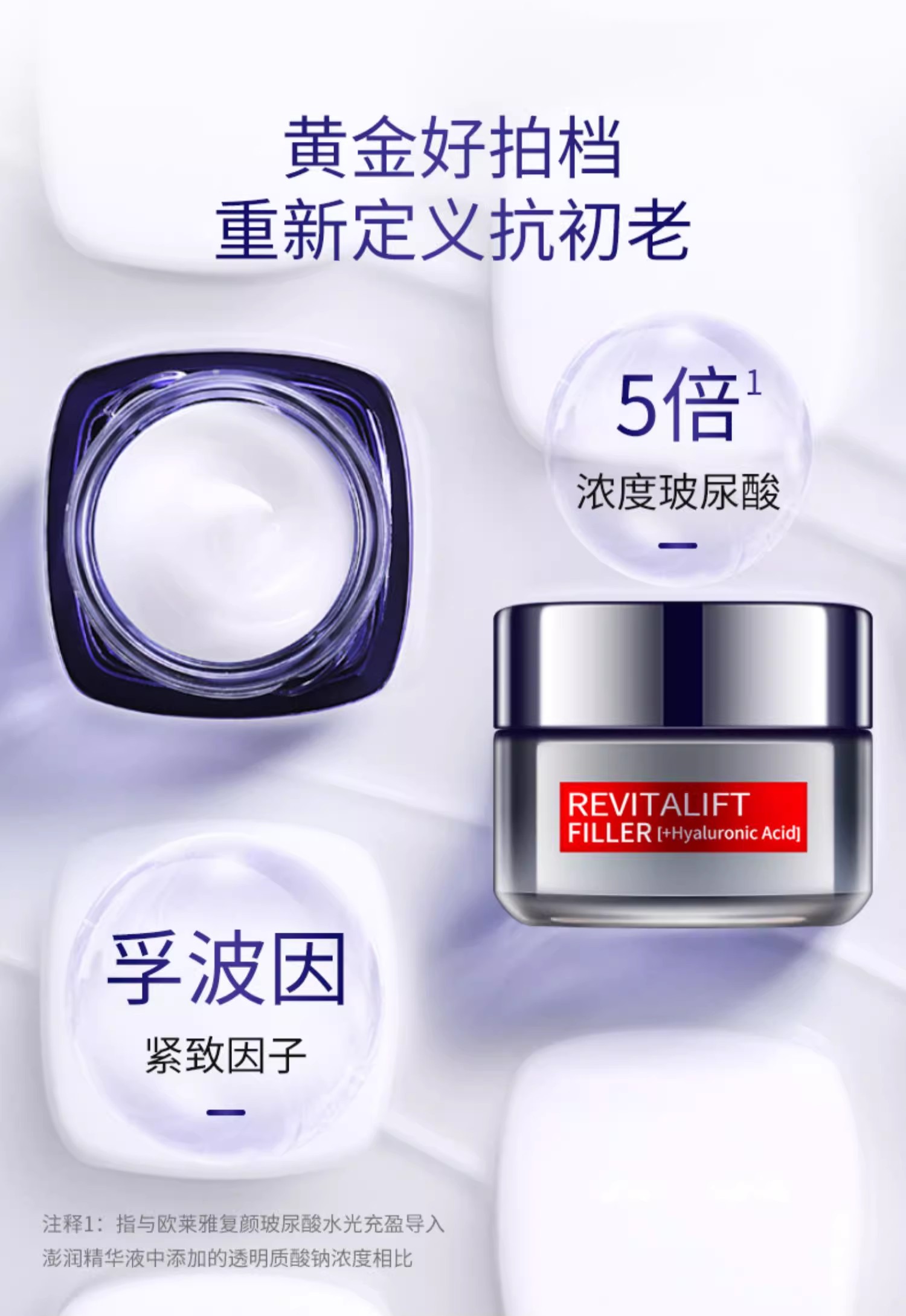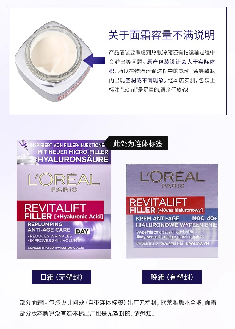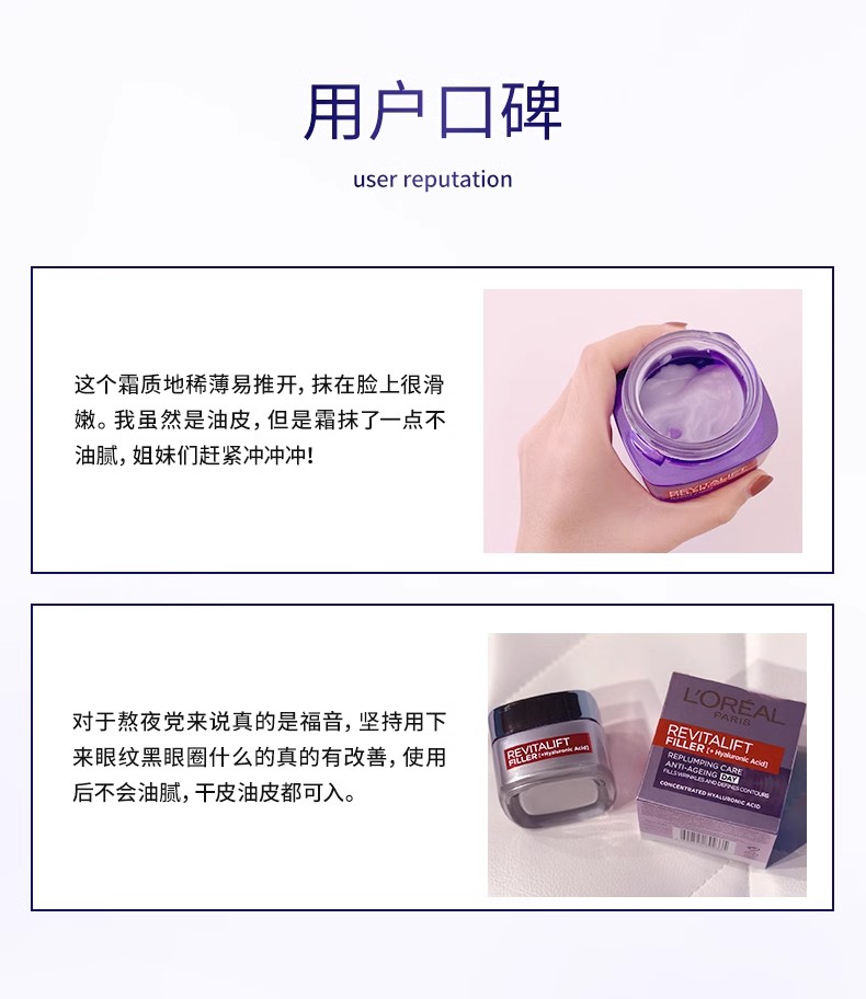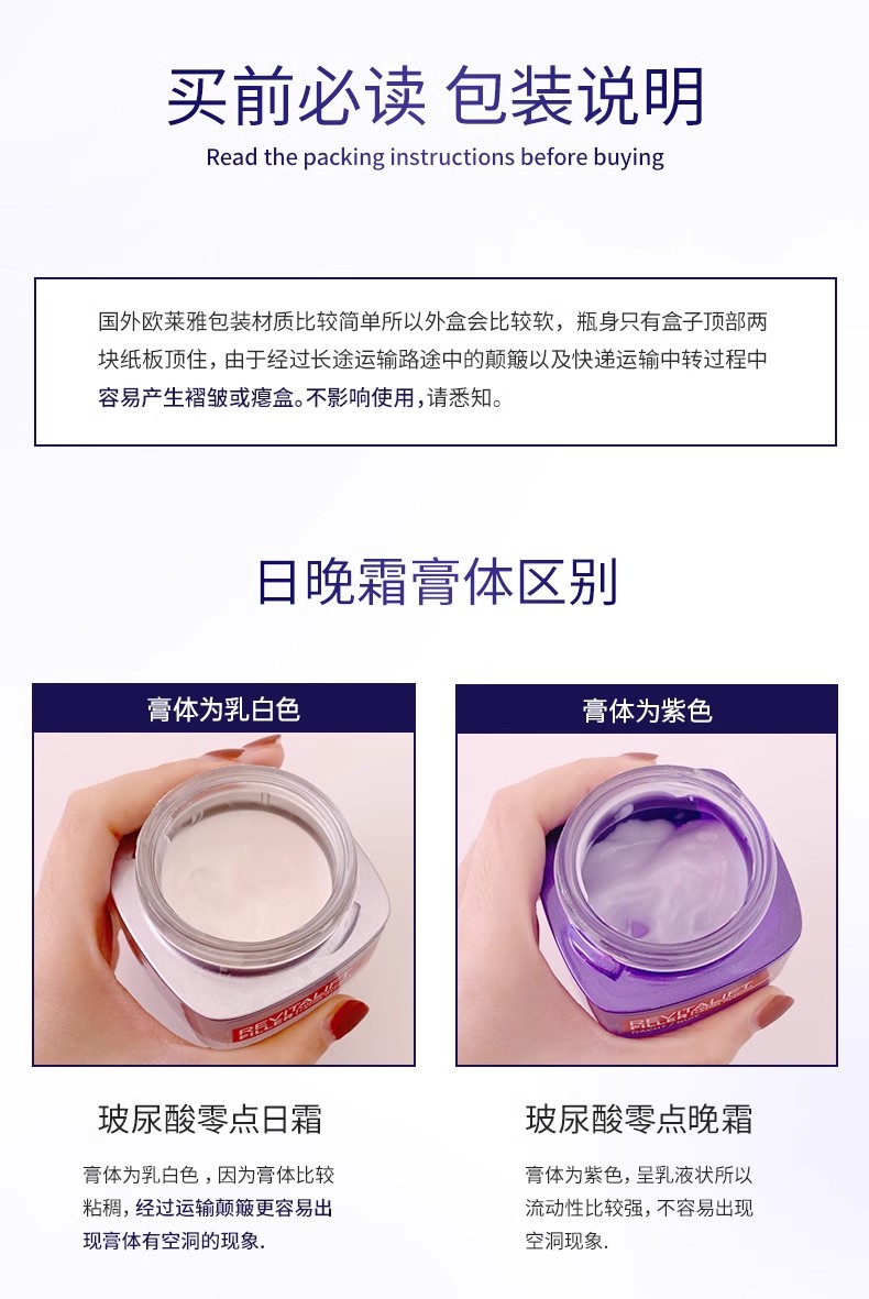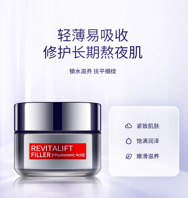 LOREAL/欧莱雅复颜玻尿酸水光充盈零点霜50ml 欧版 零点日霜保湿滋润补水