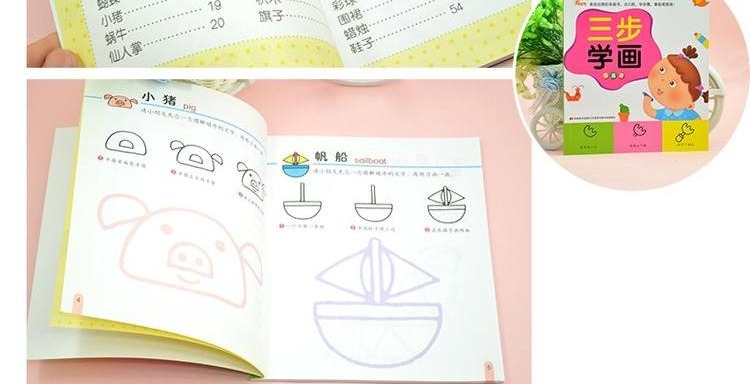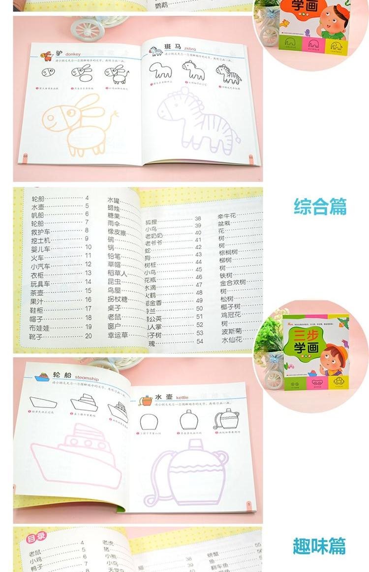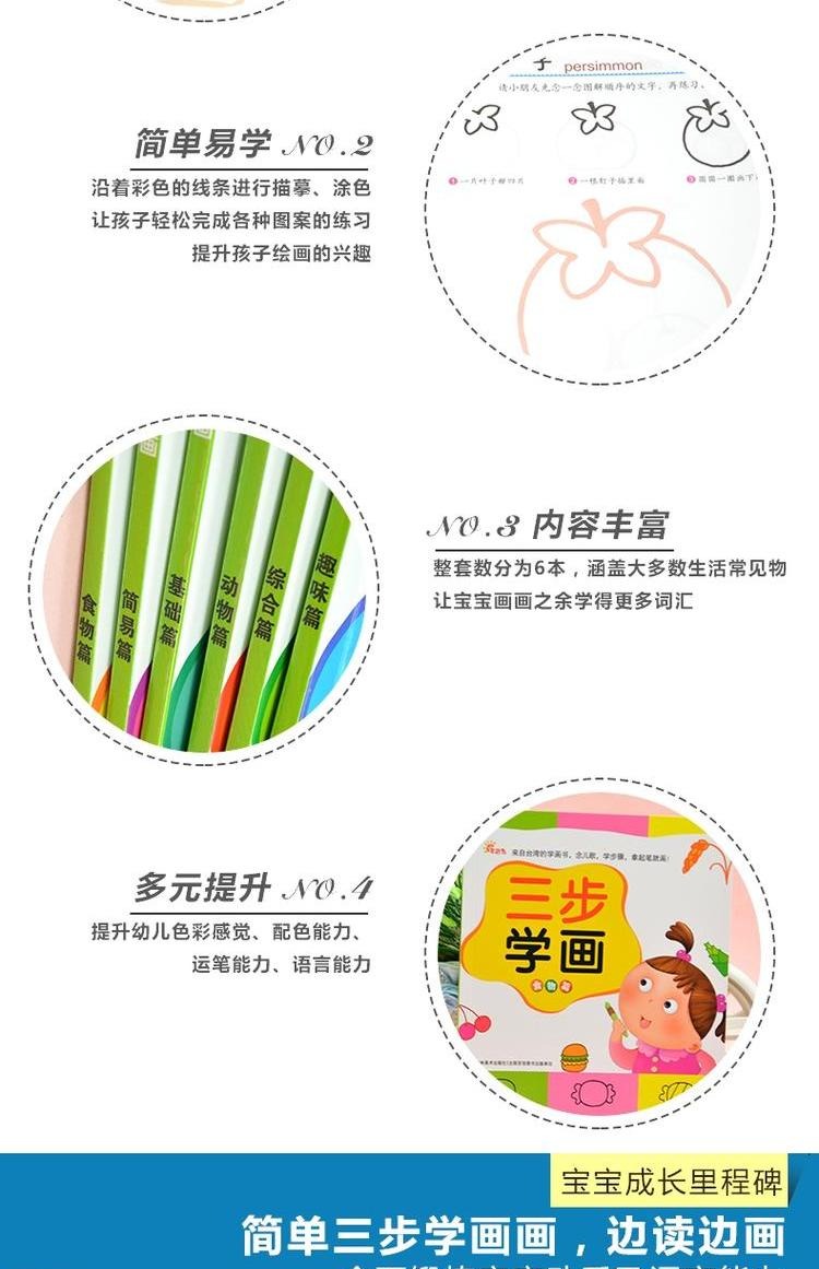 6本套装 台湾引进版权 儿童美术学习书籍 三步学画-1 儿童早教书籍 亲子幼儿少儿学习画画书学前填色绘画启蒙