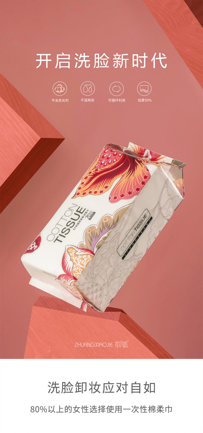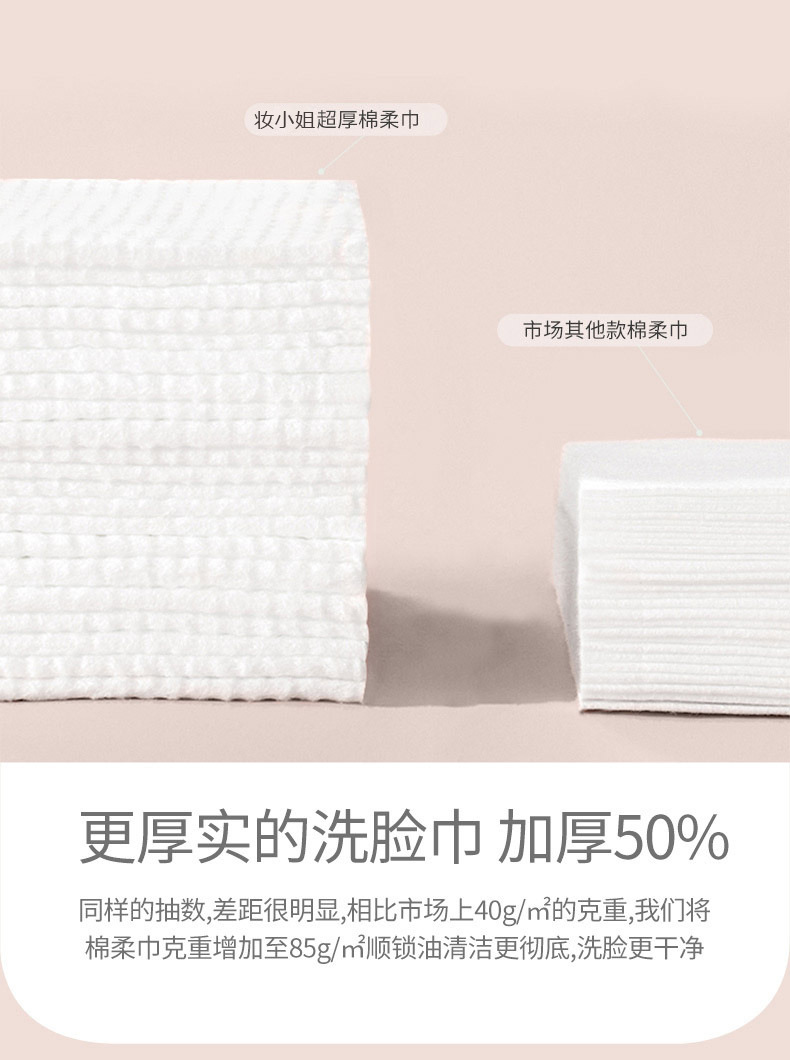 妆小姐70抽EF纹超厚美容洁面巾升级加厚干湿两用一次性洗脸棉柔巾