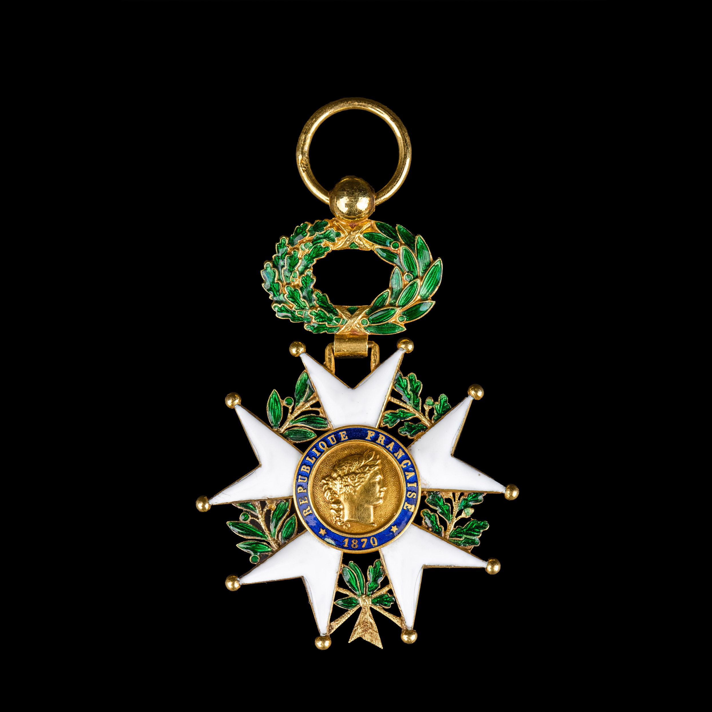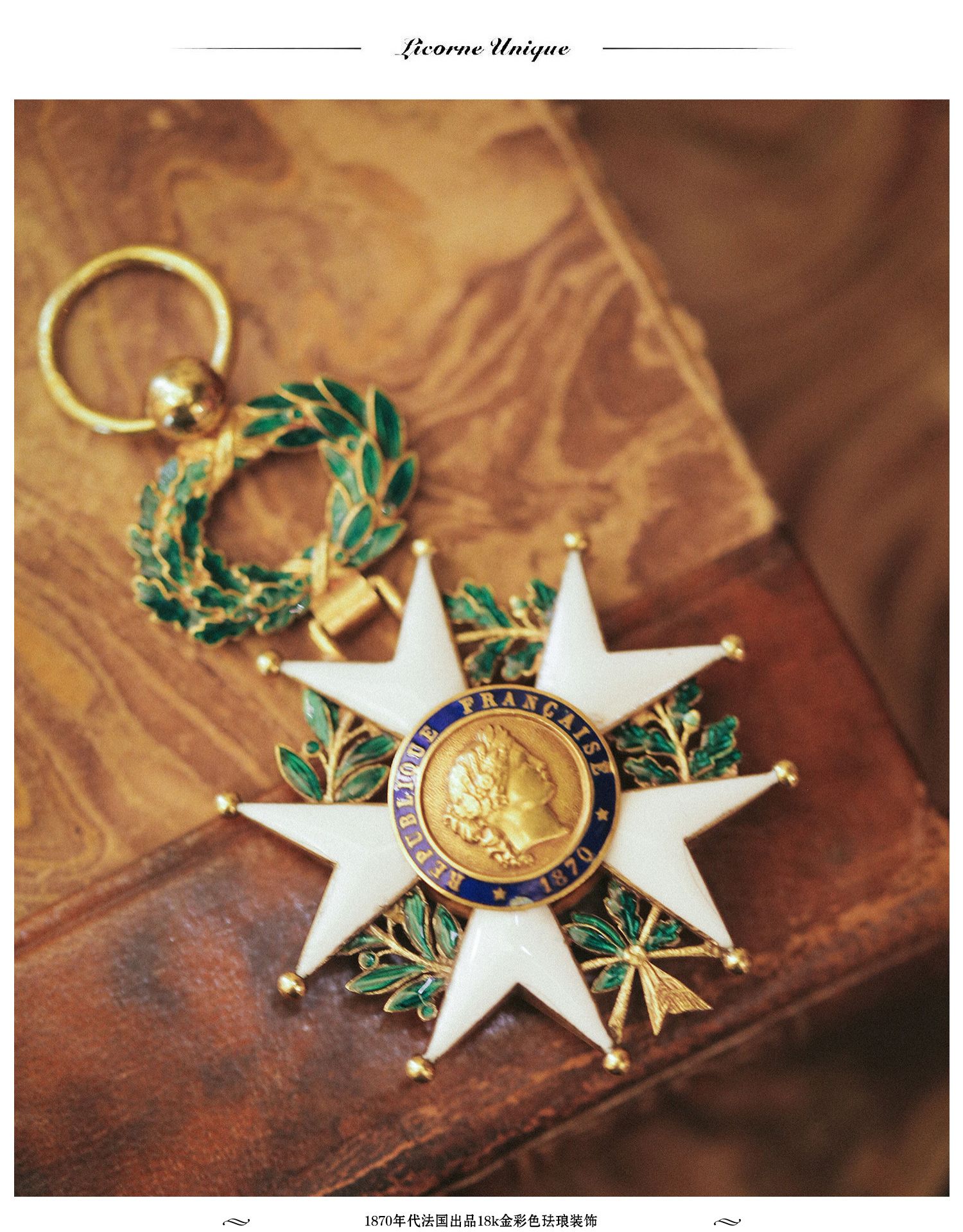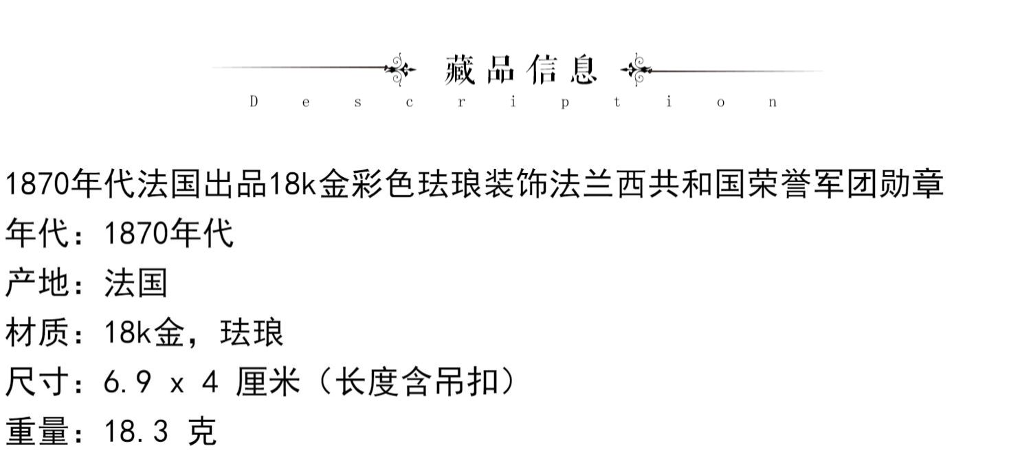 独角鹿西洋古董1870年代18K金彩色珐琅法兰西共和国荣誉军团勋章