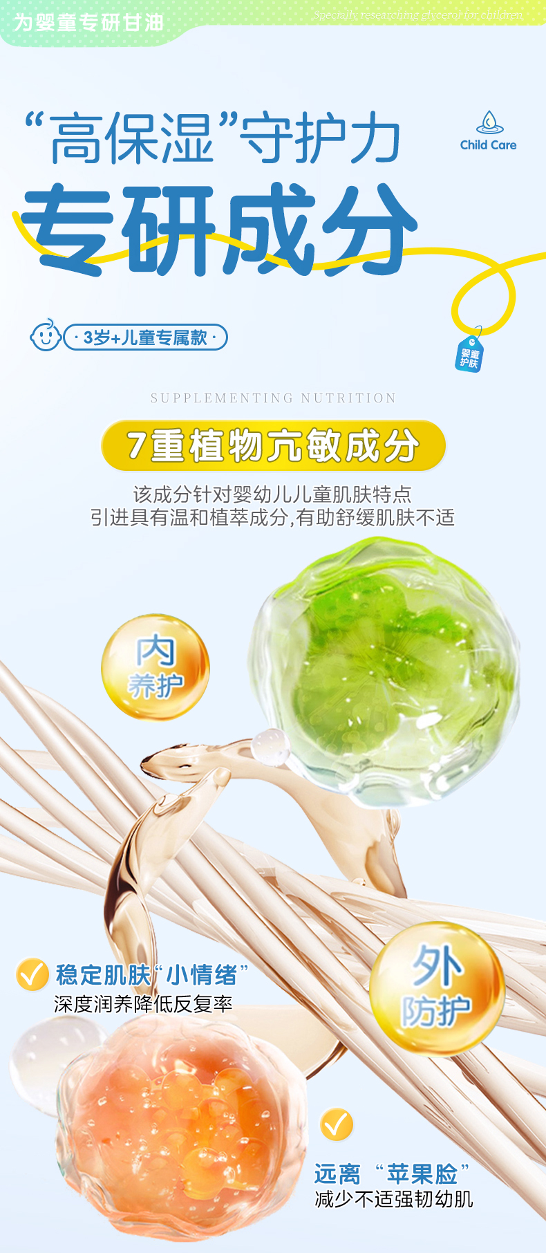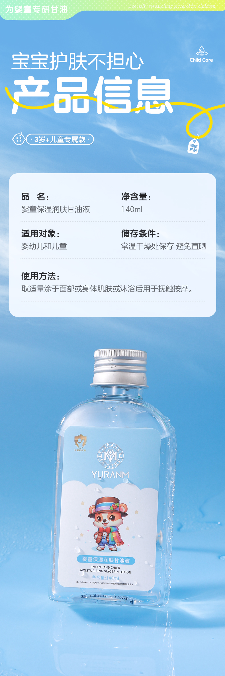 【0-12岁专用】瑜然美儿童护肤甘油身体润肤油宝宝婴儿面部专用补水保湿按摩精油