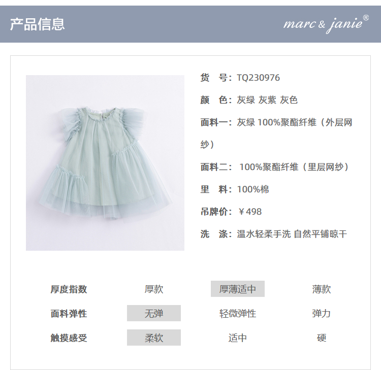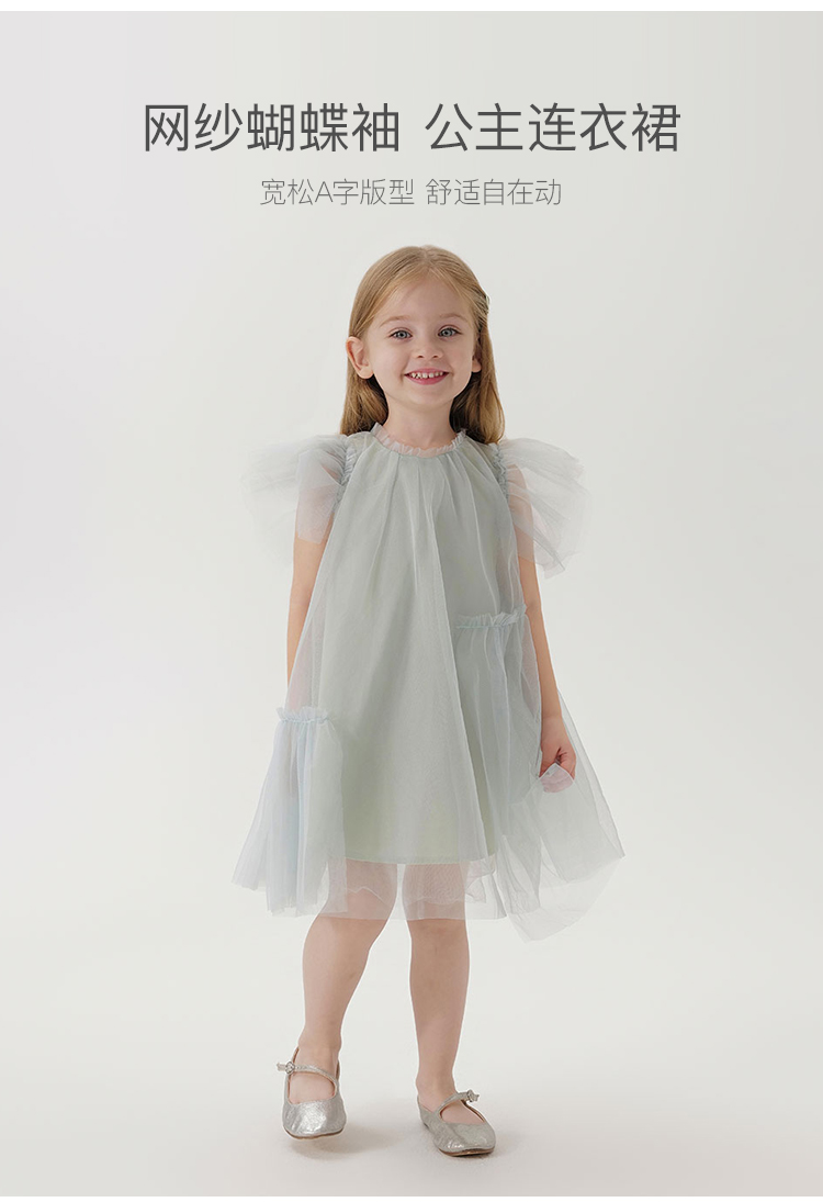 马克珍妮夏装新款 女童小飞袖网纱连衣裙 儿童裙子230976