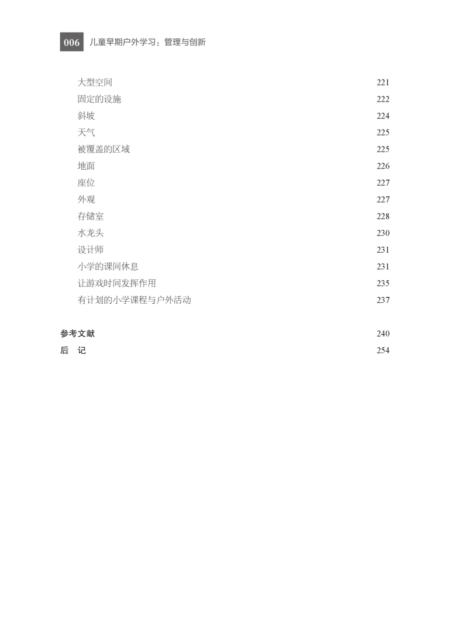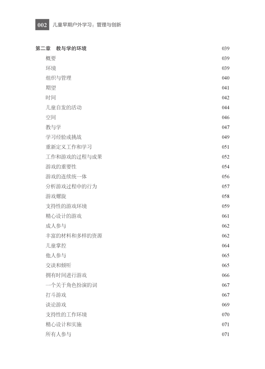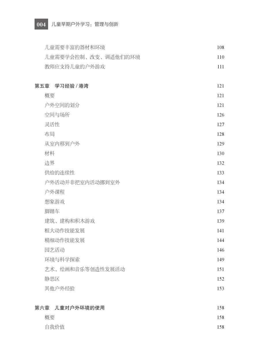 《儿童早期的户外学习:管理与创新》包含众多与儿童早期户外区域有关的想法和活动,并为专业人士提供了一个分析和创设户外设施和户外环境的框架。这本书是所有0—5 岁早期保育教育(Early Years Foundation Stage,EYFS)和(小学低年级)关键阶段1(Key Stage 1)实践工作者、实习教师和他们的培训者/指导者的重要资源。