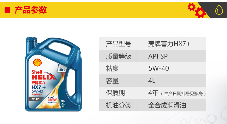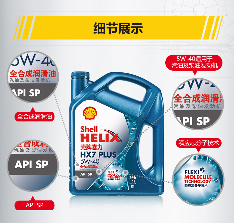 壳牌喜力HX7+ 5W-40 API SP 全合成润滑油
