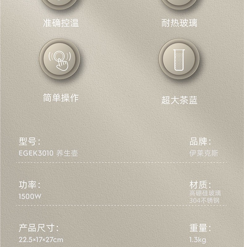 膳魔师 ELECTROLUX 伊莱克斯养生壶1.7L EGEK3010
