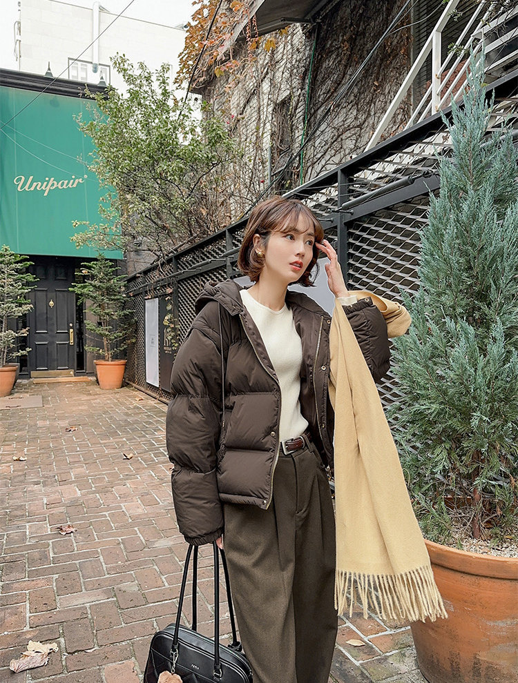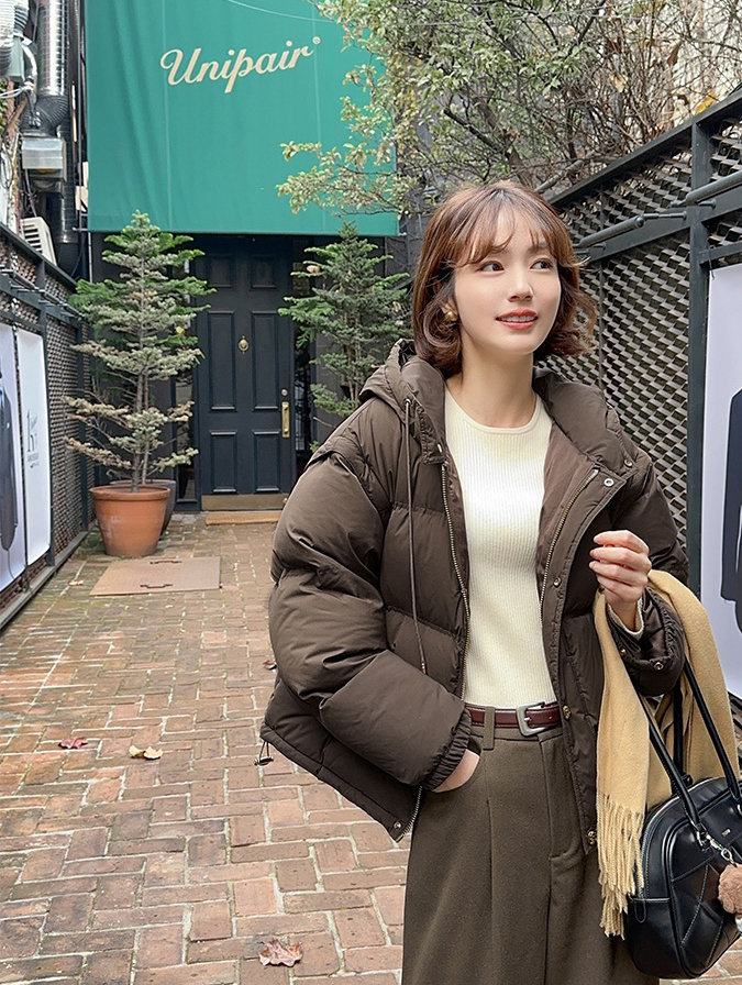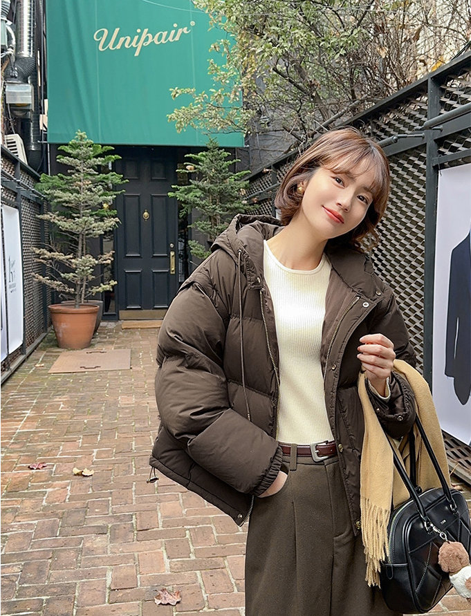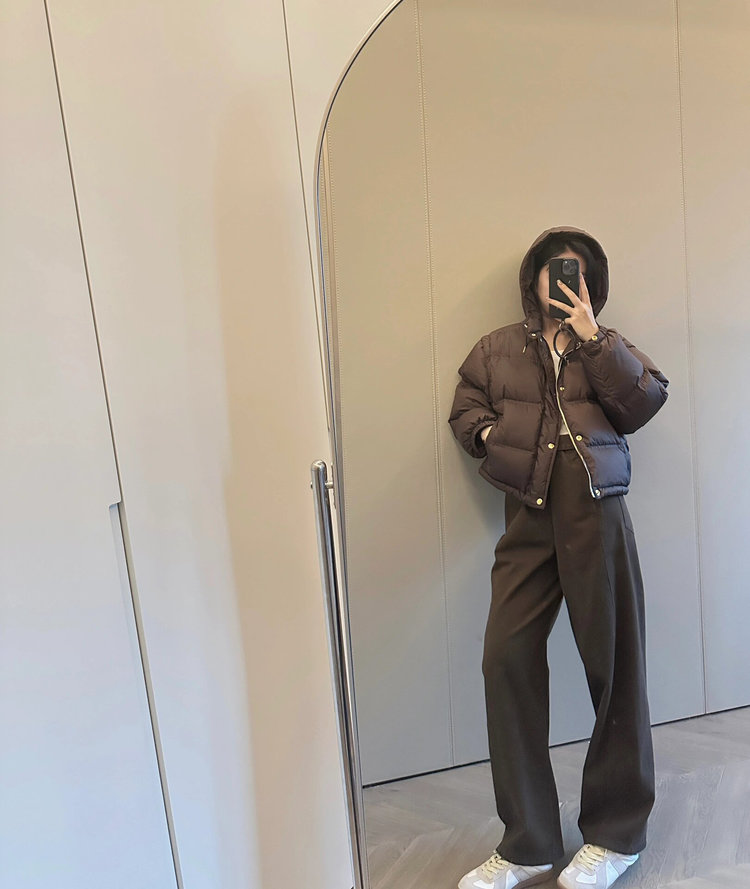 CL家浓郁巧克力连帽实用两穿羽绒服!温暖洋气