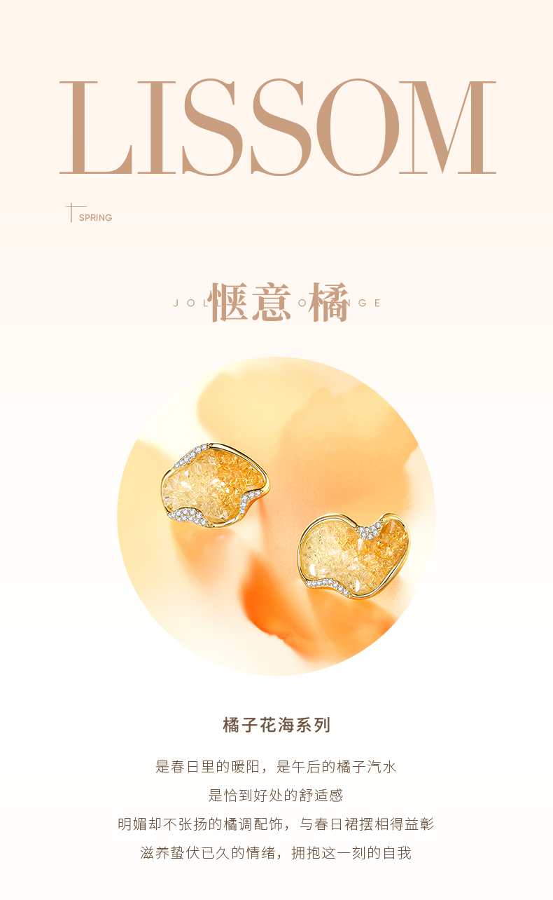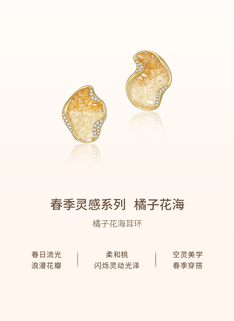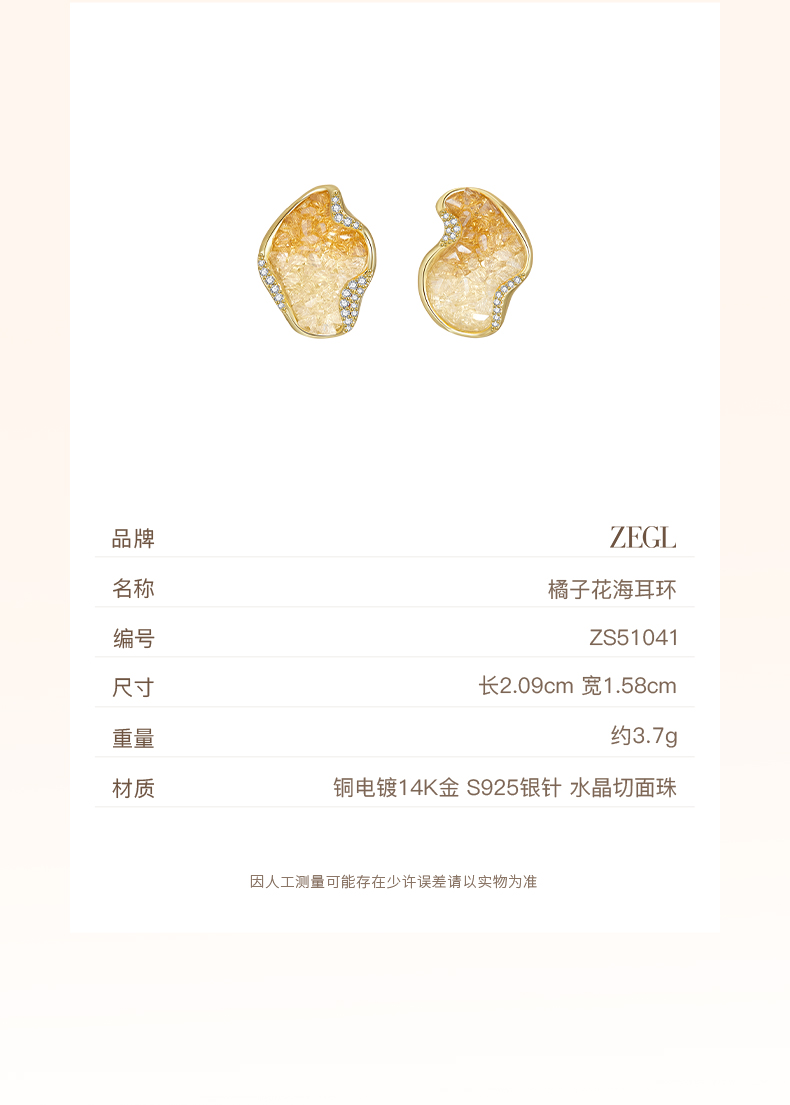 ZEGL设计师橘子花海系金色耳环女2024新款爆款高级感耳钉春夏耳饰