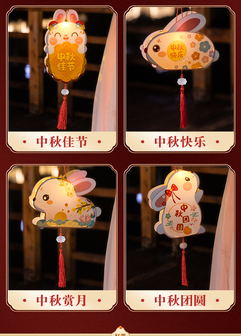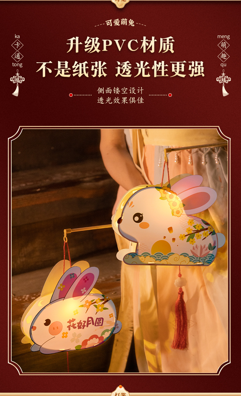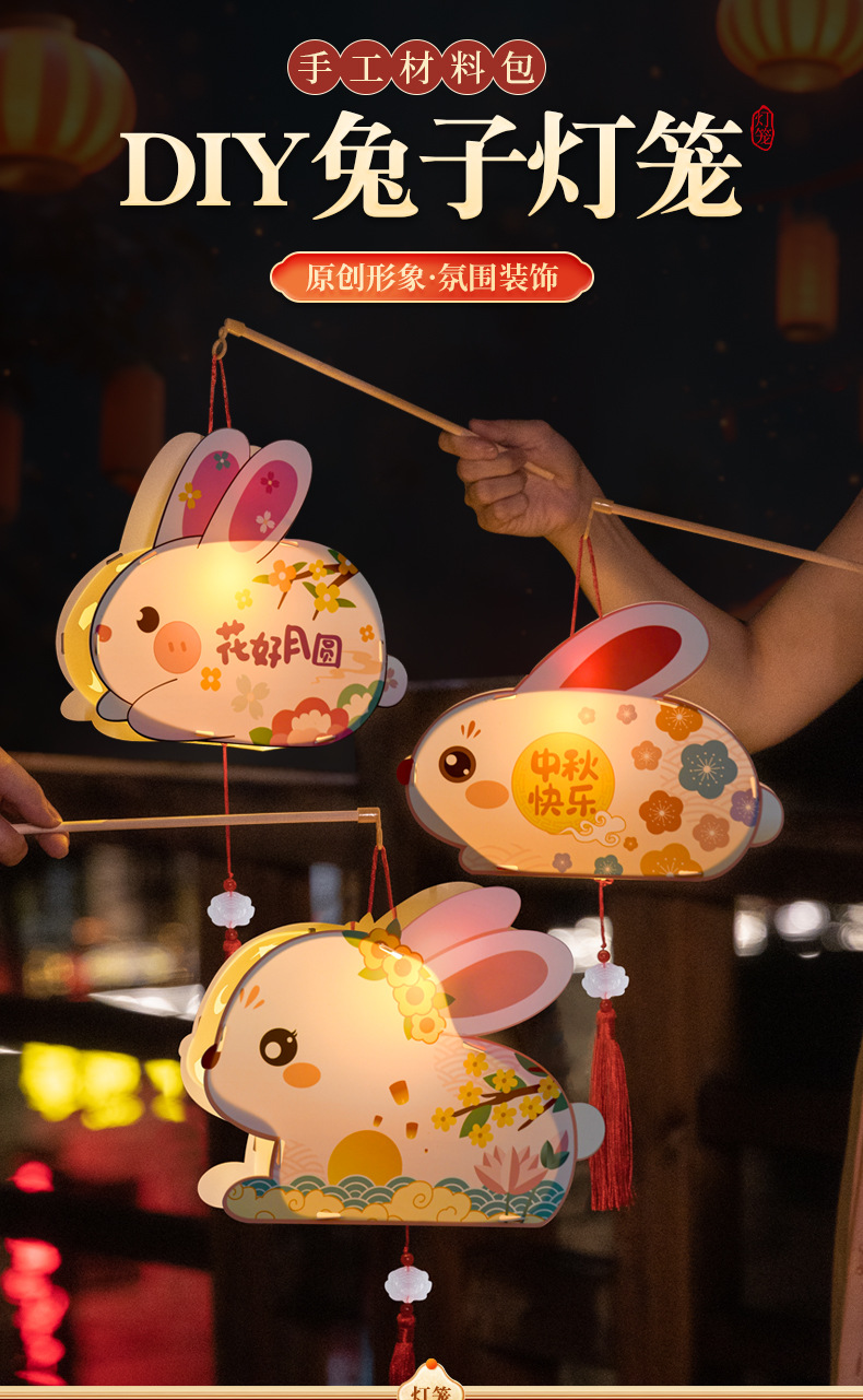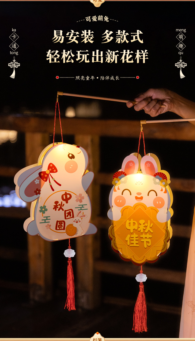 中秋节灯笼【卡通兔子花灯】儿童diy手工 手提发光 中秋节古风灯笼 街拍氛围感