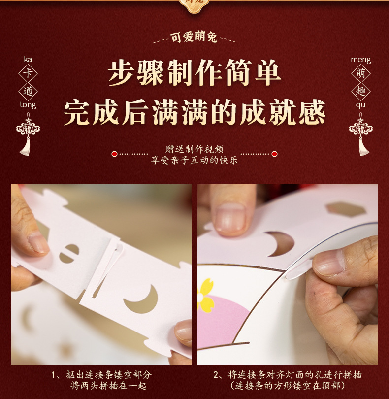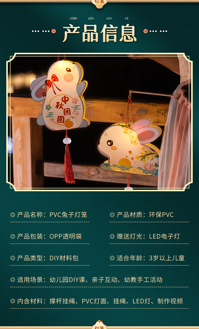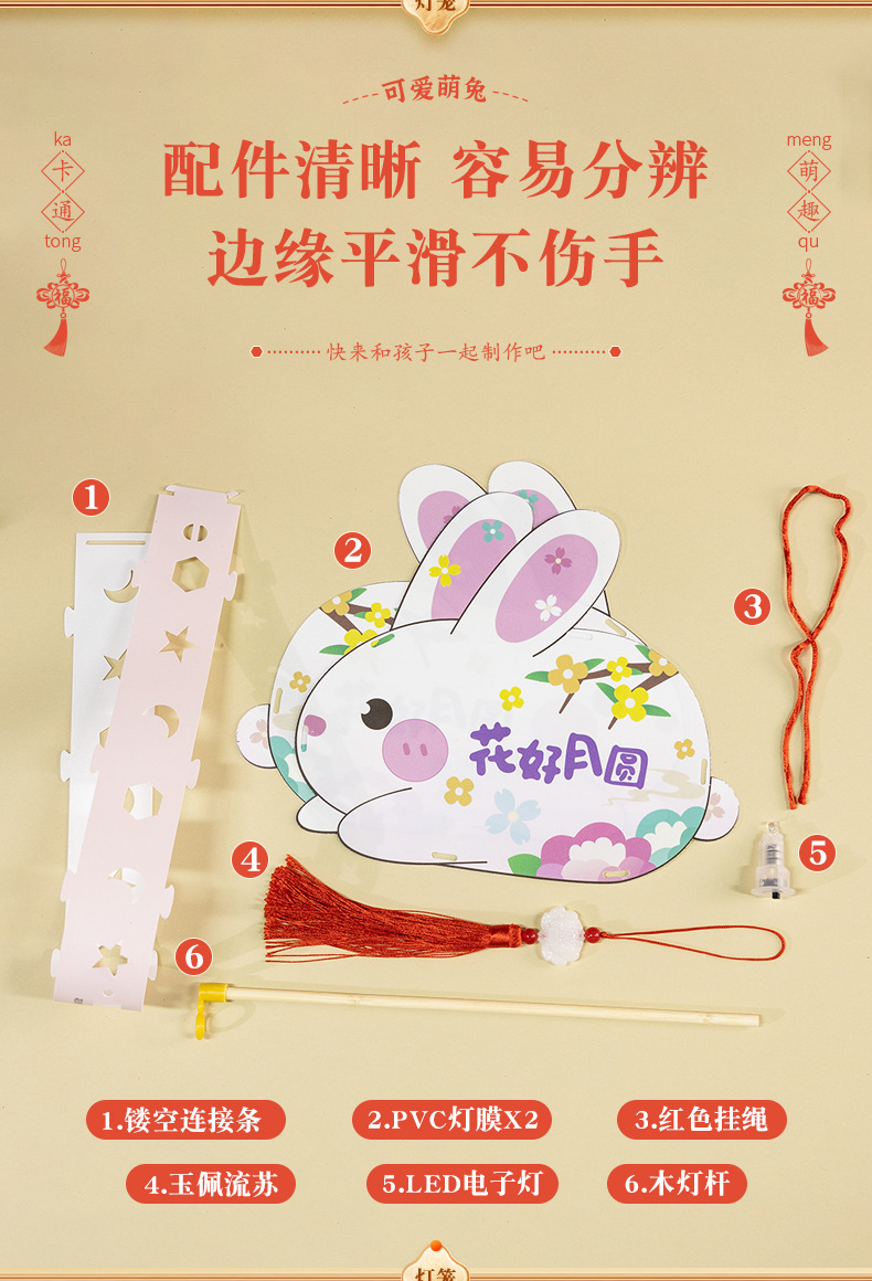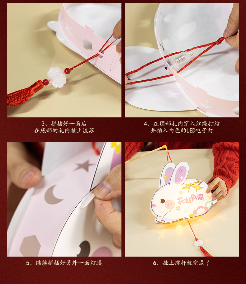 中秋节灯笼【卡通兔子花灯】儿童diy手工 手提发光 中秋节古风灯笼 街拍氛围感
