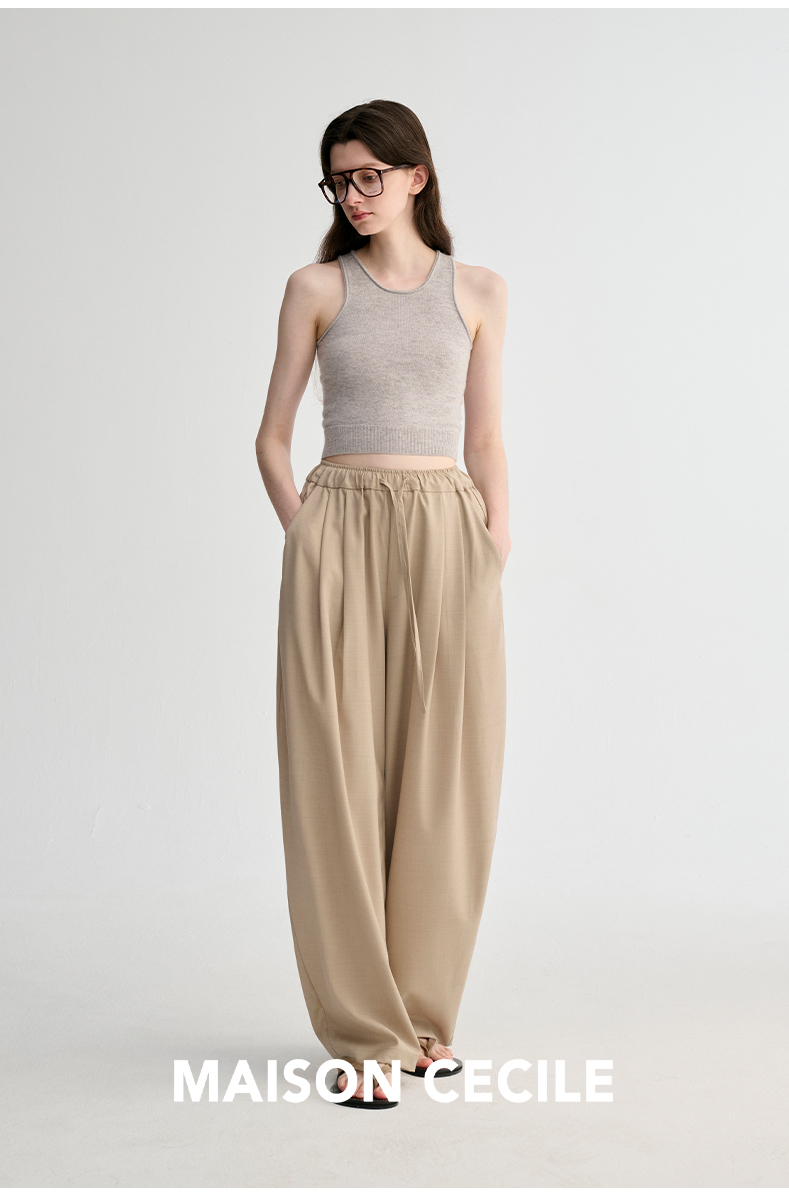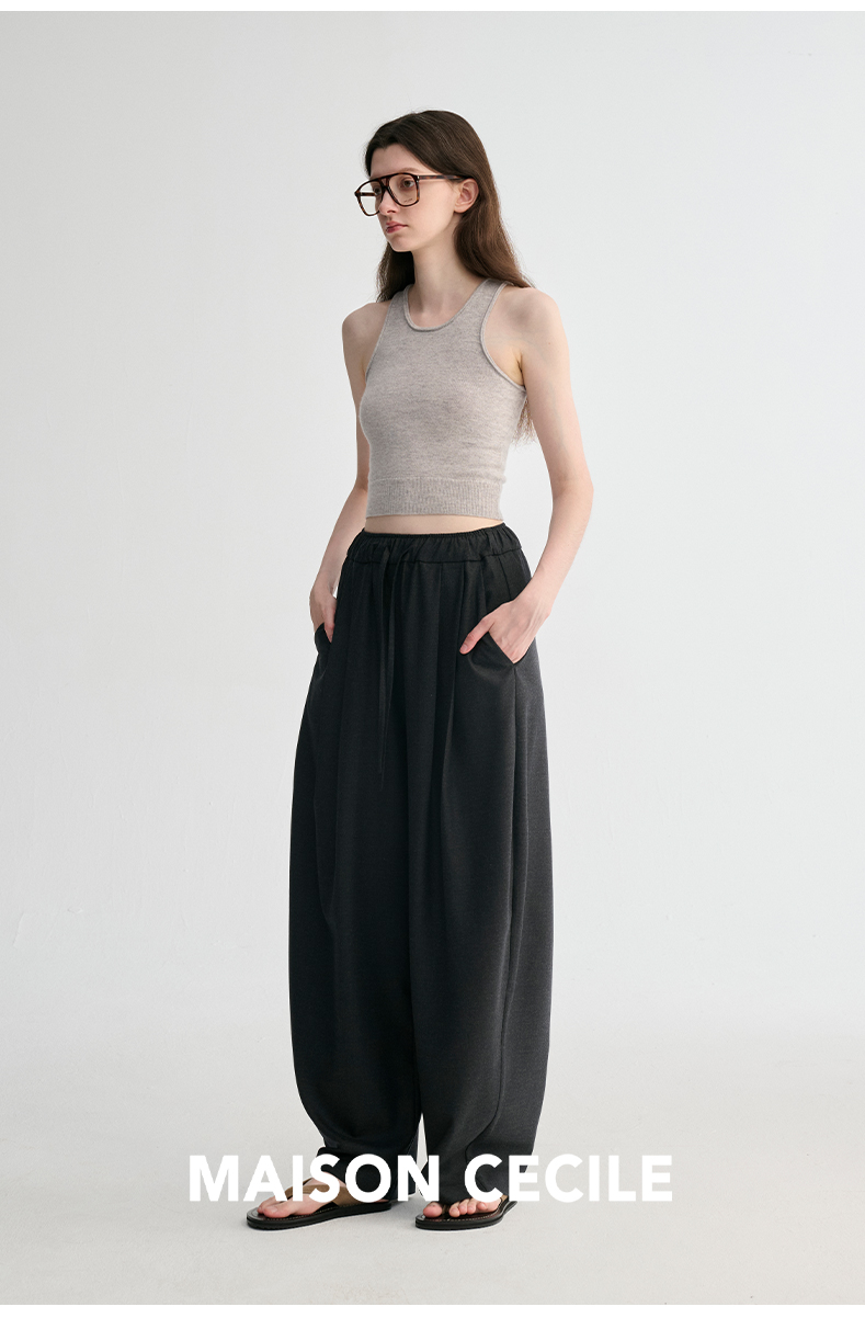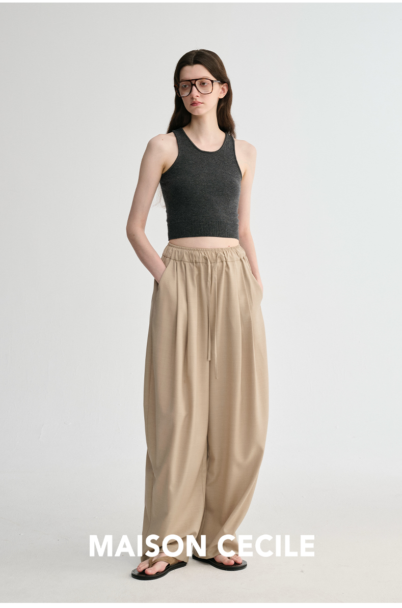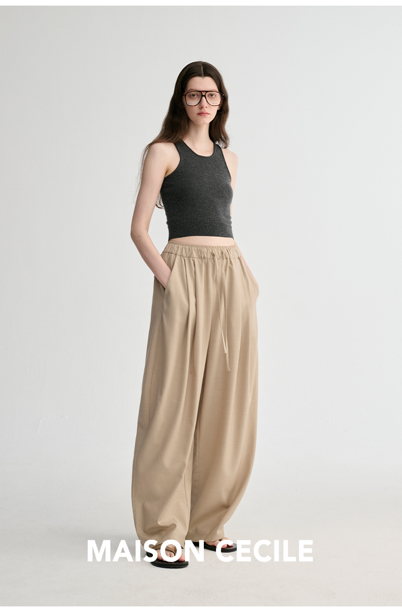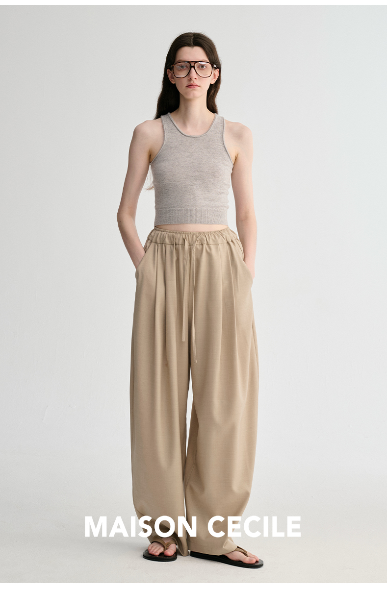 MAISON CECILE 两色/复古慵懒春秋百搭松紧腰精纺羊毛气球裤