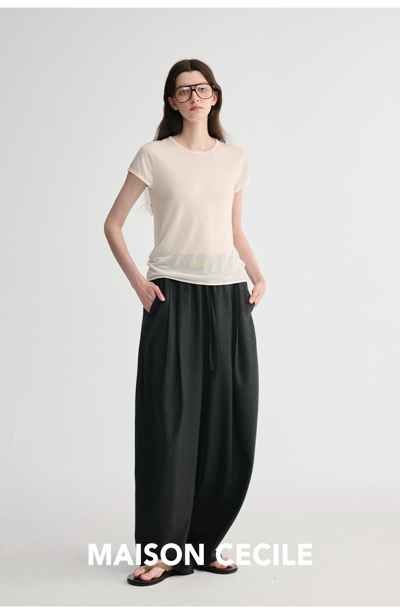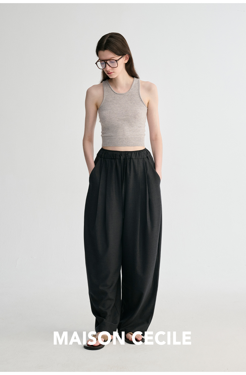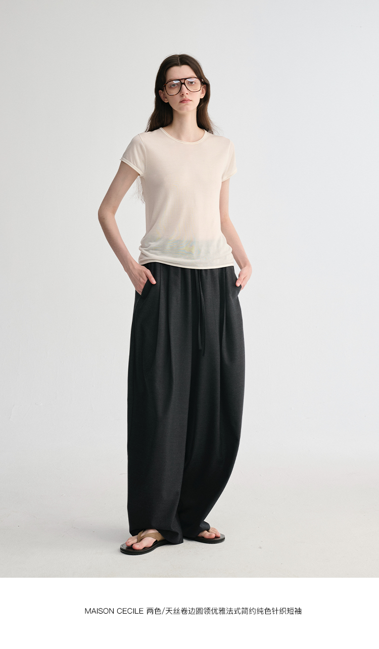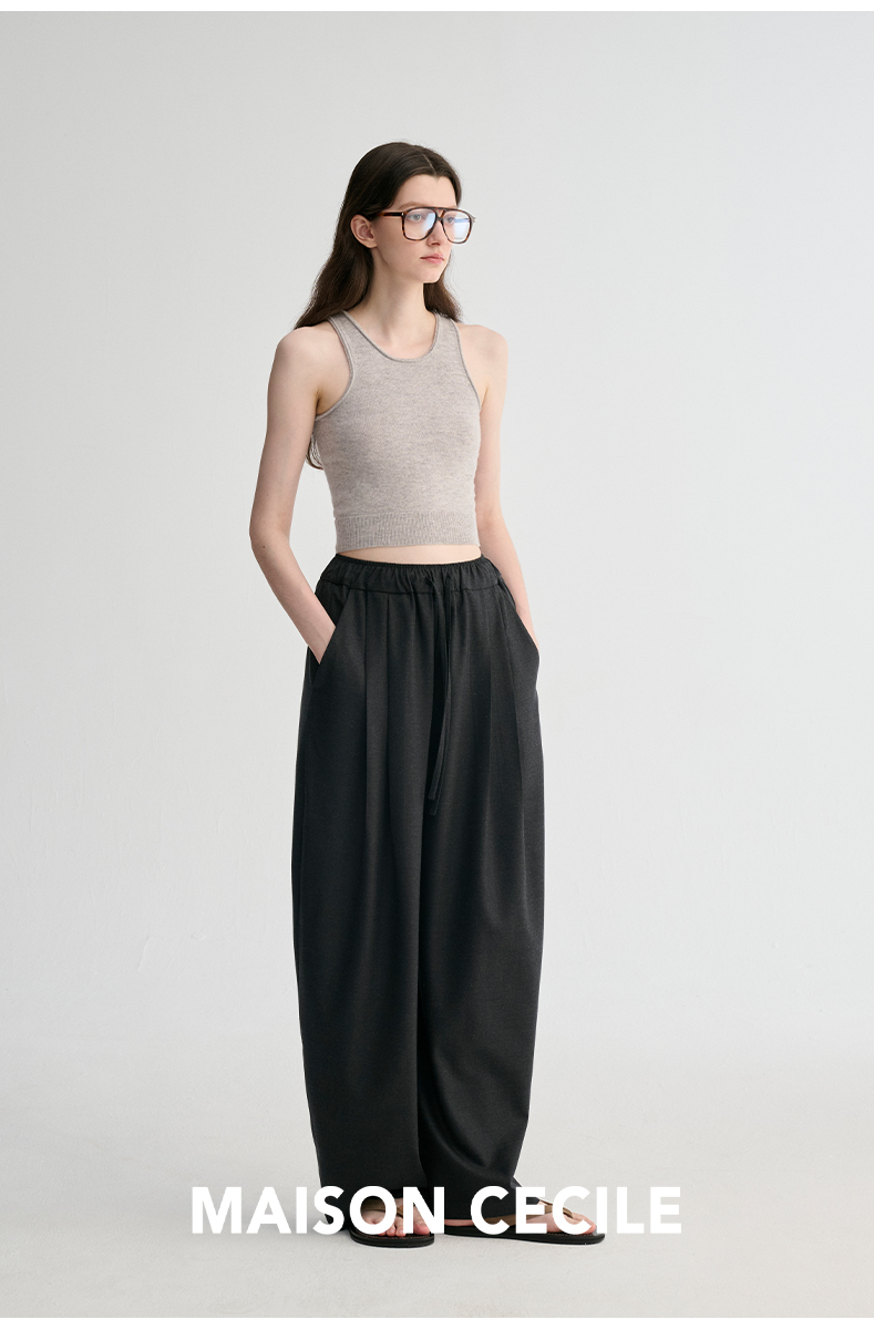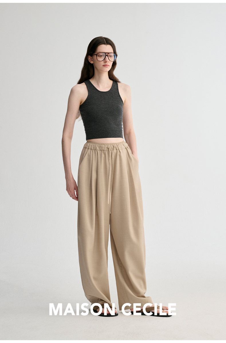 MAISON CECILE 两色/复古慵懒春秋百搭松紧腰精纺羊毛气球裤