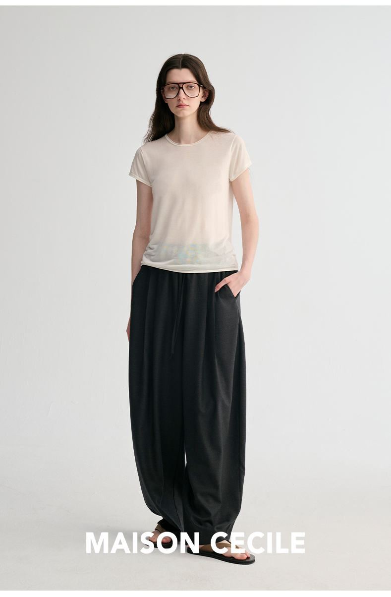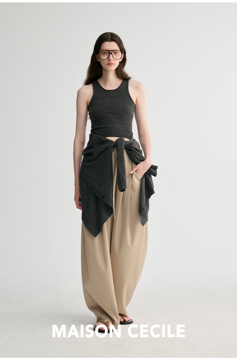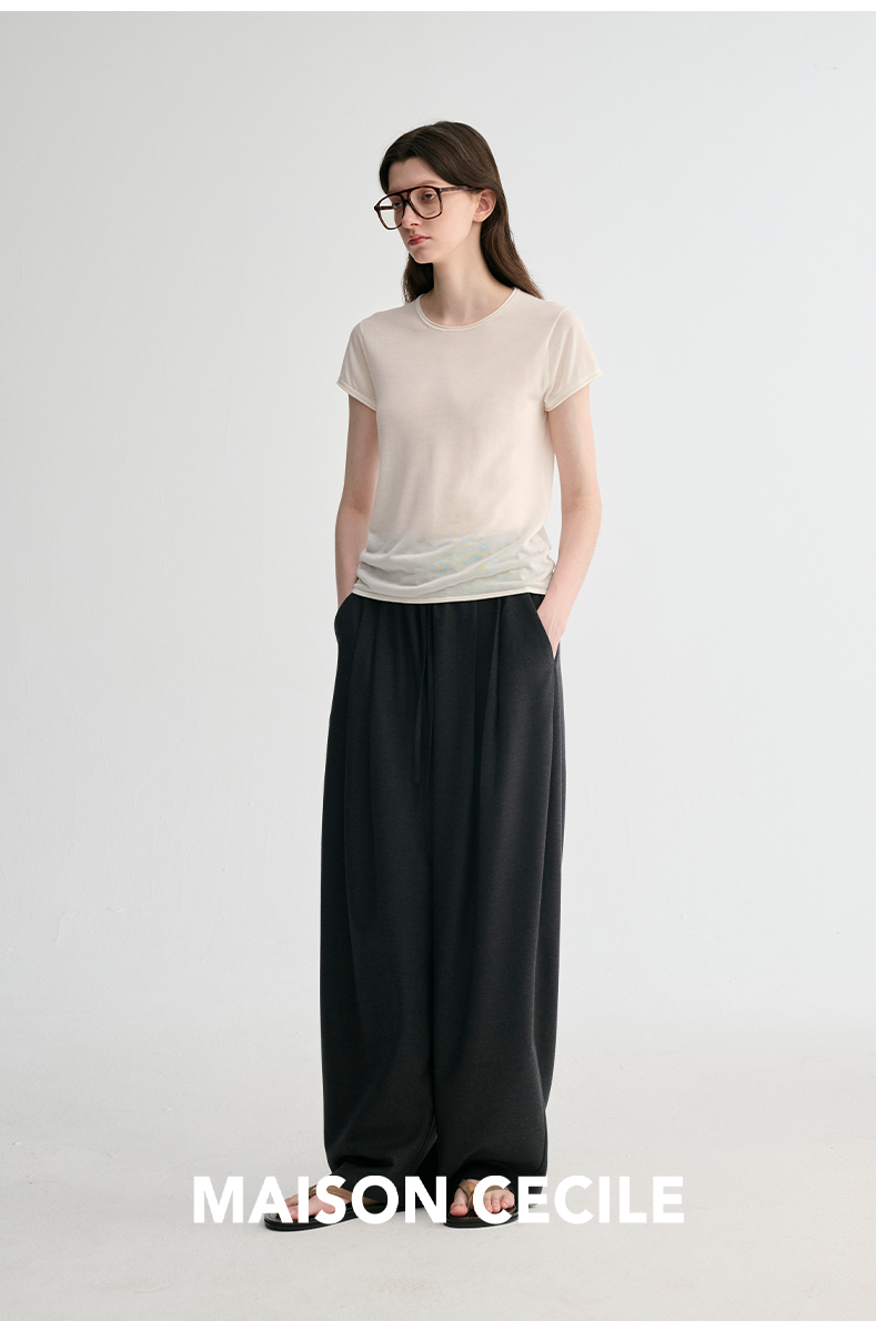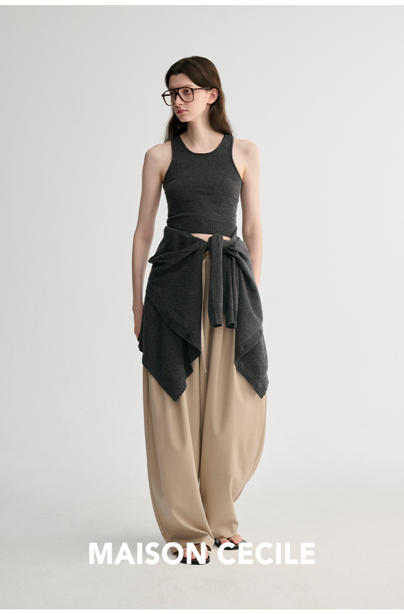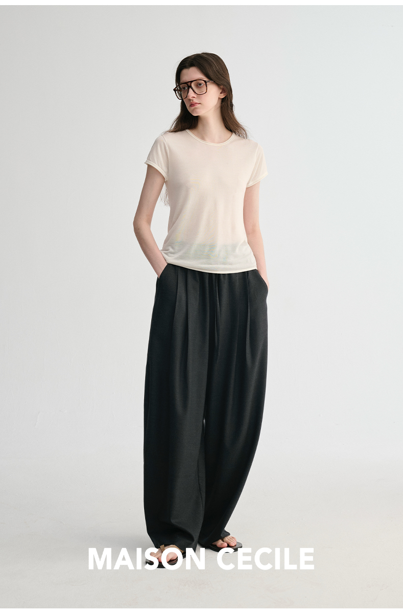 MAISON CECILE 两色/复古慵懒春秋百搭松紧腰精纺羊毛气球裤