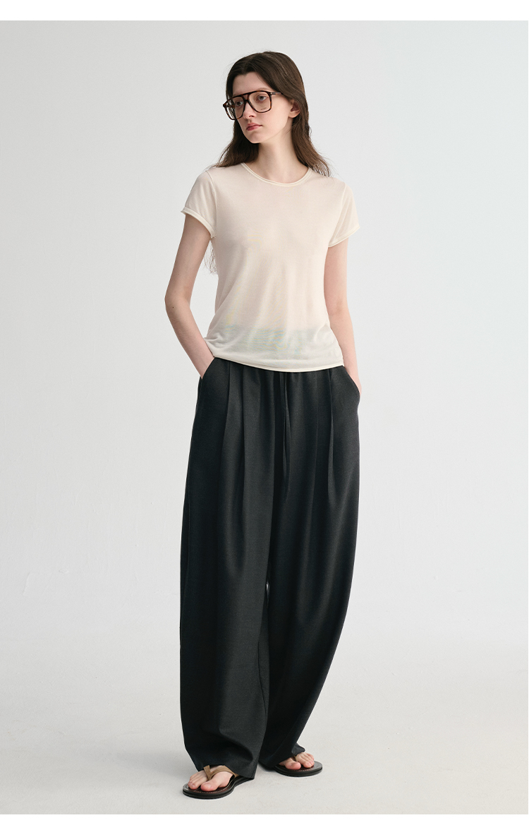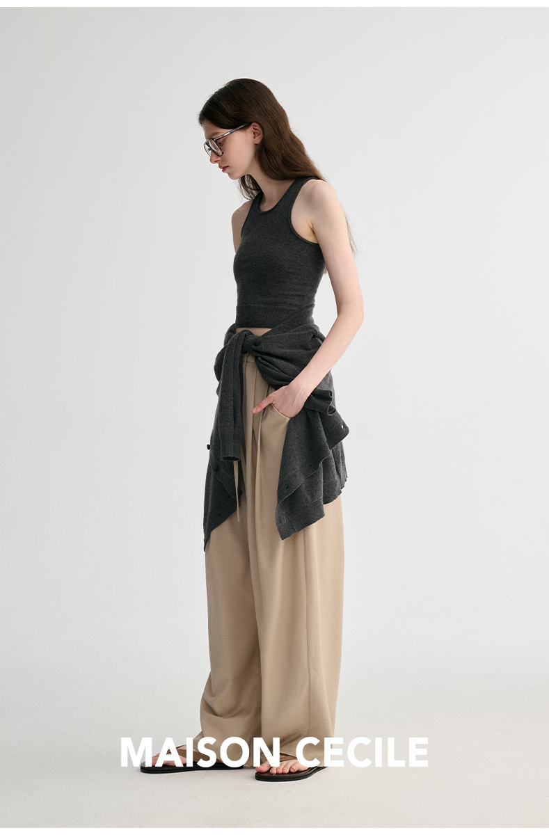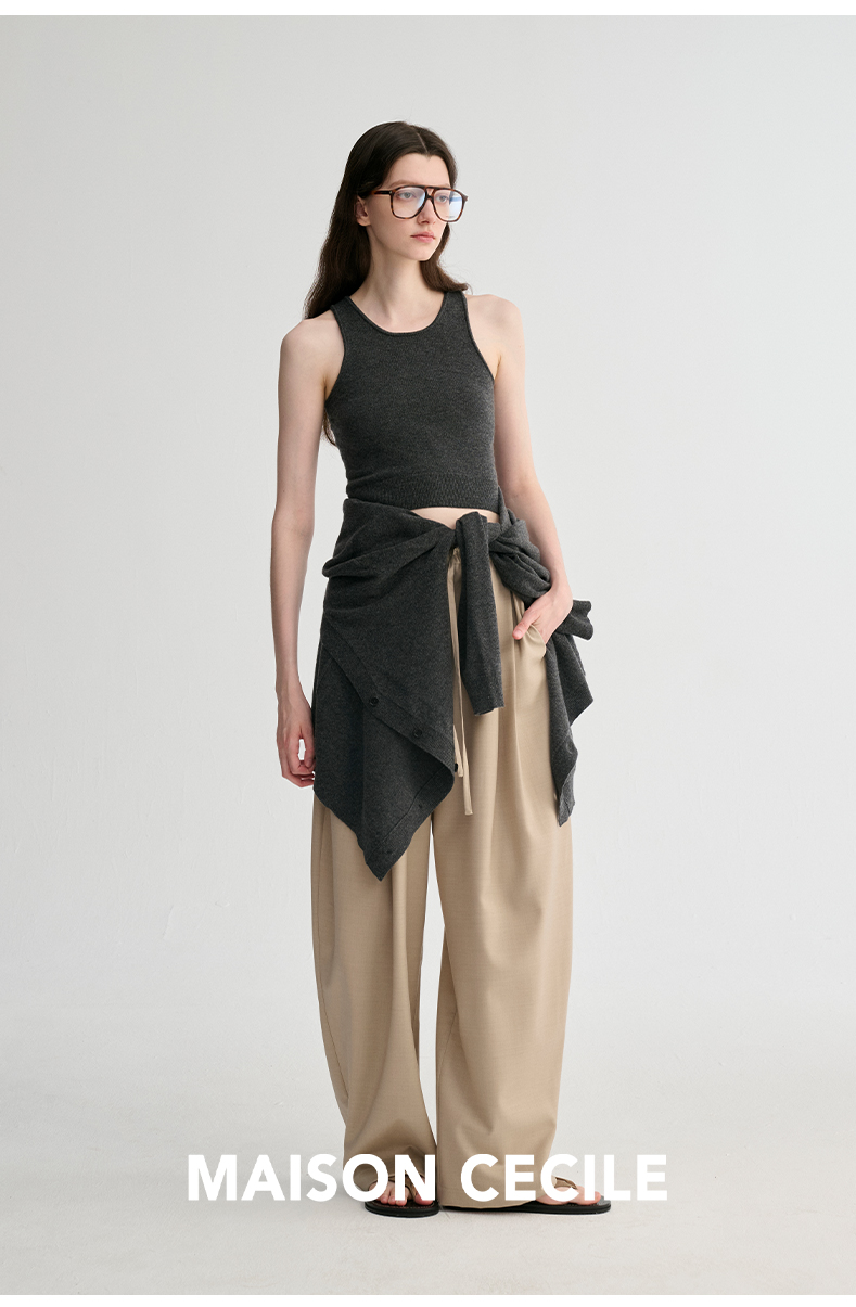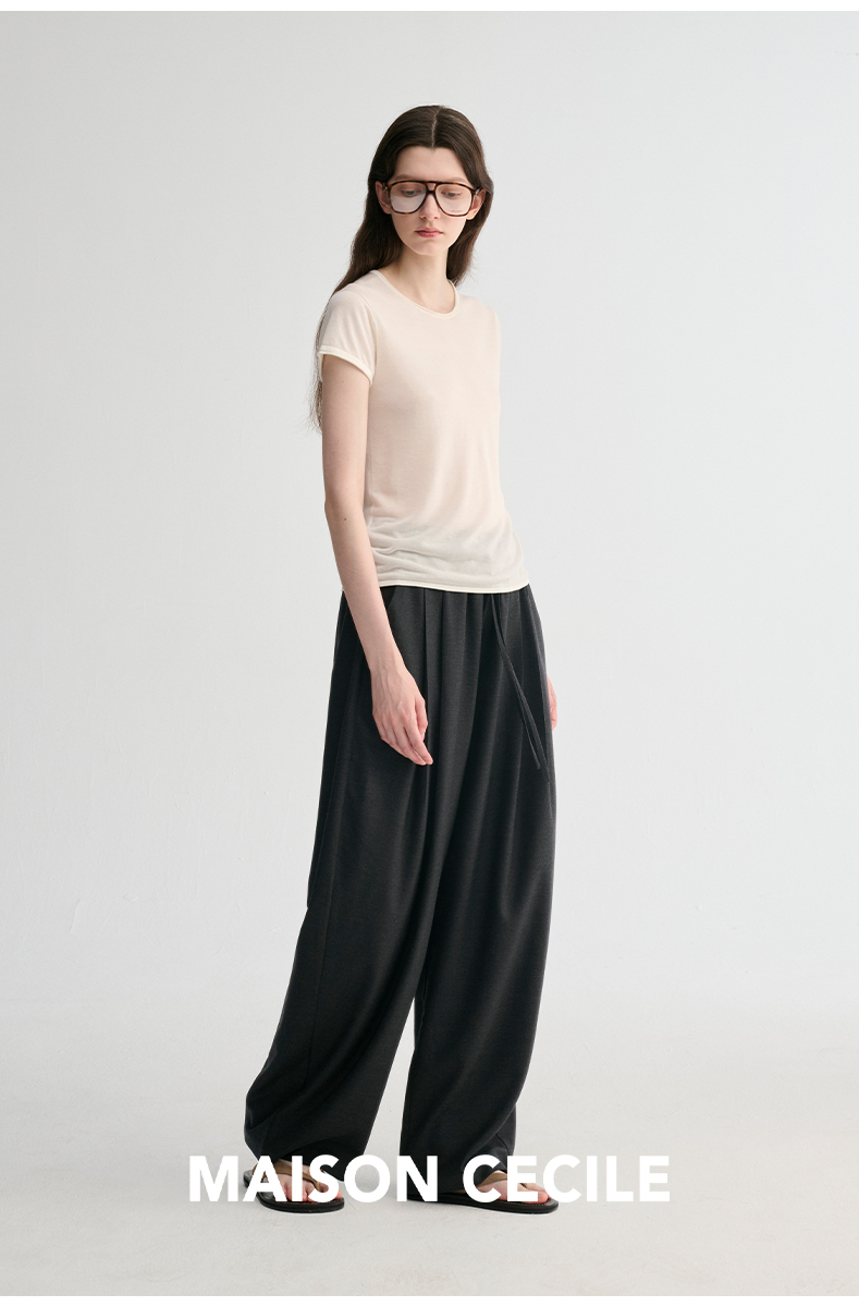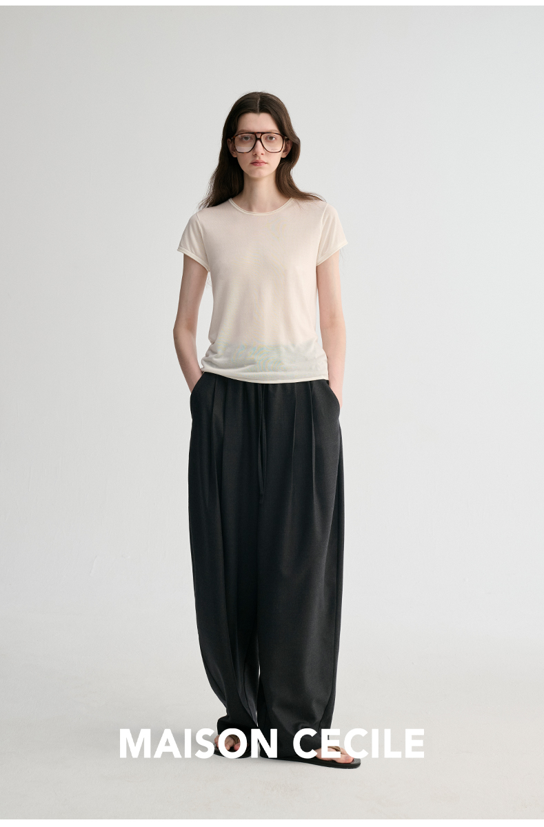 MAISON CECILE 两色/复古慵懒春秋百搭松紧腰精纺羊毛气球裤