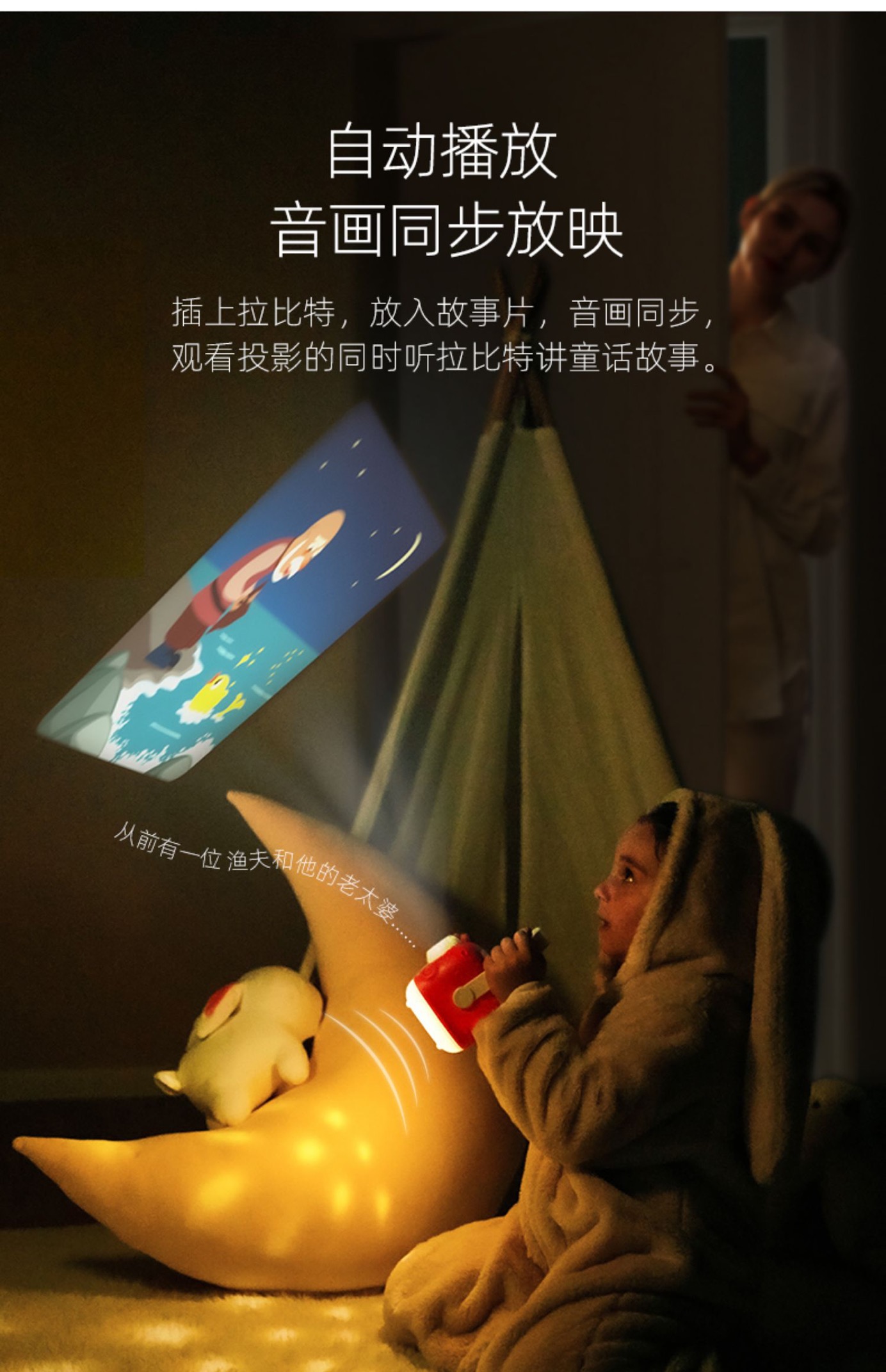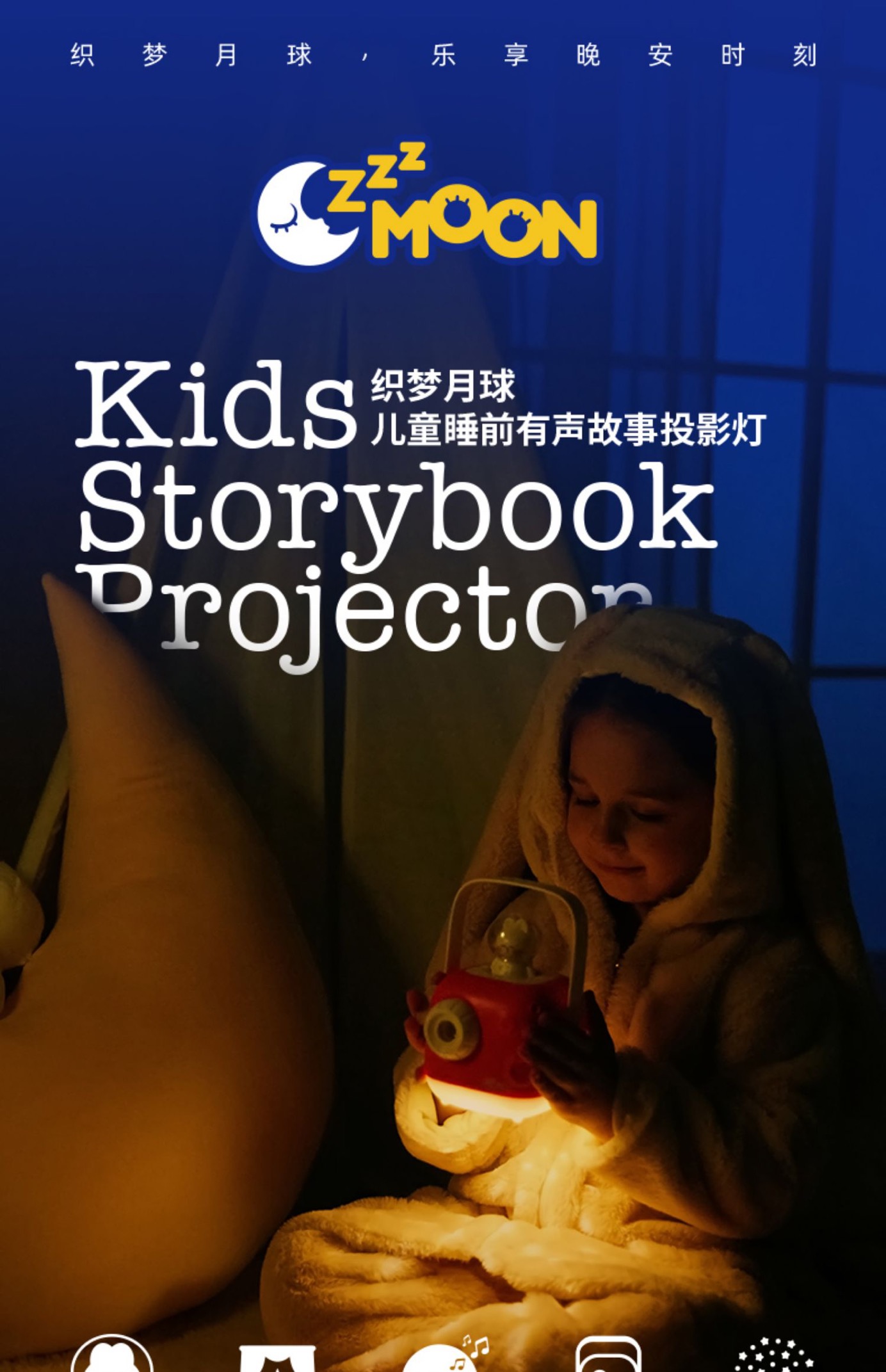 织梦月球有声故事投影仪睡前手提小夜灯儿童早教玩具