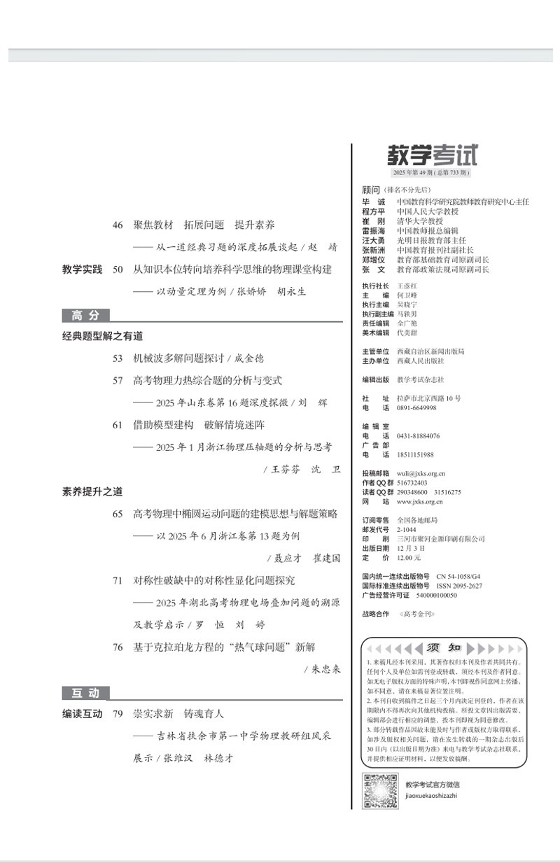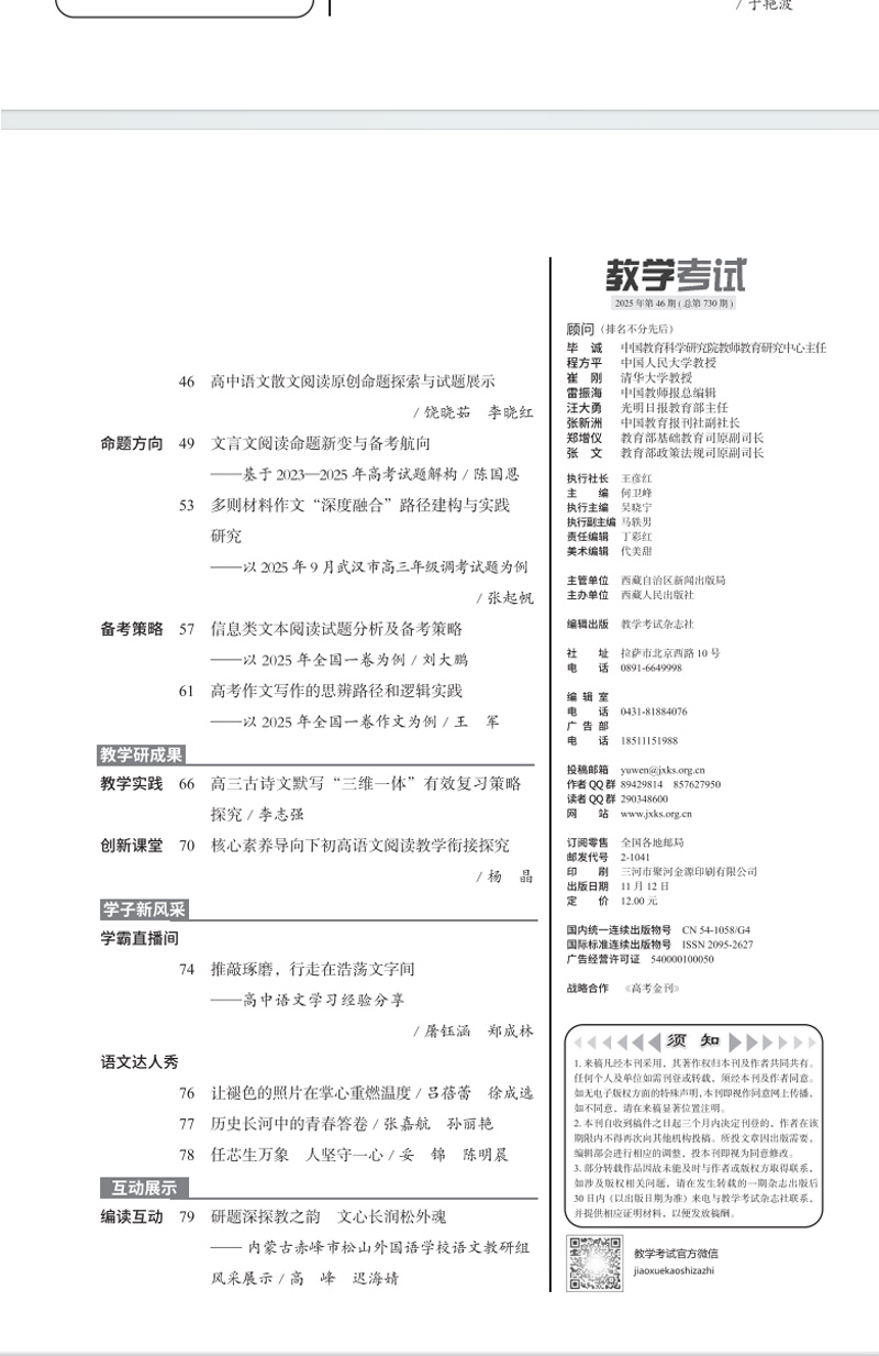 2025 教学考试杂志第6期 语文 数学 英语 物理 化学 生物 政治 地理 历史
