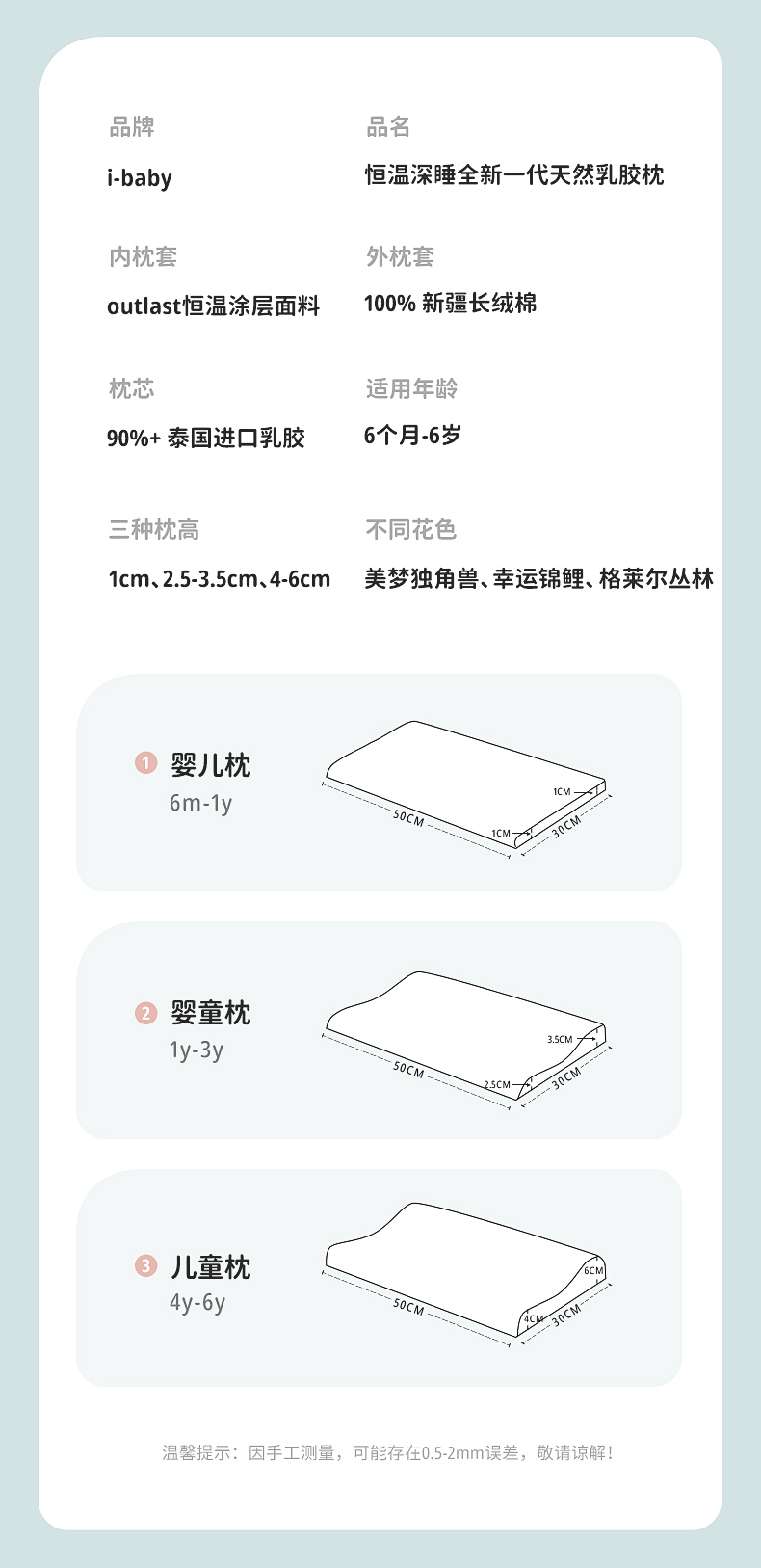 i-baby恒温深睡护颈枕儿童婴儿枕宝宝枕头透气睡枕四季