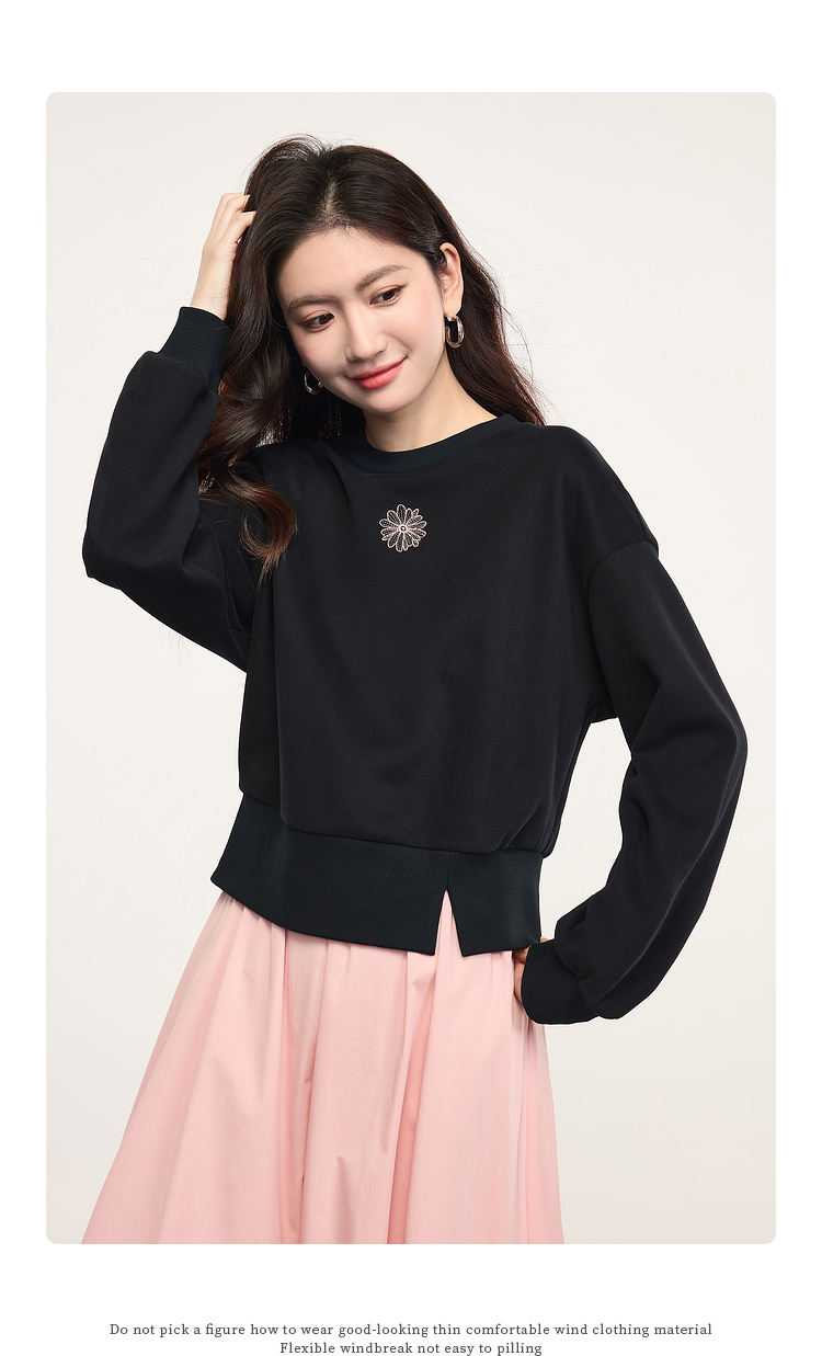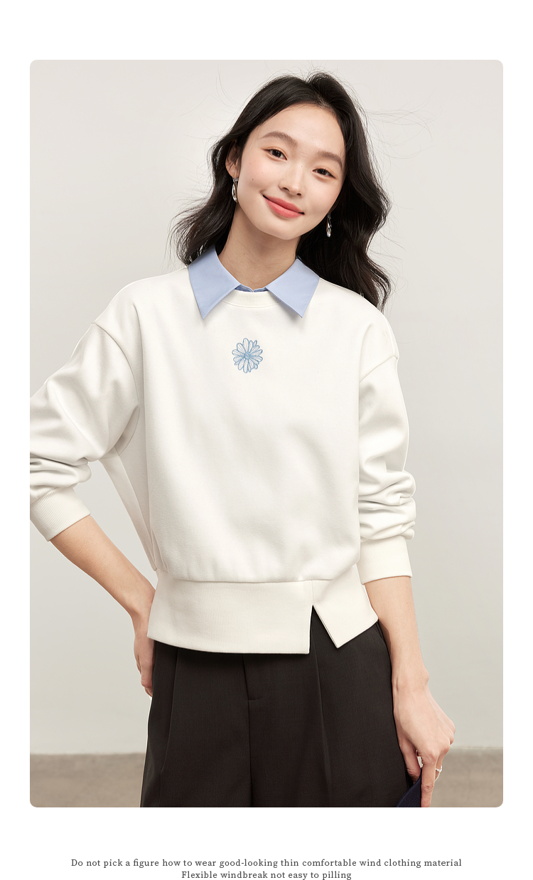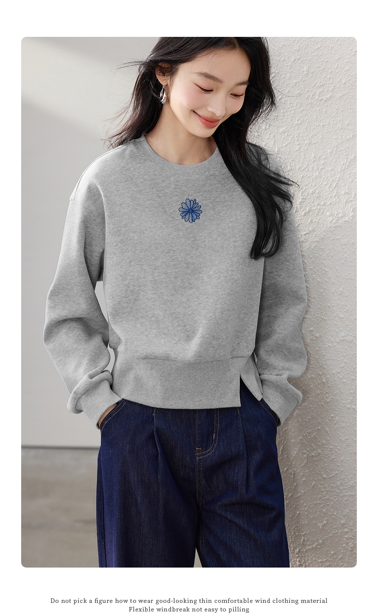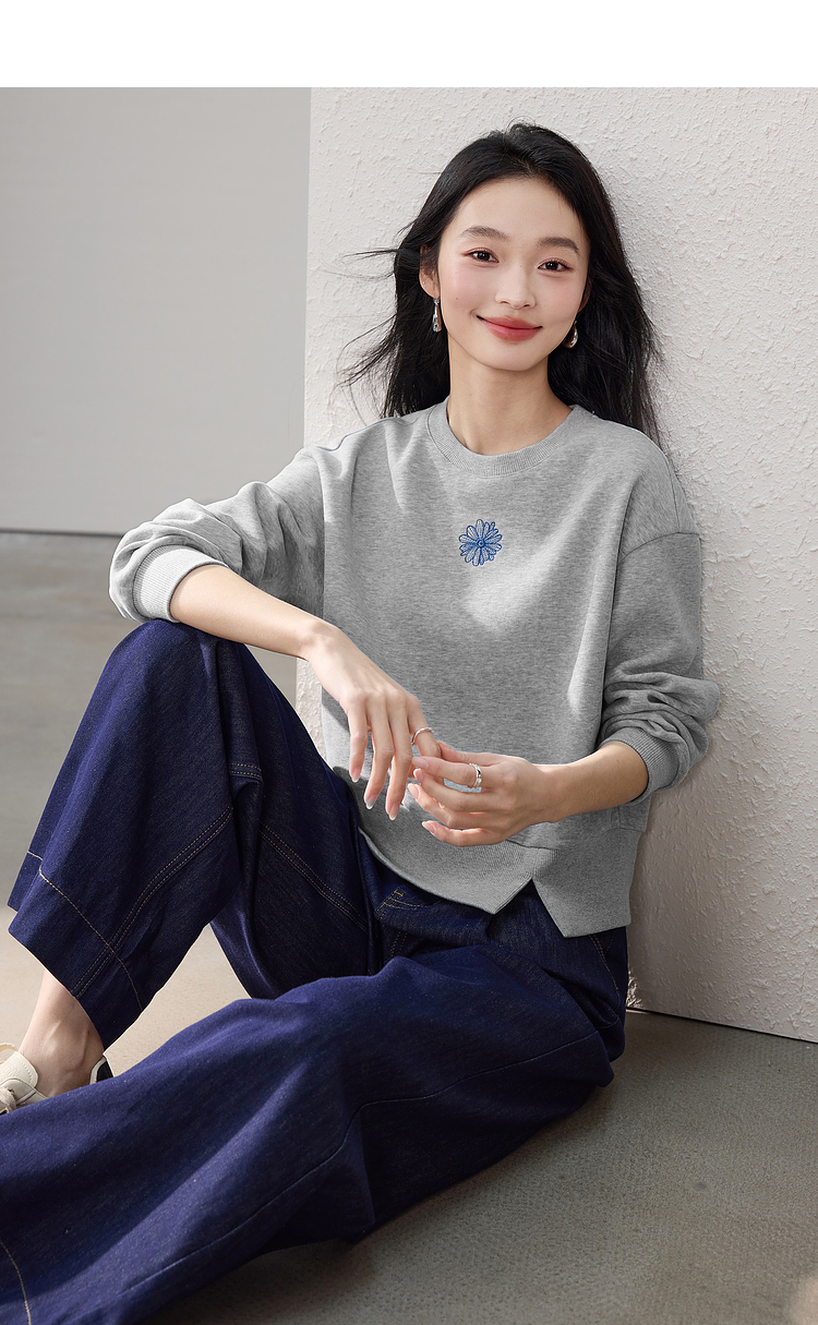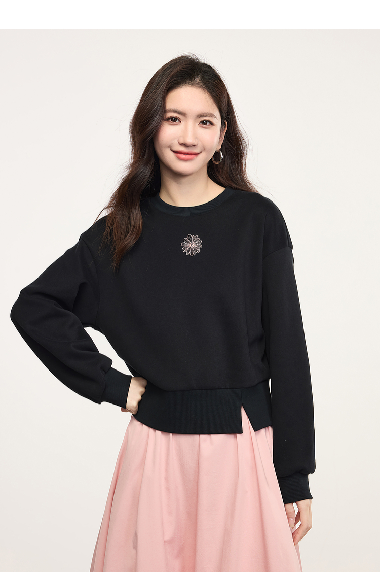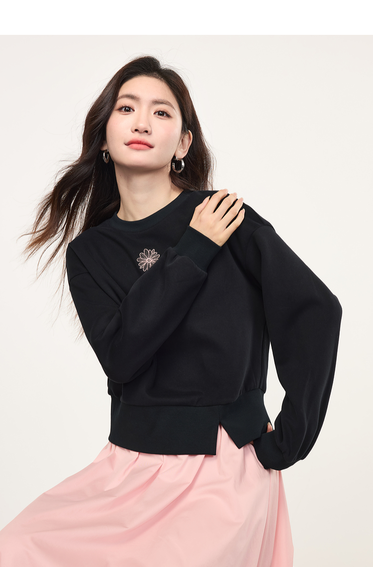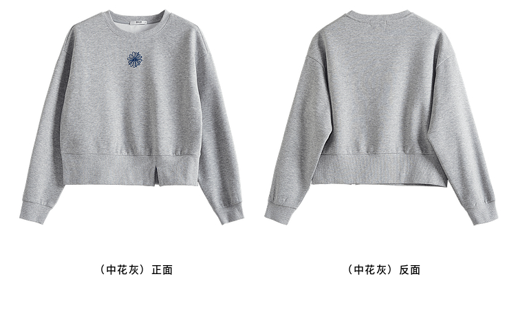 【年终特卖】熙世界运动风开衩收腰卫衣女休闲圆领小个子套头上衣2025春秋新款