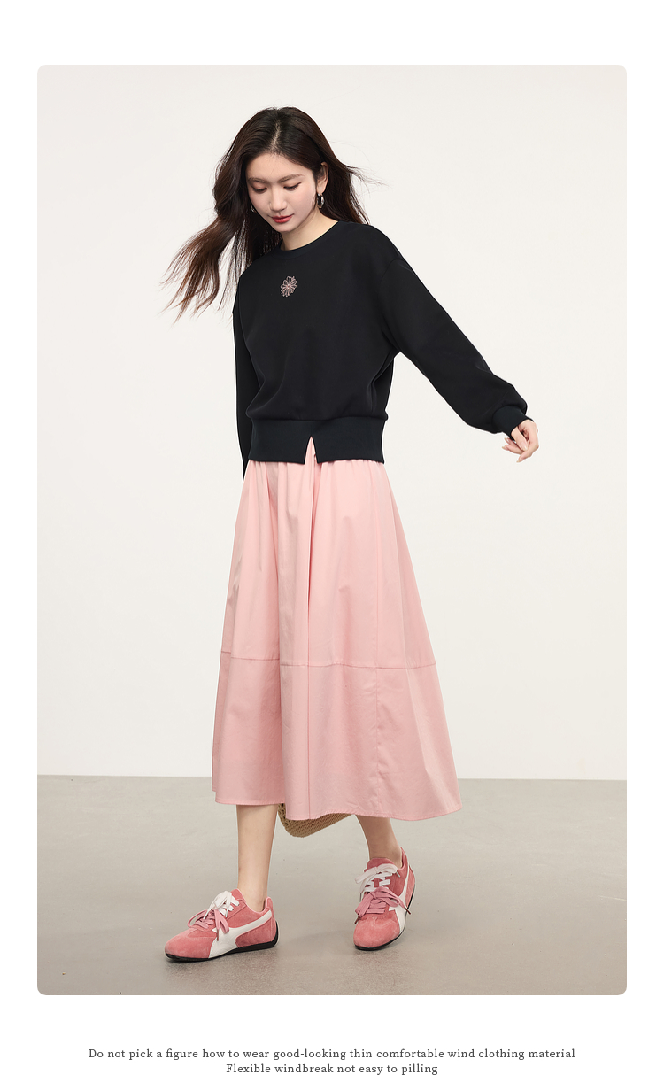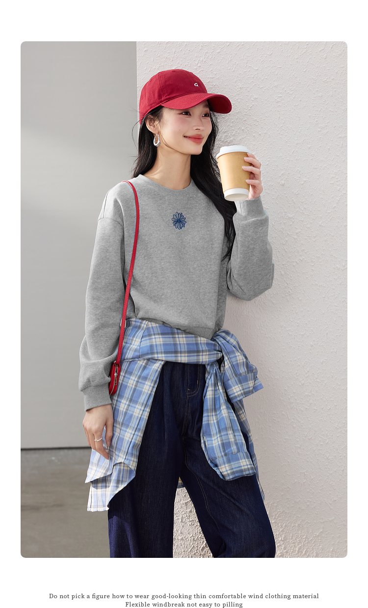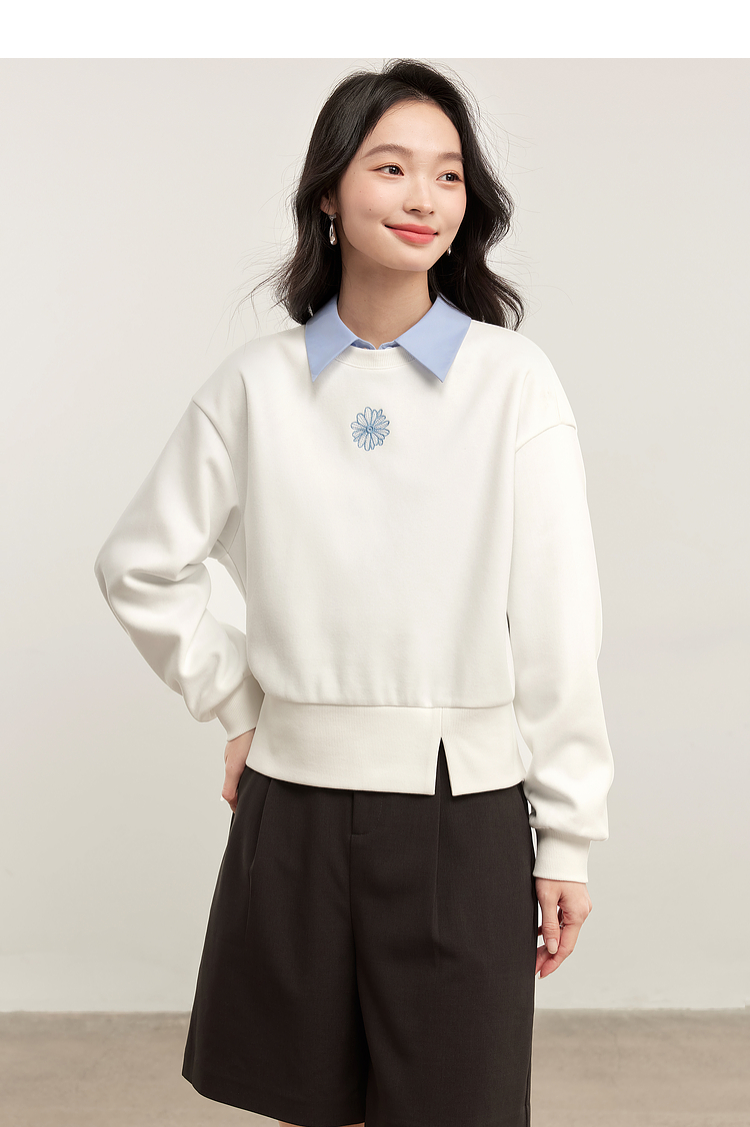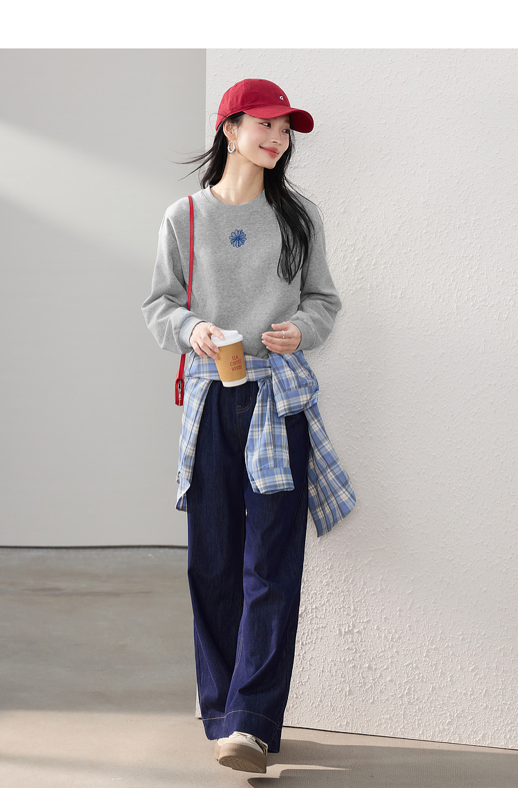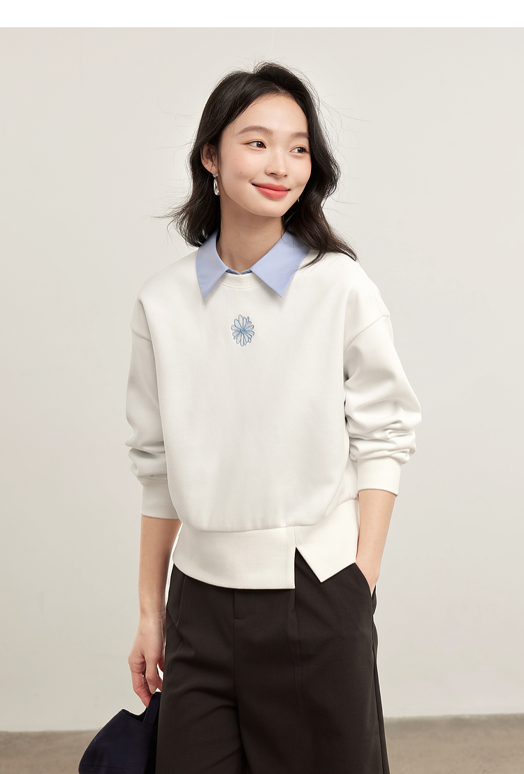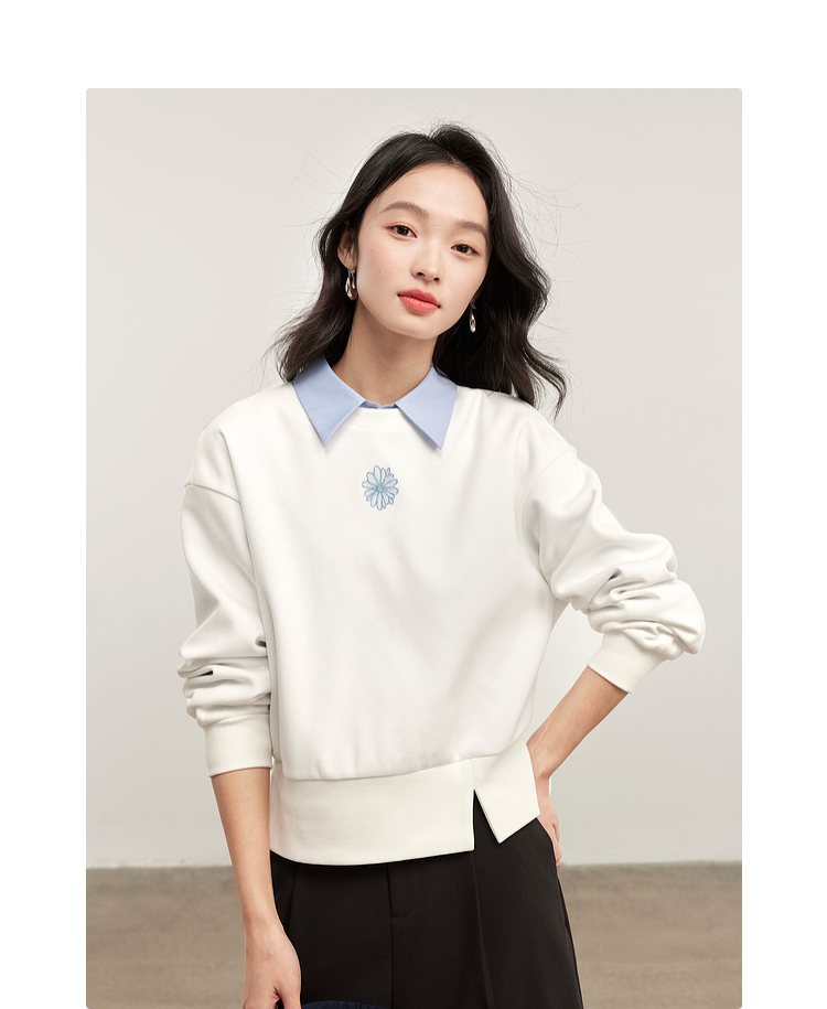 【年终特卖】熙世界运动风开衩收腰卫衣女休闲圆领小个子套头上衣2025春秋新款