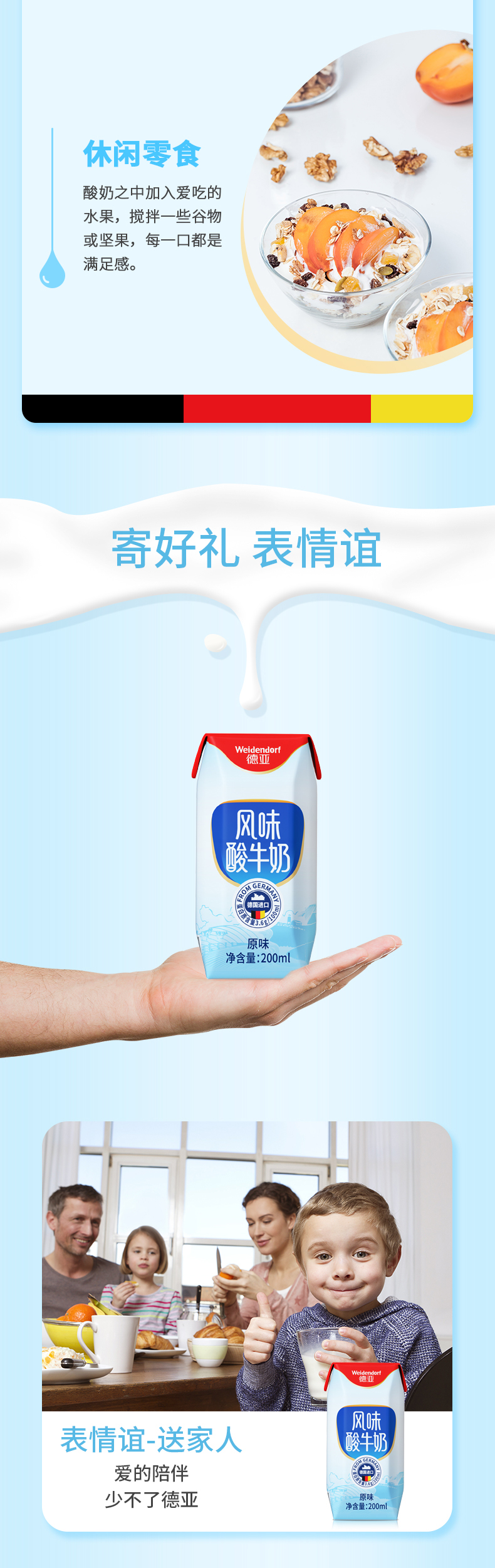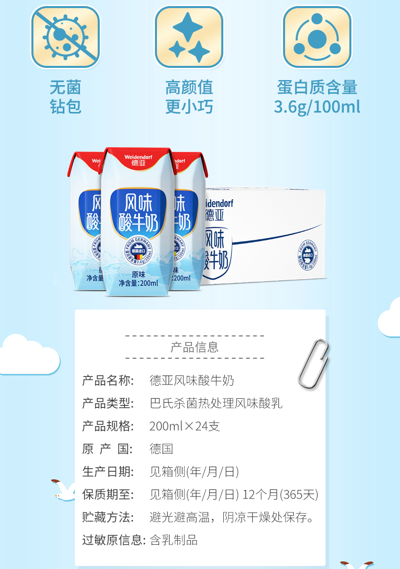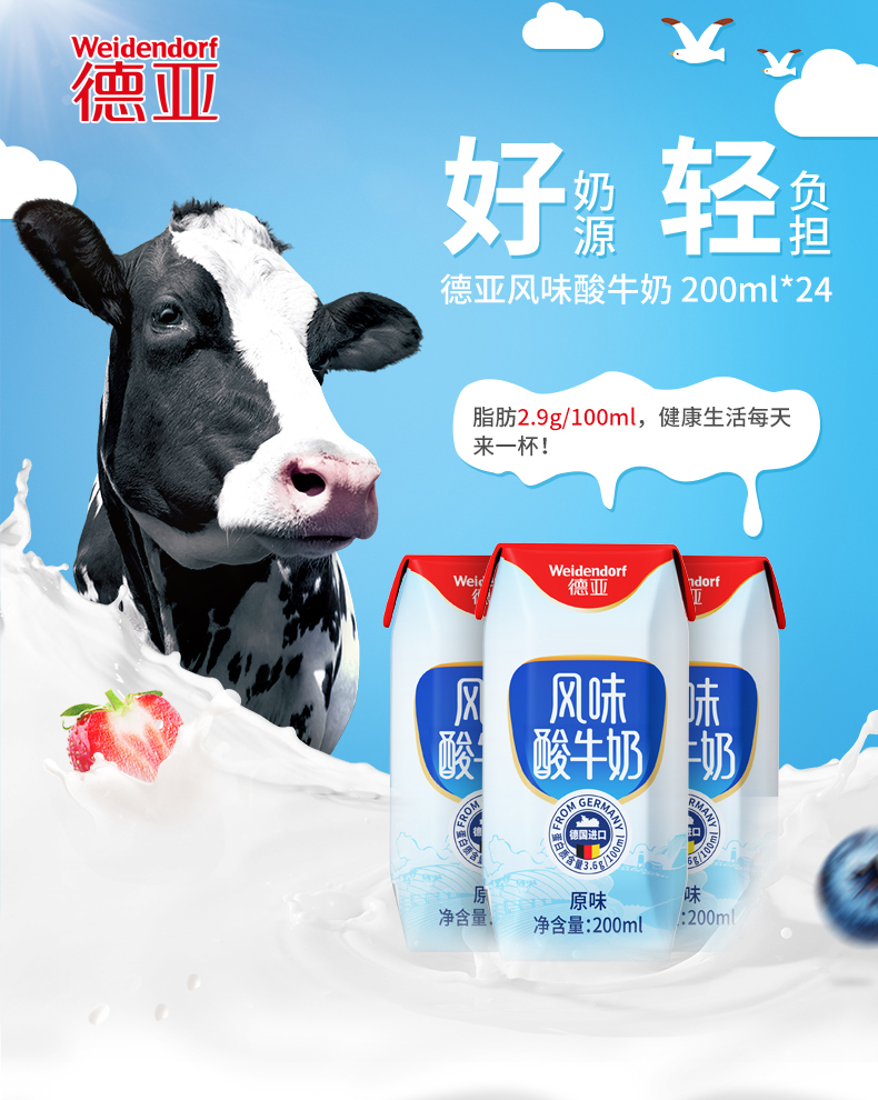 【进口】德国原装 德亚酸奶 200ml*24盒 常温 原味 酸牛奶 包邮 新老包装随机发货