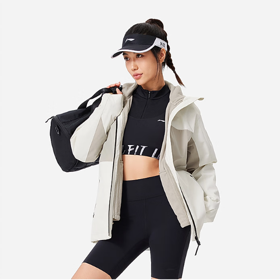 李宁女子冬季连帽健身风衣三合一运动外套AWBU010-7