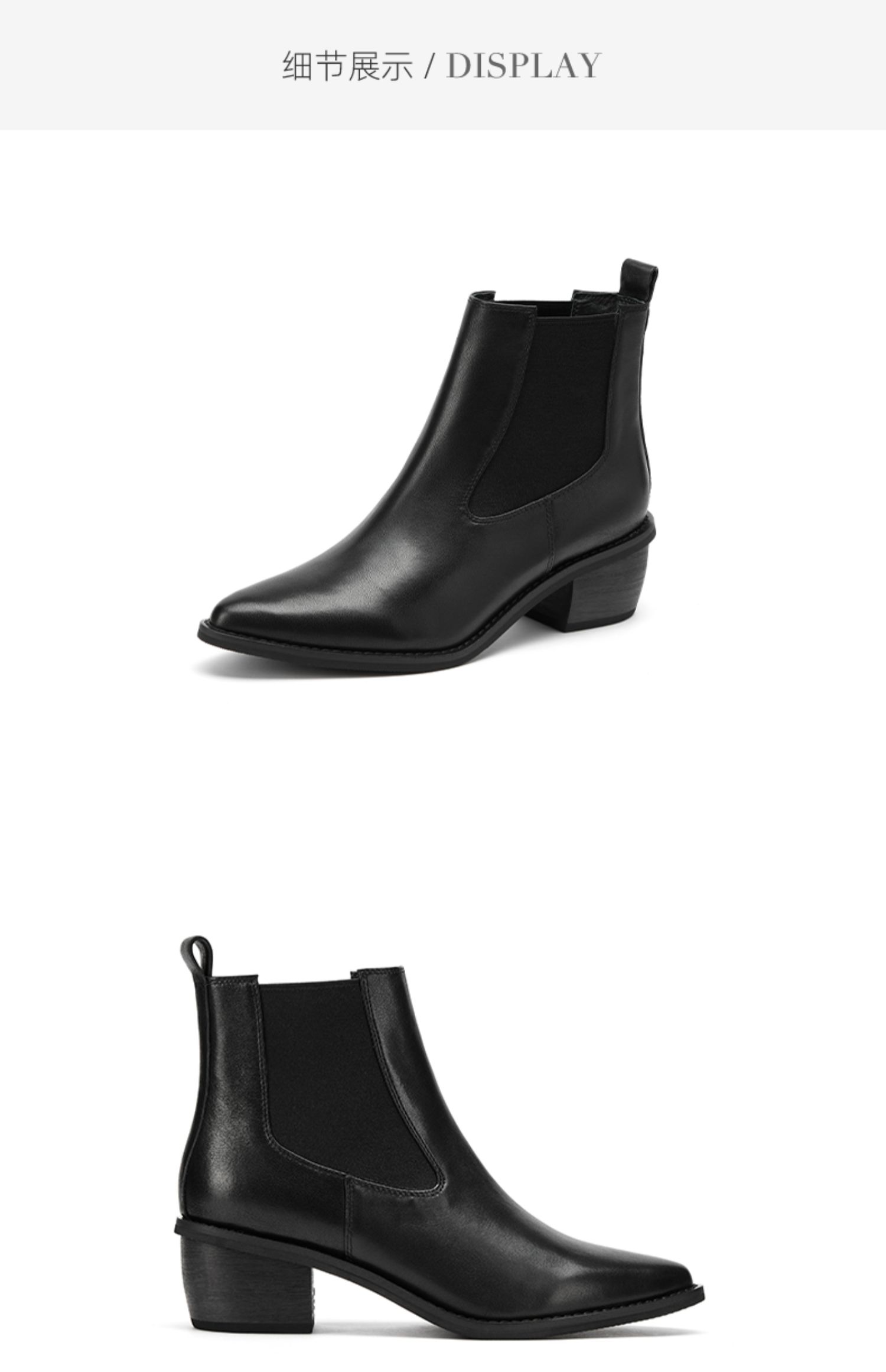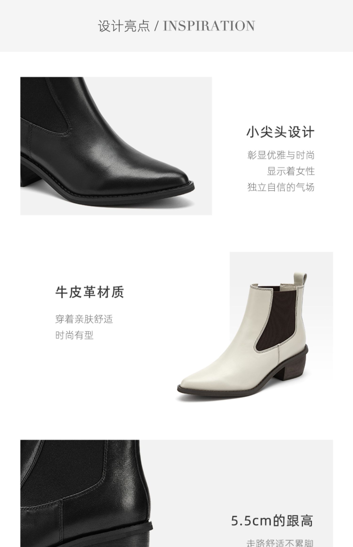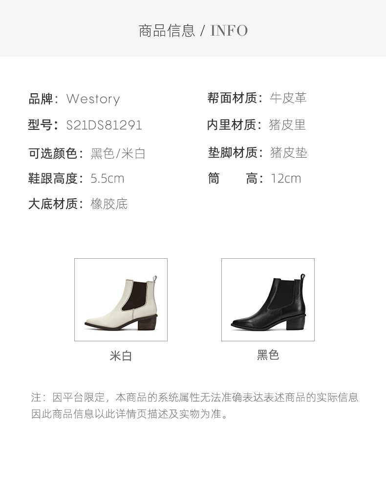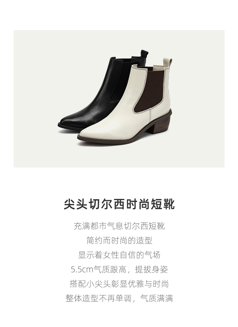 westory2021秋季新款切尔西尖头短靴低跟复古时尚女靴S21DS81291