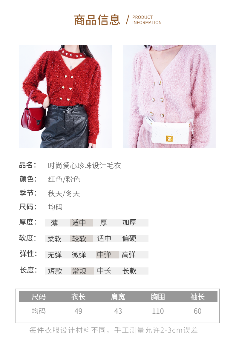 女装23秋冬新款时尚爱心珍珠设计毛衣外套2254-M23M227▲