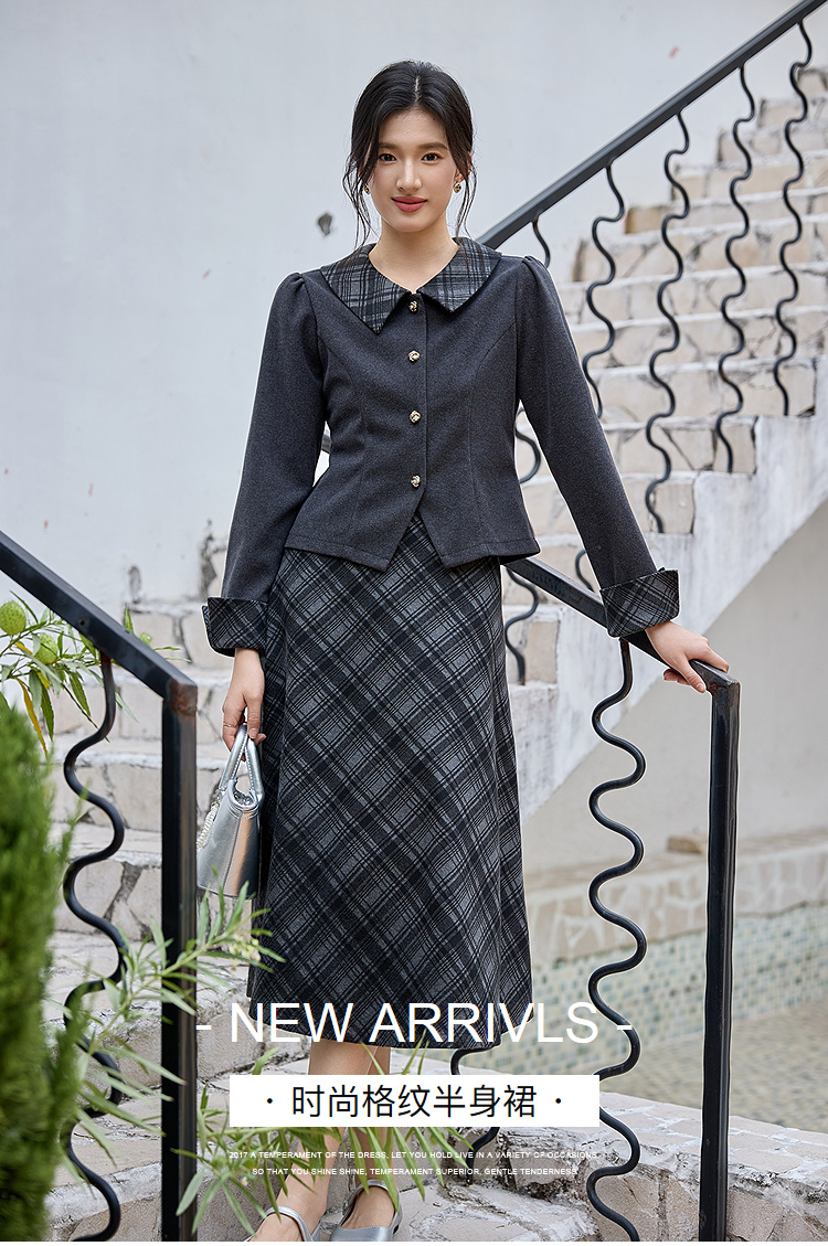 奢姿大码女装2025冬季格纹设计减龄半身裙胖妹妹时尚百搭中长裙子9954494460