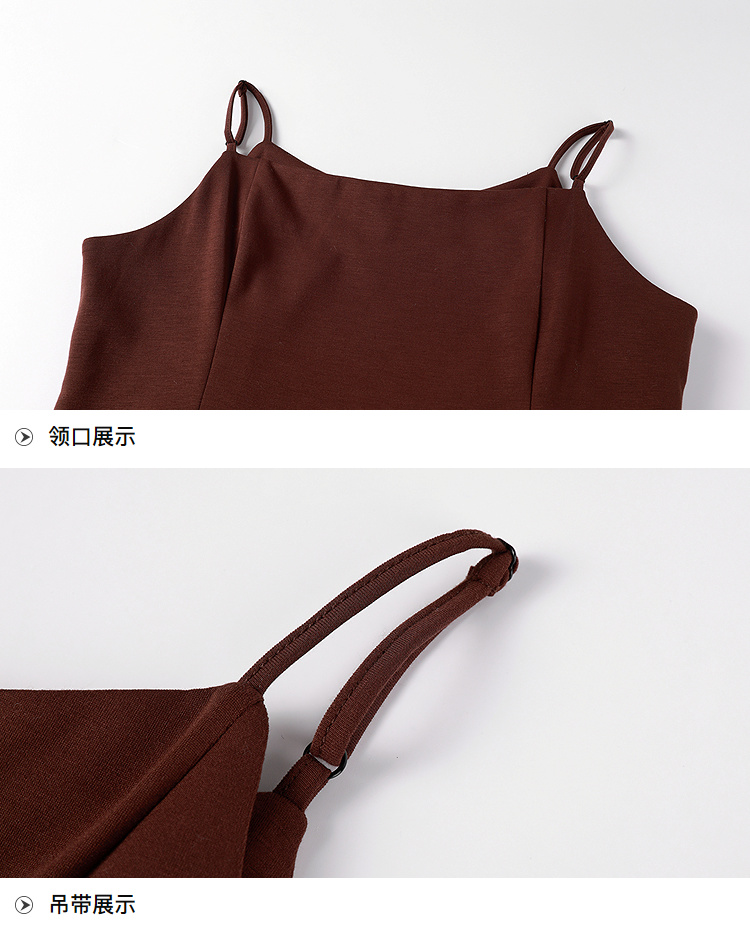 奢姿大码女装夏季胖妹妹镂空针织衫吊带小V领清新套装连衣裙9952953216AB