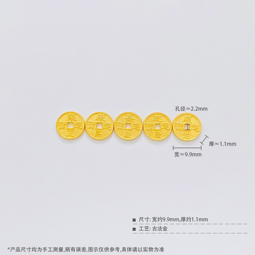 【限时7.5折】【定价黄金】足金999 【其中一件有成色字印】#复古风 #招财纳福 古法实心招财五帝币铜钱造型手串配件Diy手串配件(AKGFSC00663)预售产品下单后不退款不退货不换货不补差价