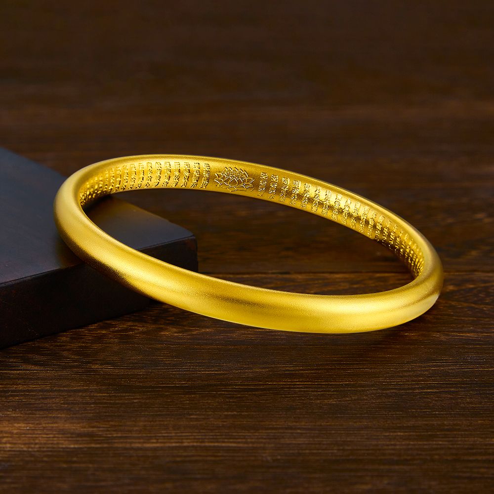 将莲花心经錾刻于镯内,心经为佛教智慧之精华,心怀虔诚,读之静心安心,处事和善