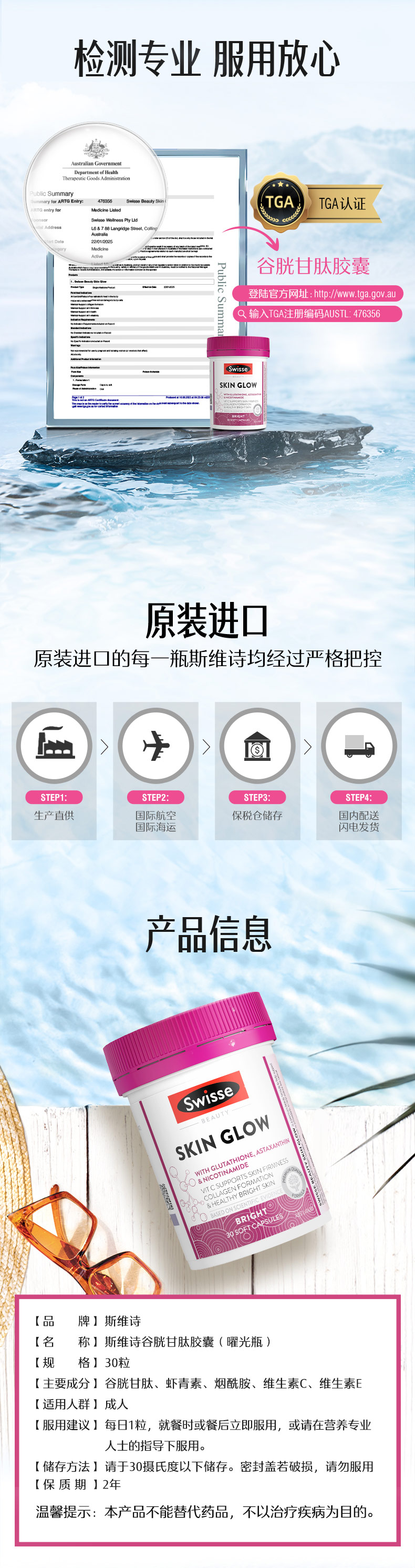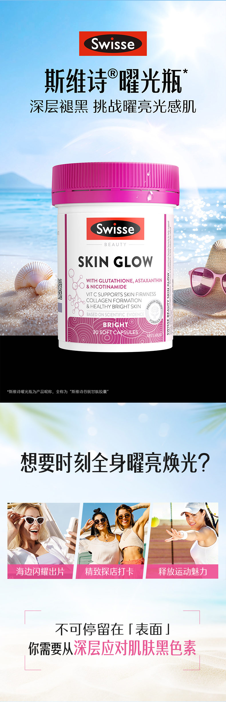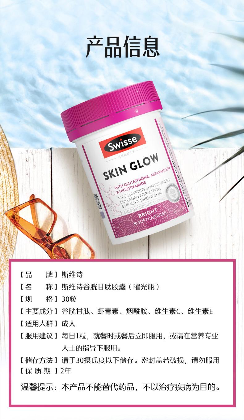 swisse 谷胱甘肽skin glow 30粒/瓶★